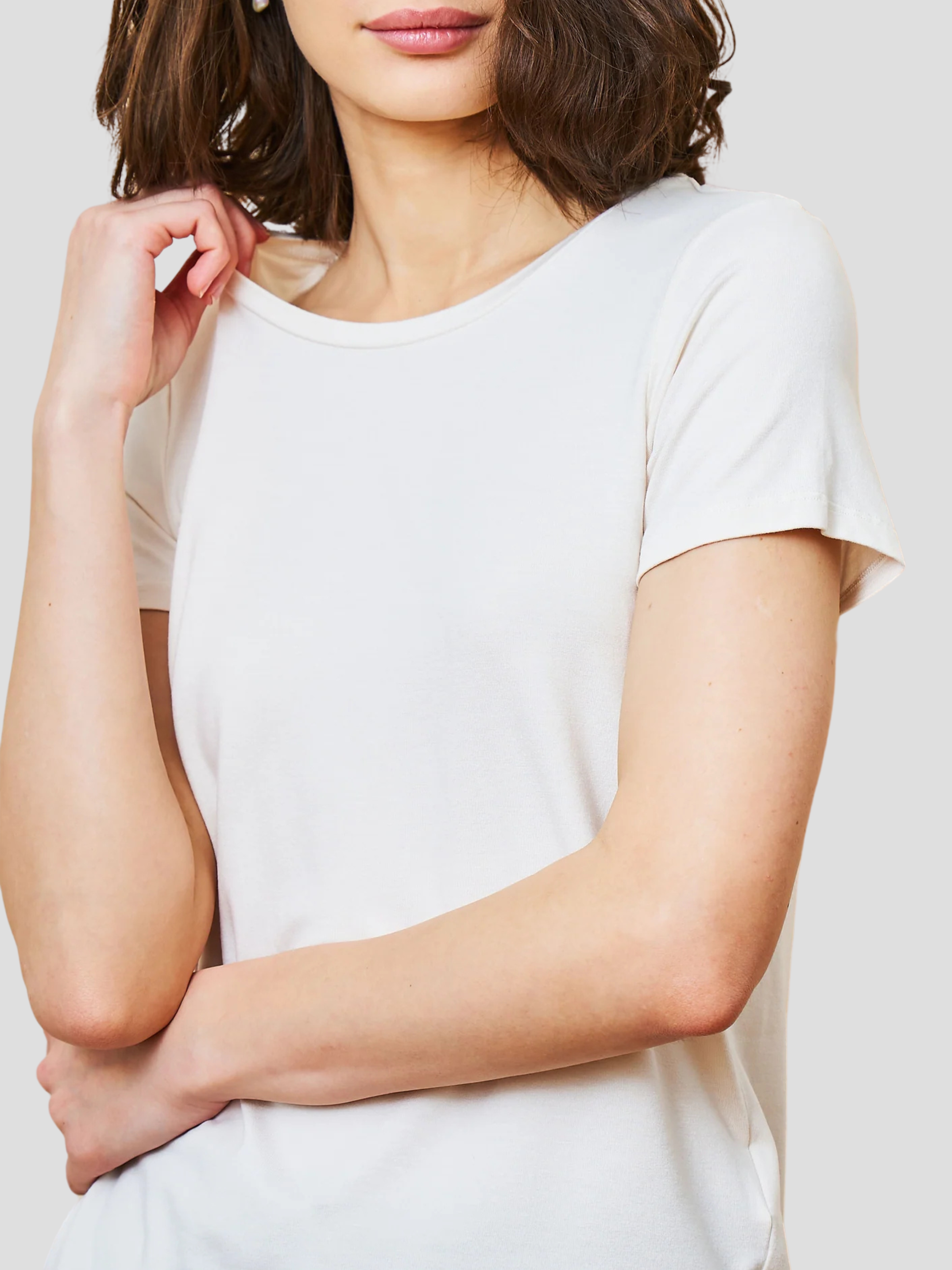 This soft touch tee features a luxurious second-skin fit. A unique and sumptuous blend of the highest quality fibers, this crew neck tee is ultra-soft, color fast, anti-microbial, and lightweight. Your second skin and perfect layer. The fabric will never pill, stretch, fade, or wrinkle.
