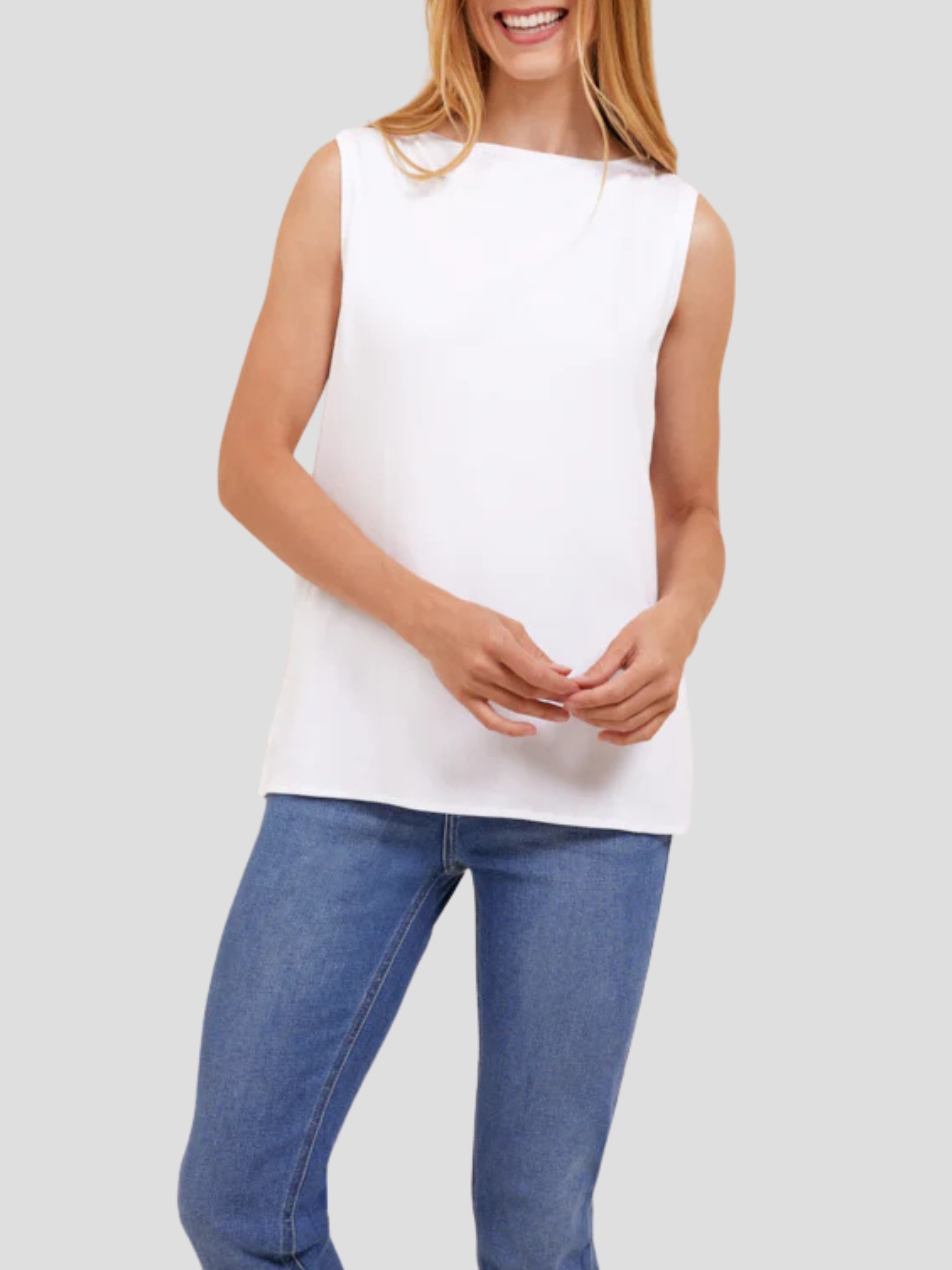 Indulge in the refined comfort of our Soft Touch Tank Top in White. Crafted with premium fabric that caresses the skin, this essential piece offers a sleek silhouette while maintaining effortless elegance. Perfect for layering or wearing alone, its versatile design transitions seamlessly from day to evening affairs with understated sophistication.