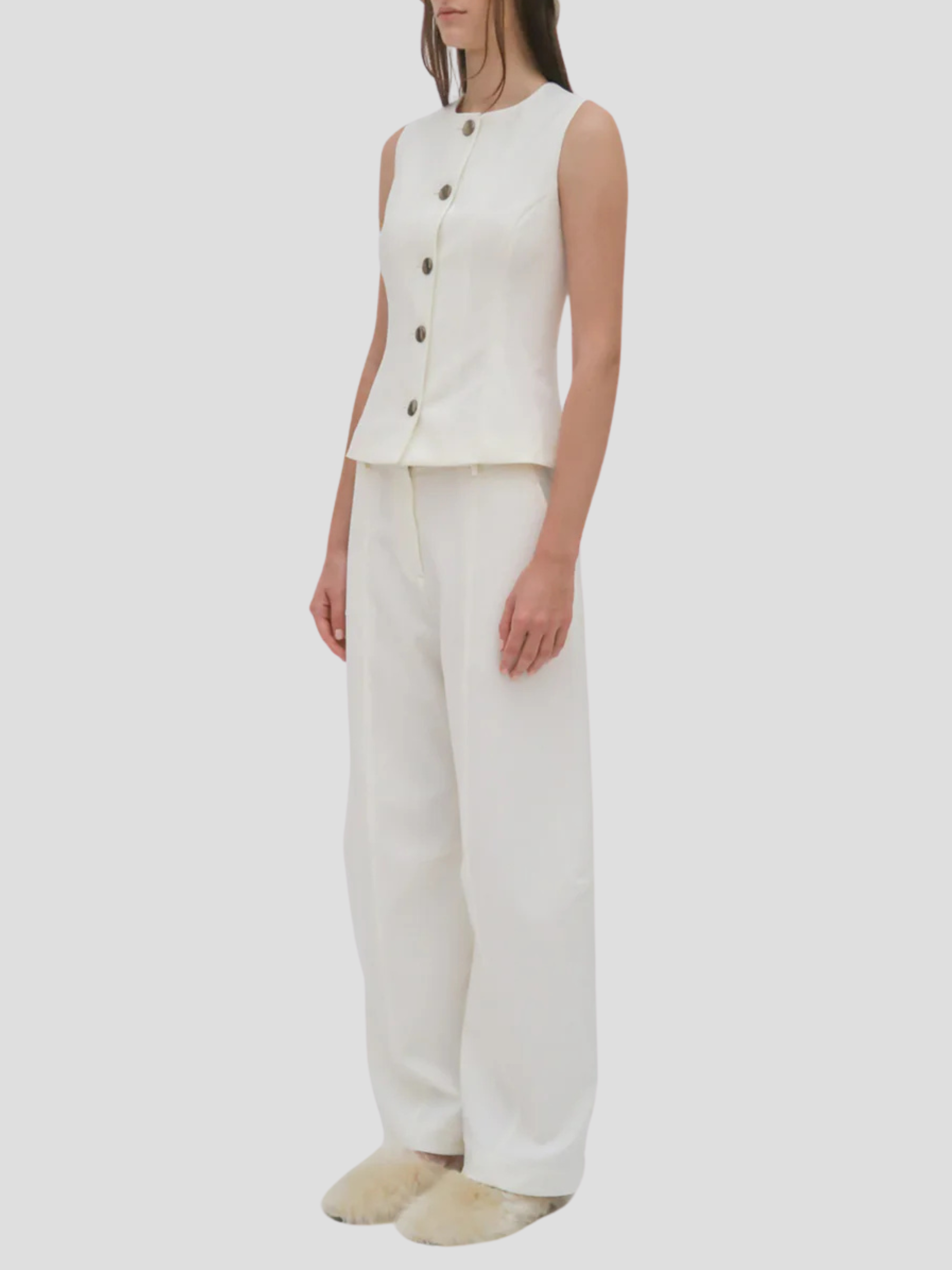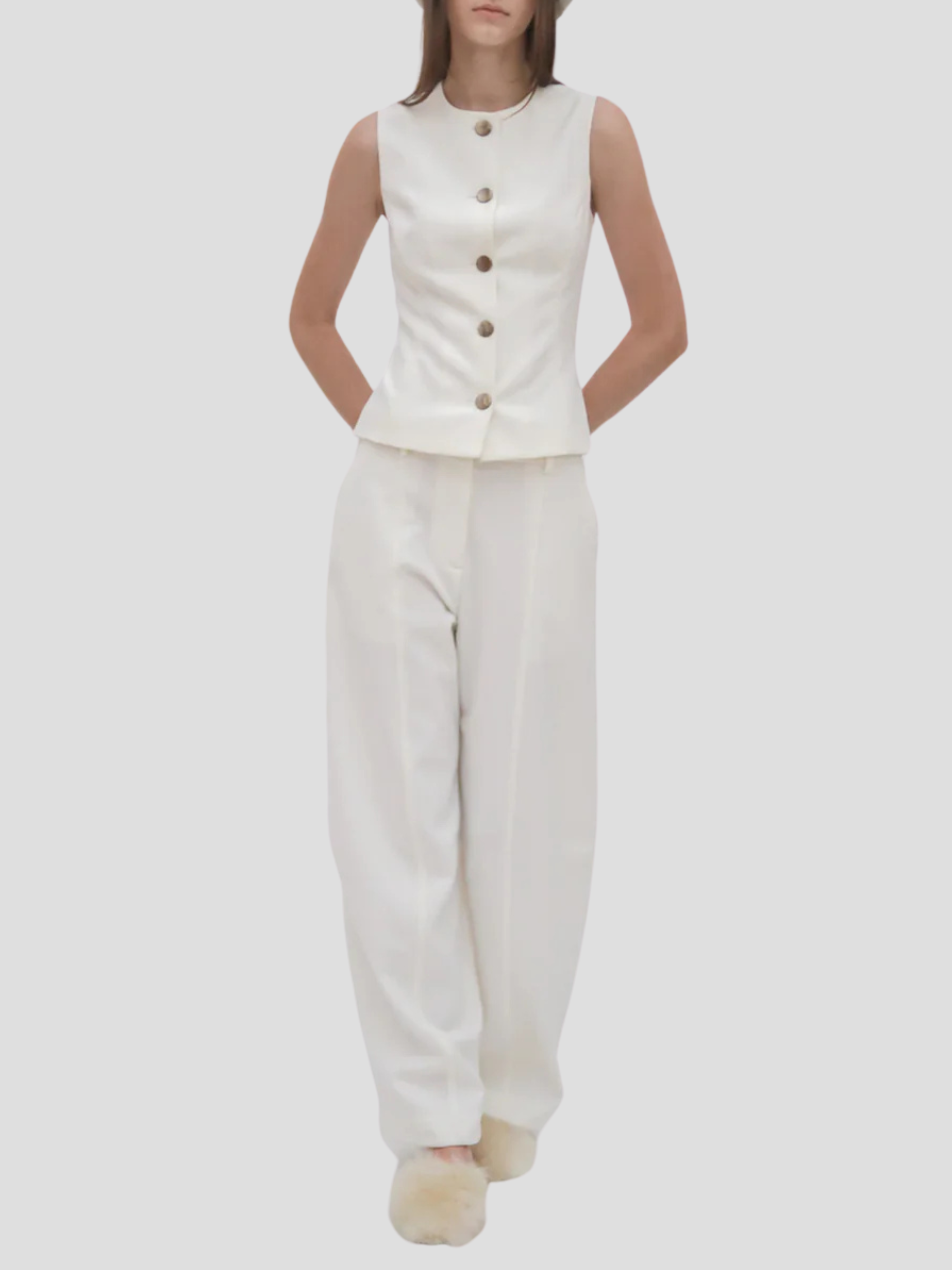 Sleeveless Button Front Top in White