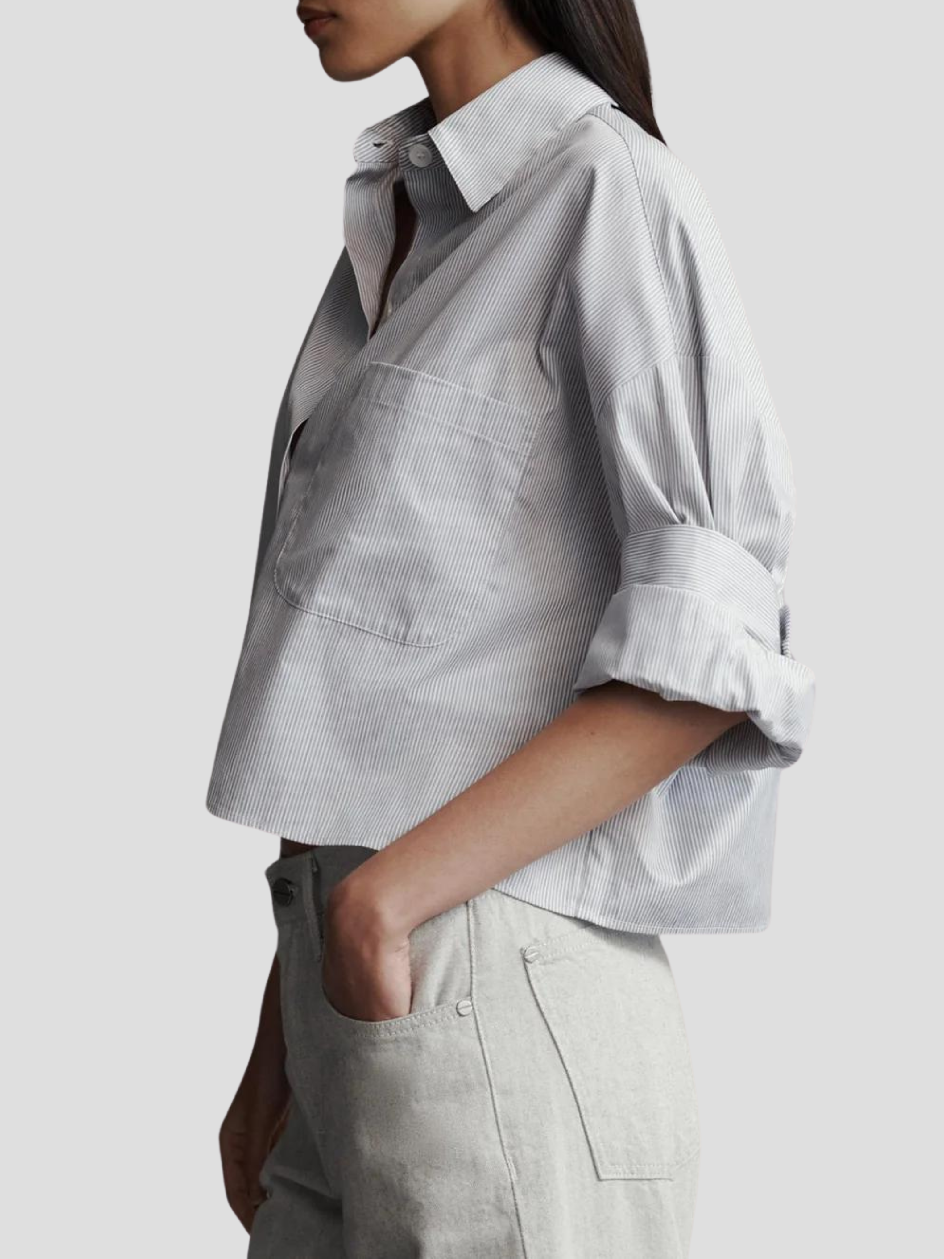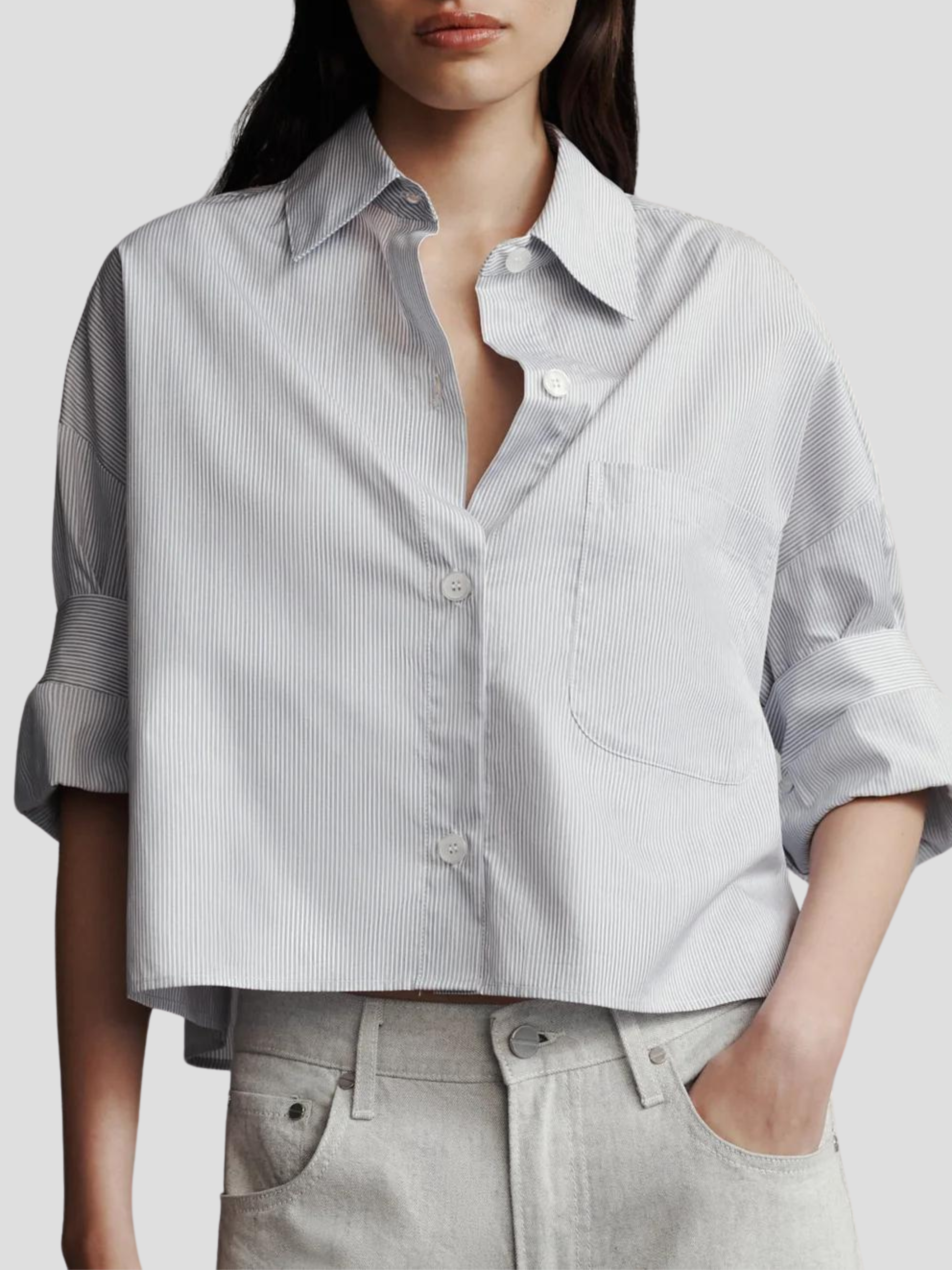 For a sleek and versatile option, the Next Ex Cropped Shirt in Aberdeen Stripe delivers a contemporary take on the button-down. With its cropped, boxy design, drop shoulders, and half sleeves with button cuff details, it's an easy-to-wear essential for any minimalist wardrobe.