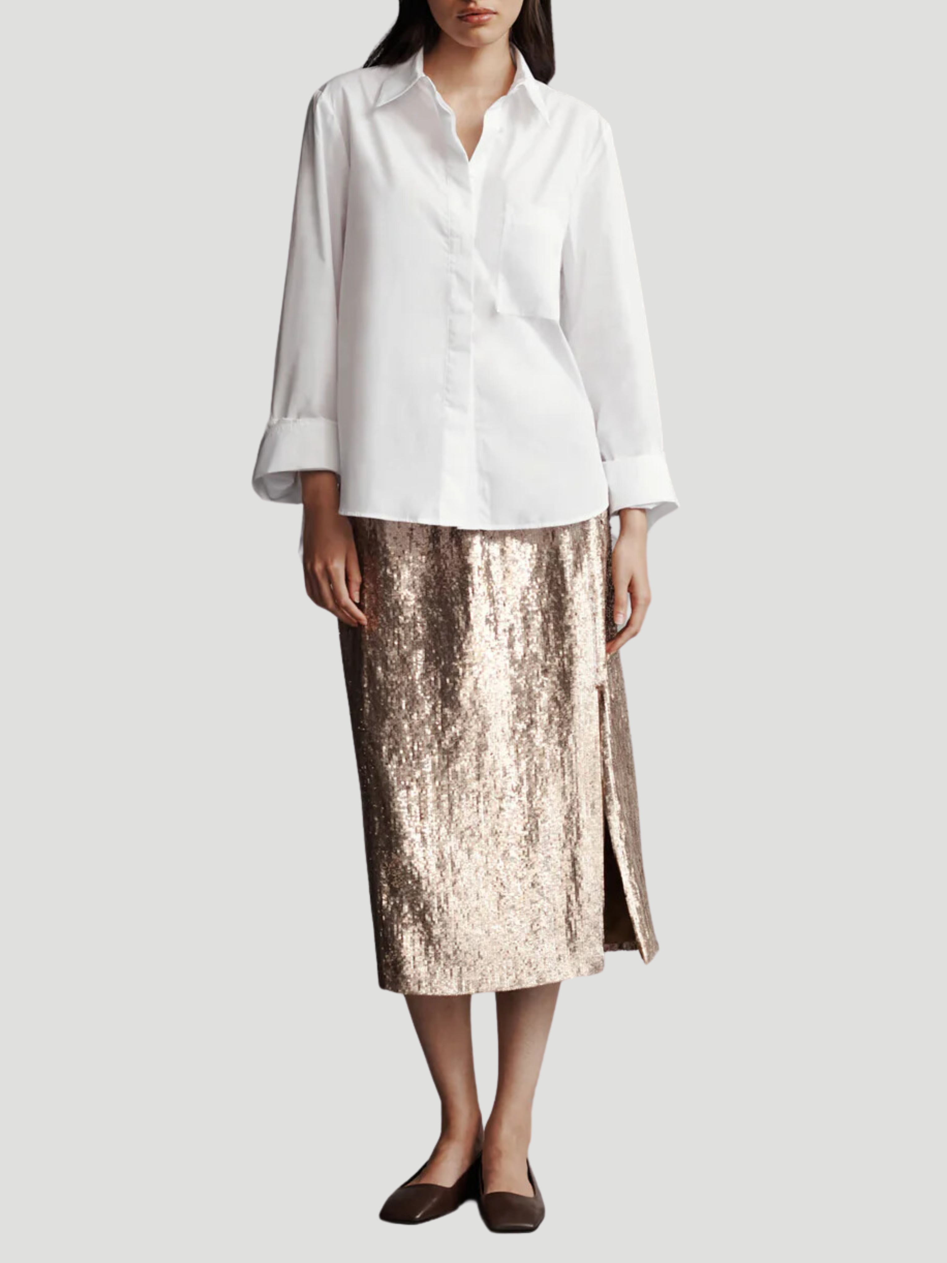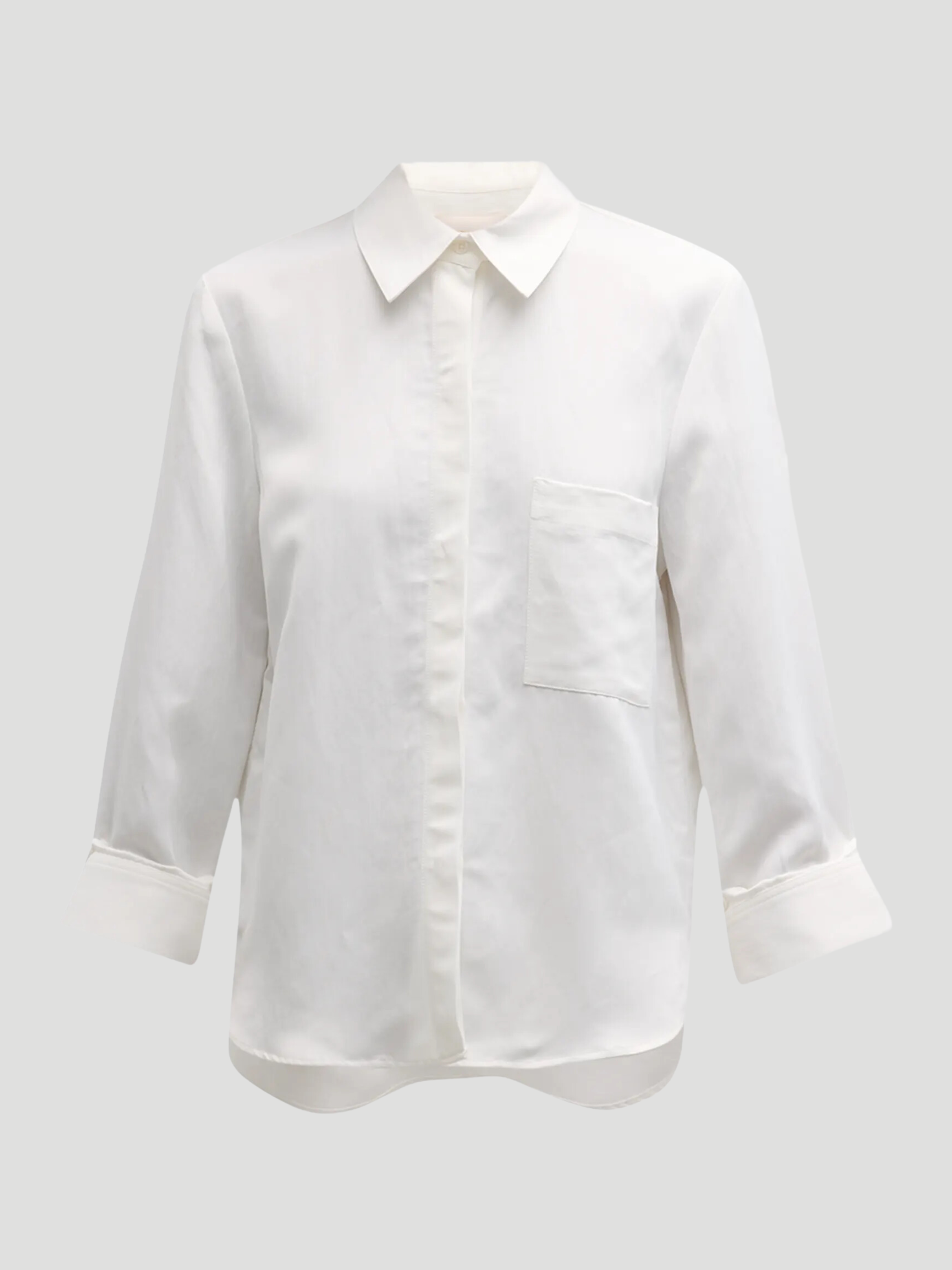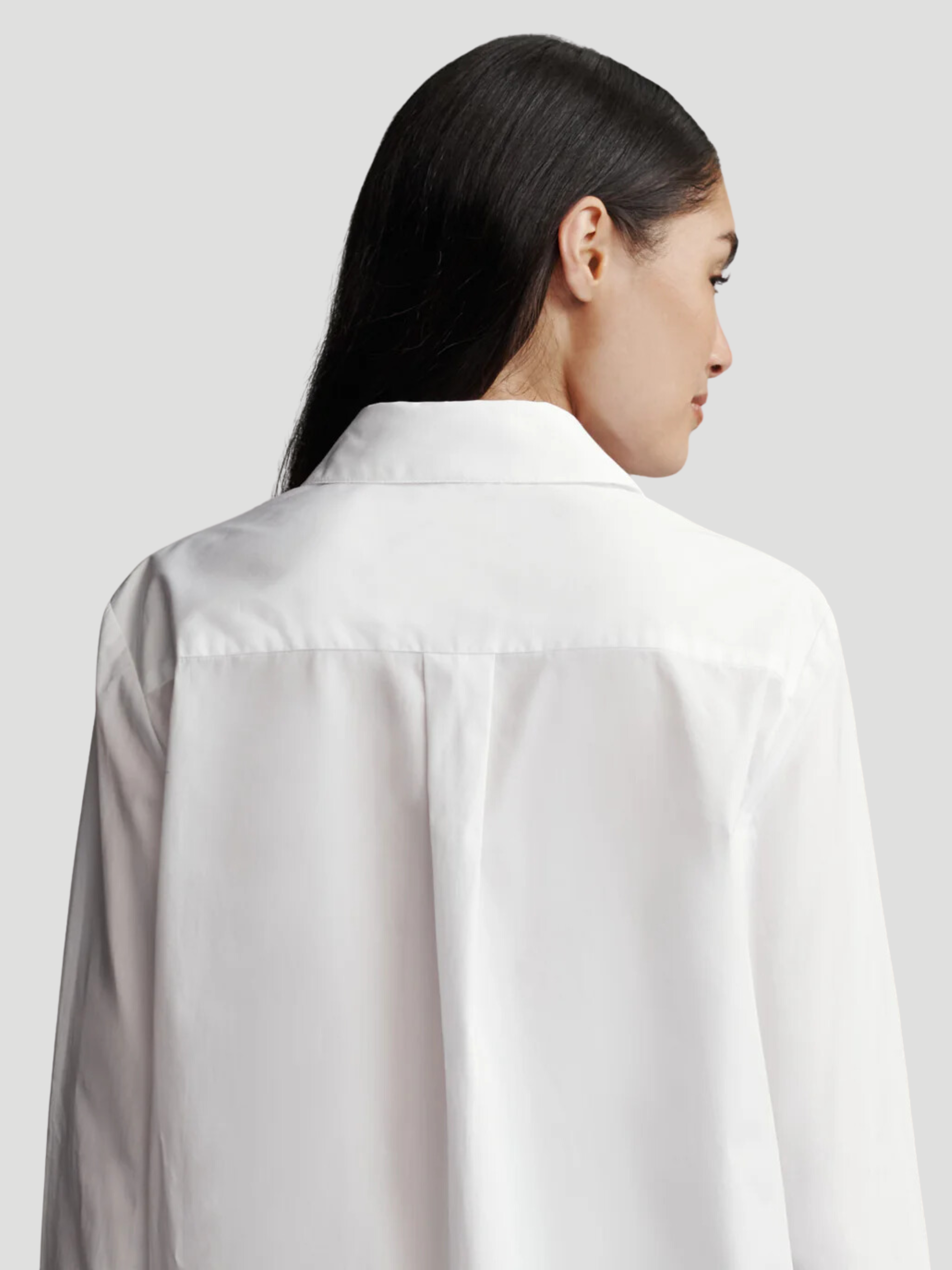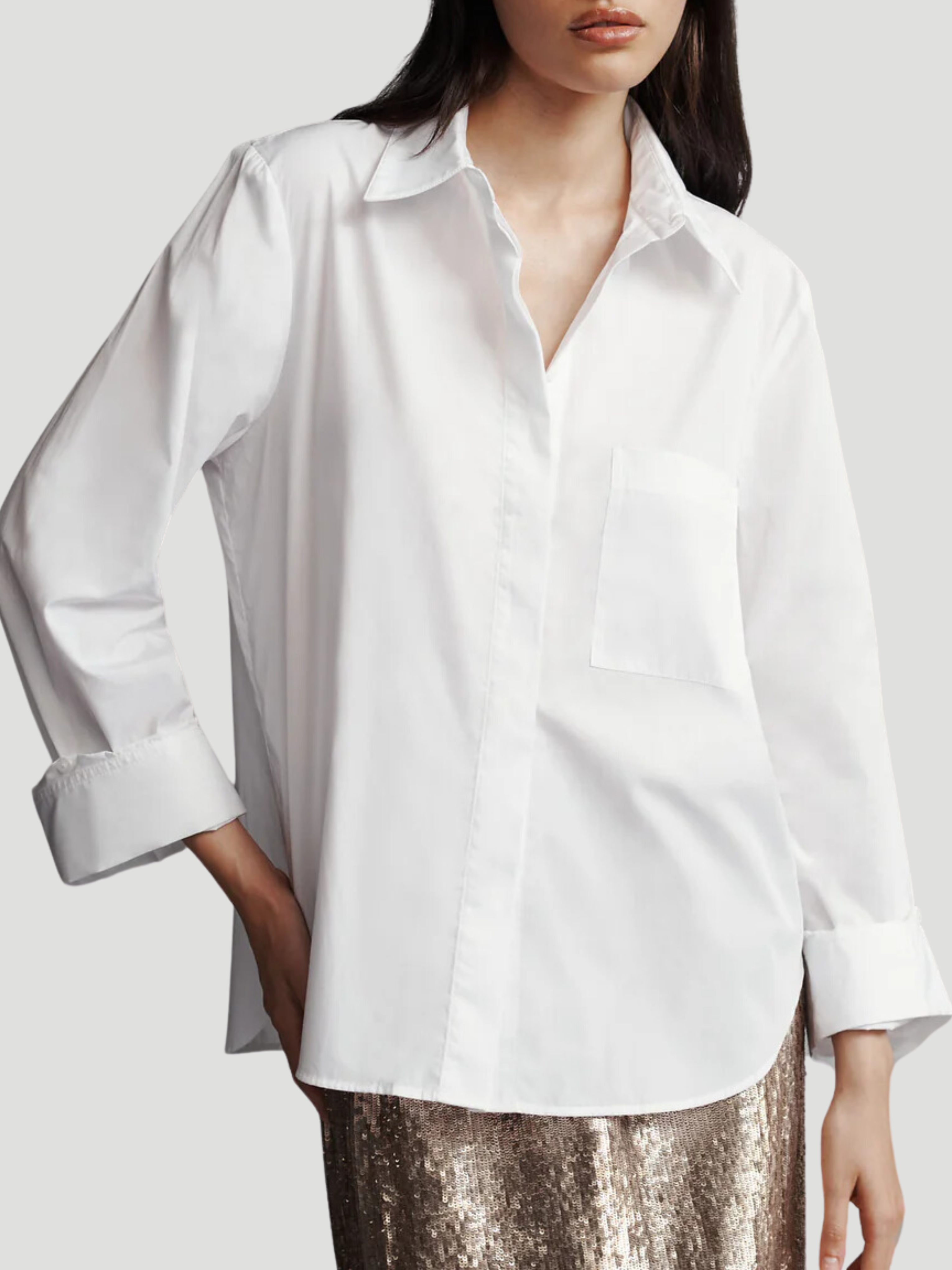 Crafted in superfine Italian cotton shirting, TWP's signature Boyfriend Shirt in White offers a relaxed fit. Featuring a chest patch pocket, concealed placket, curved hem, and single roll button cuffs, this shirt is a staple piece for any wardrobe. Made for comfort and style, perfect for any occasion.