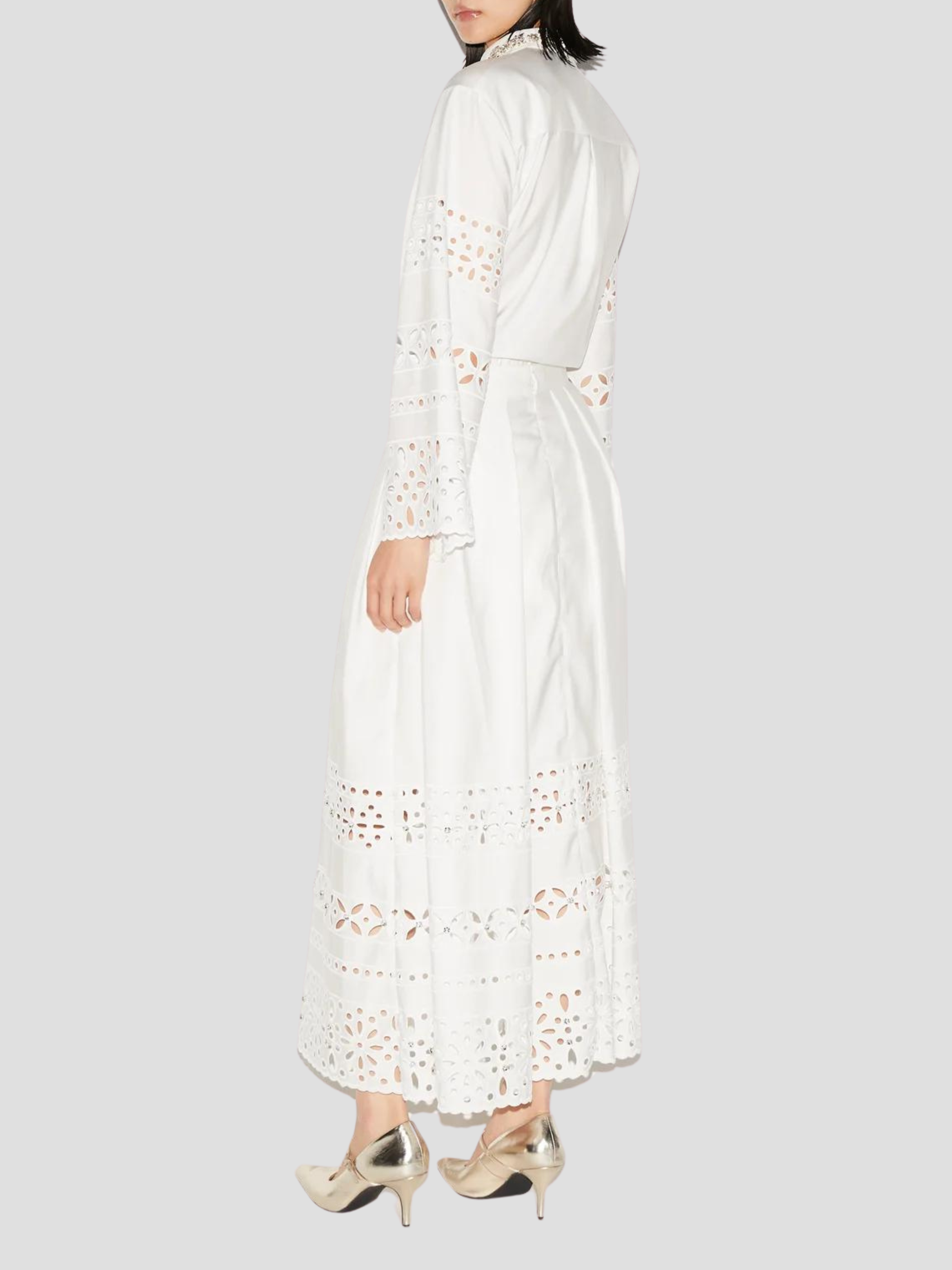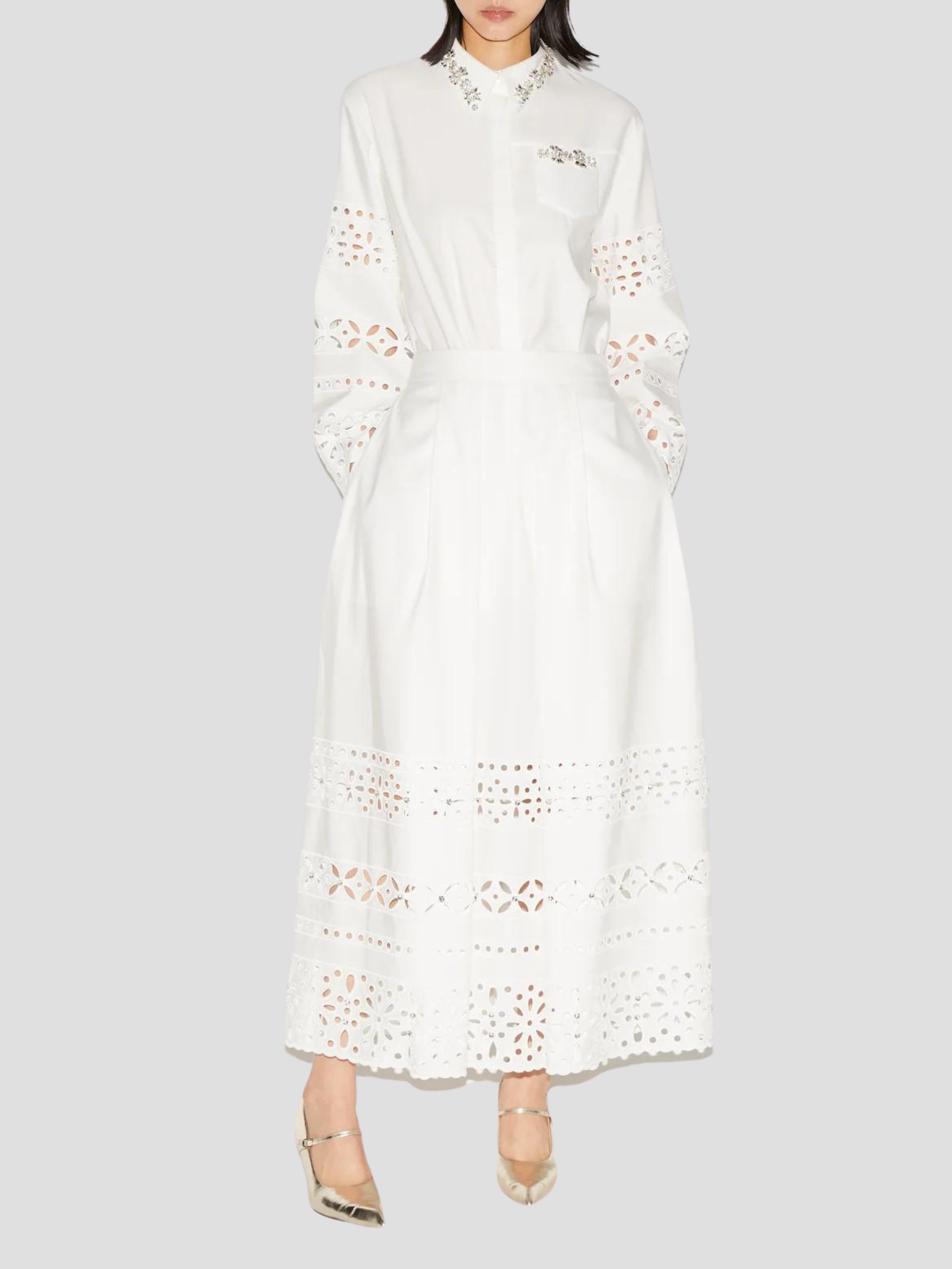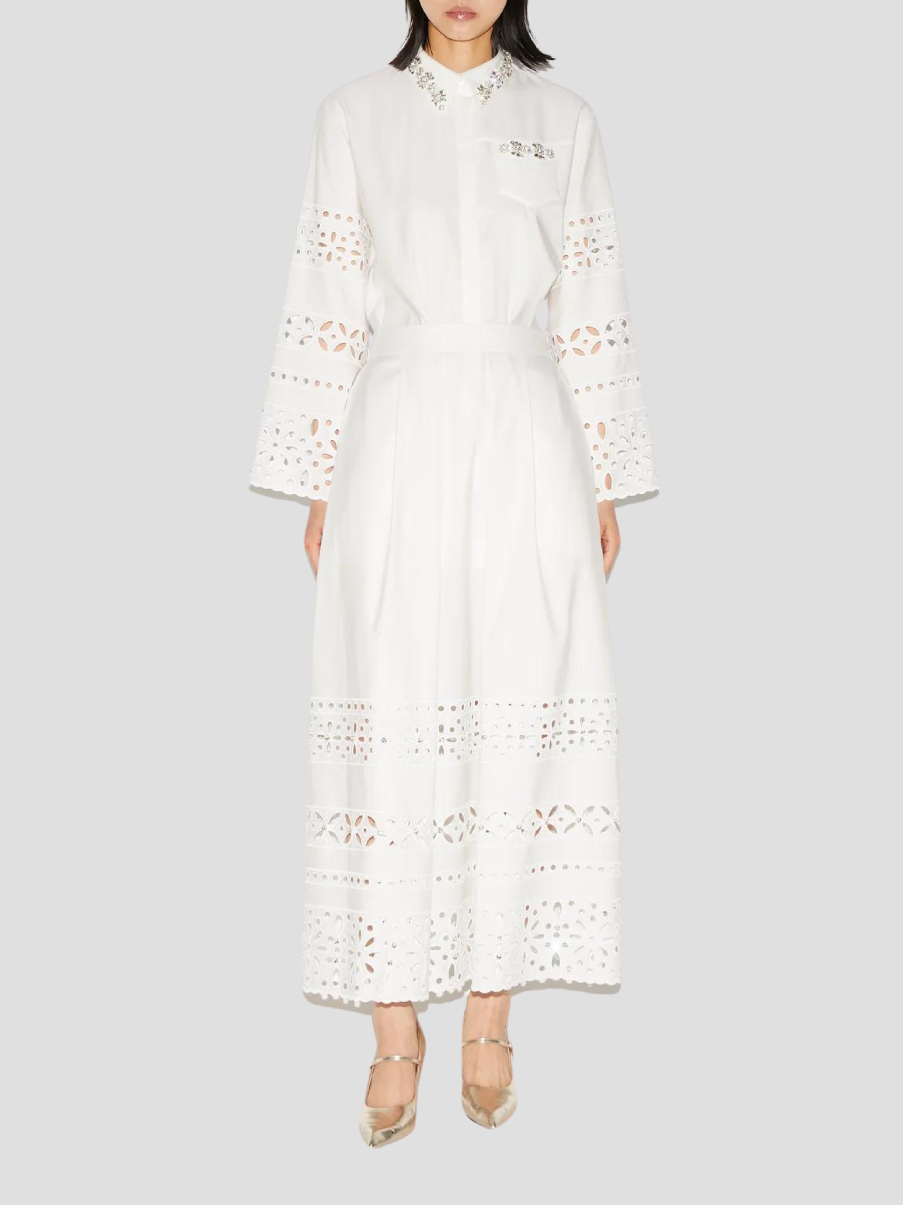 The Logan Broderie-Anglaise Longsleeve Shirt by Huishan Zhang exudes glamour with its intricate broderie anglaise detailing on the sleeves and delicate crystal embellishments. Made from white faille, this shirt offers a casual elegance that can be dressed up or down. Designed to be worn as a set with the coordinating skirt.