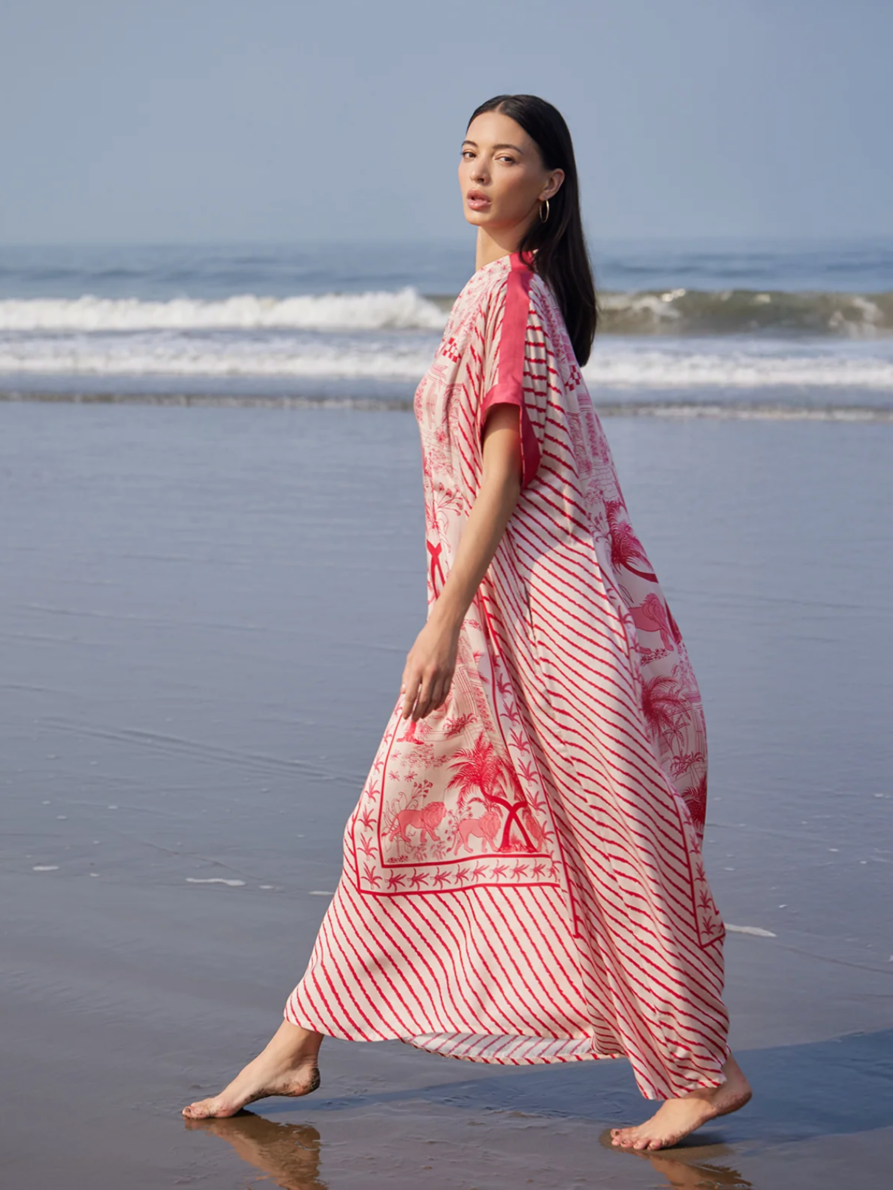 Sundowner Kaftan in Dusty Rose and Raspberry