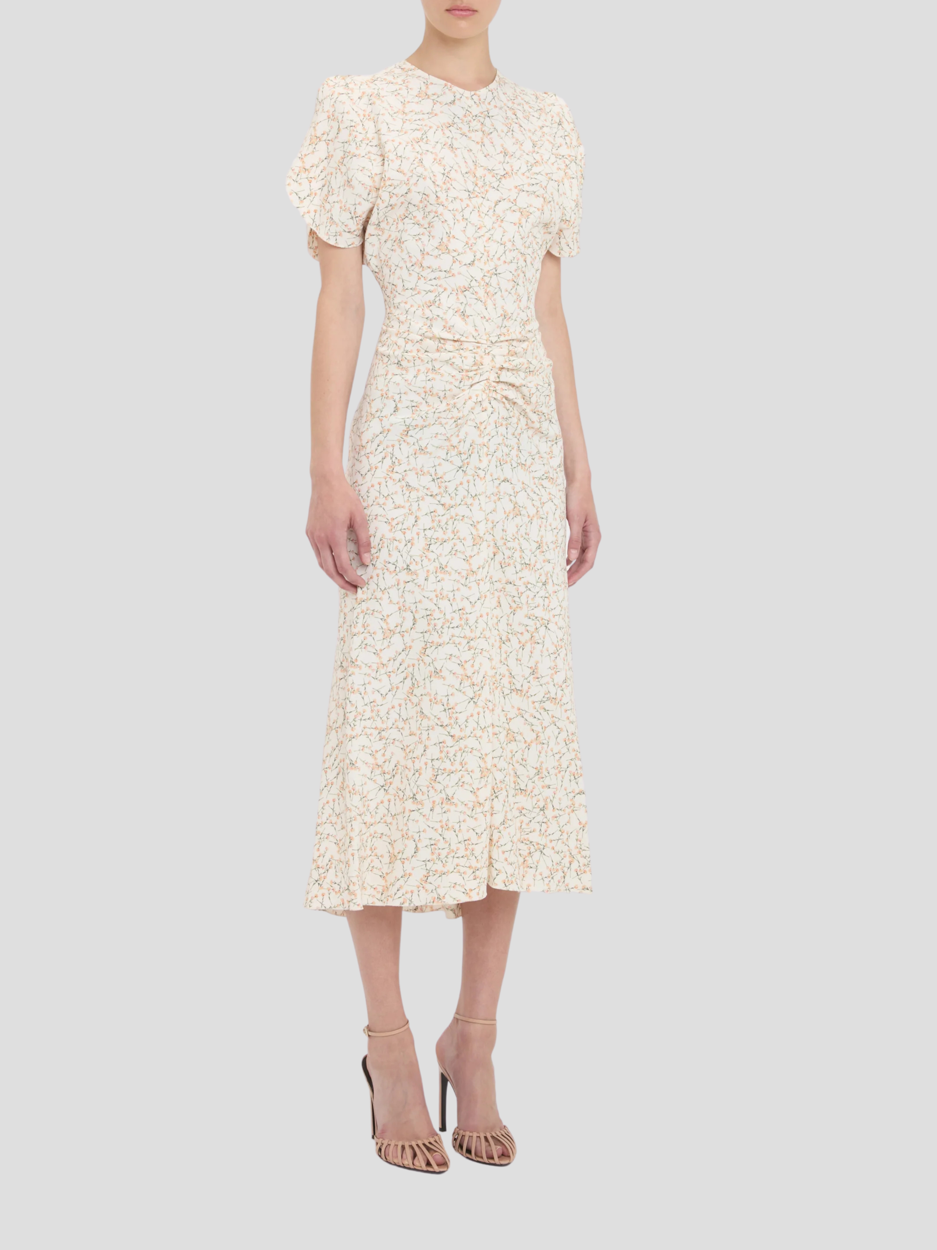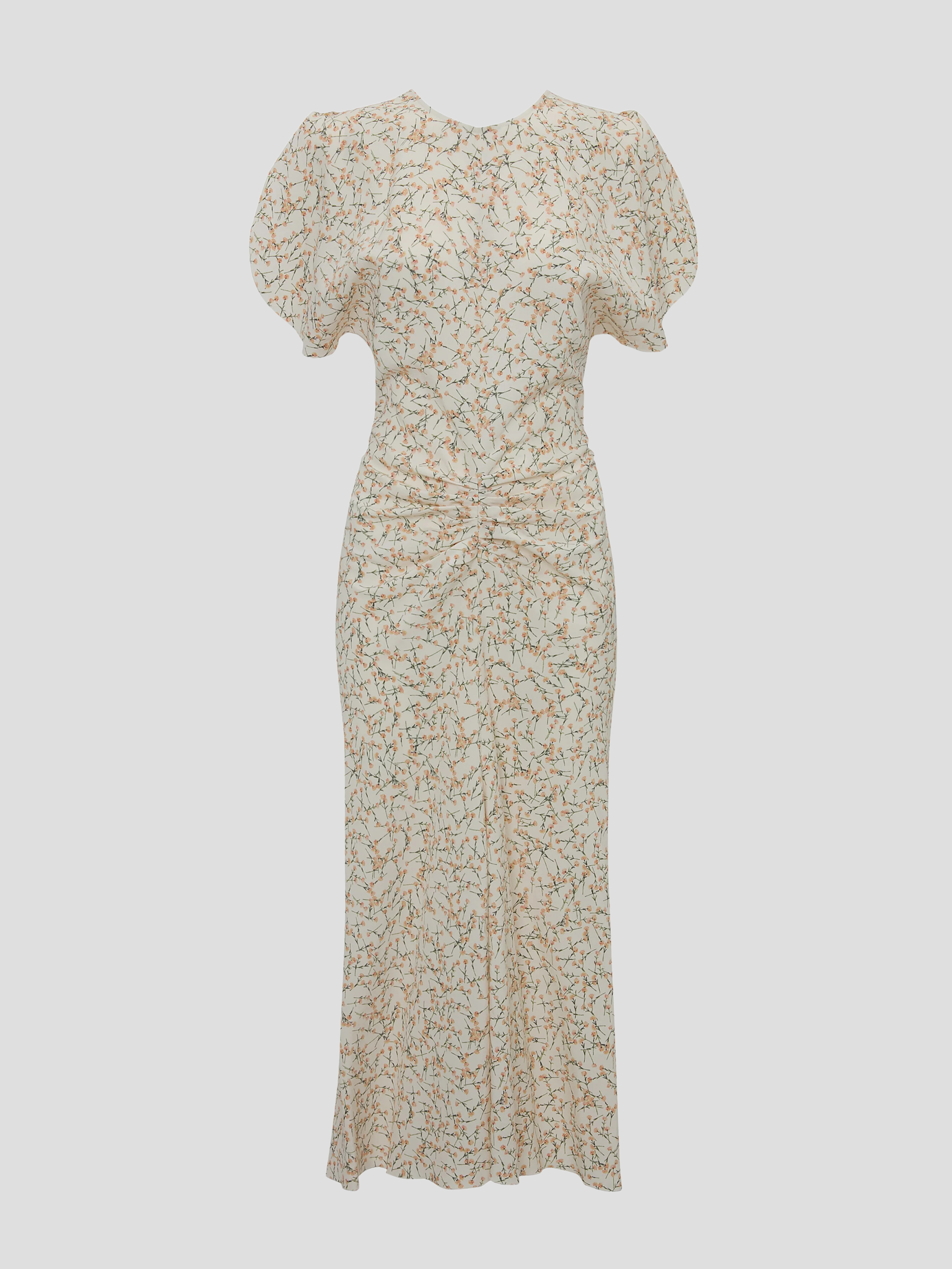 Gathered Waist Midi Dress in Floral