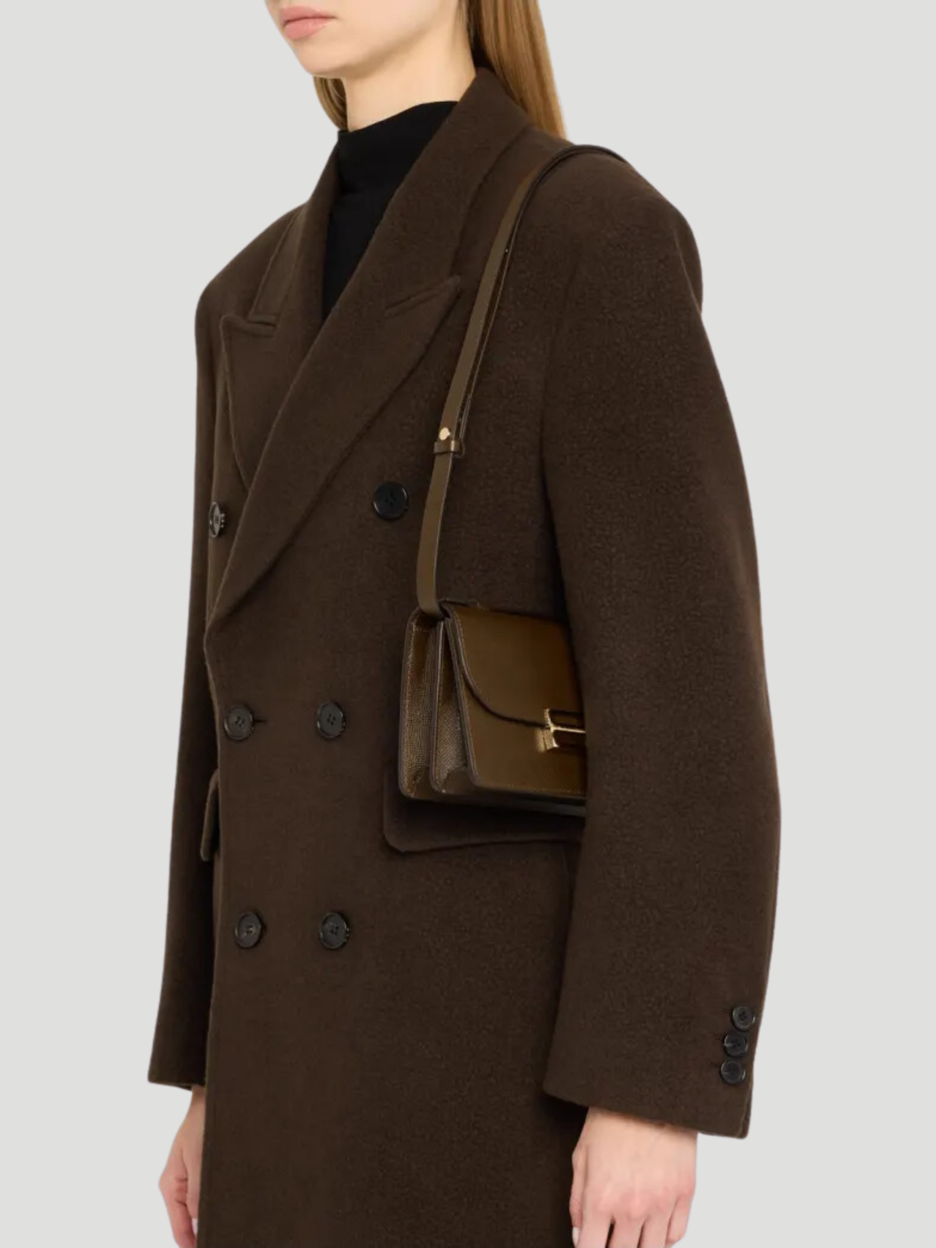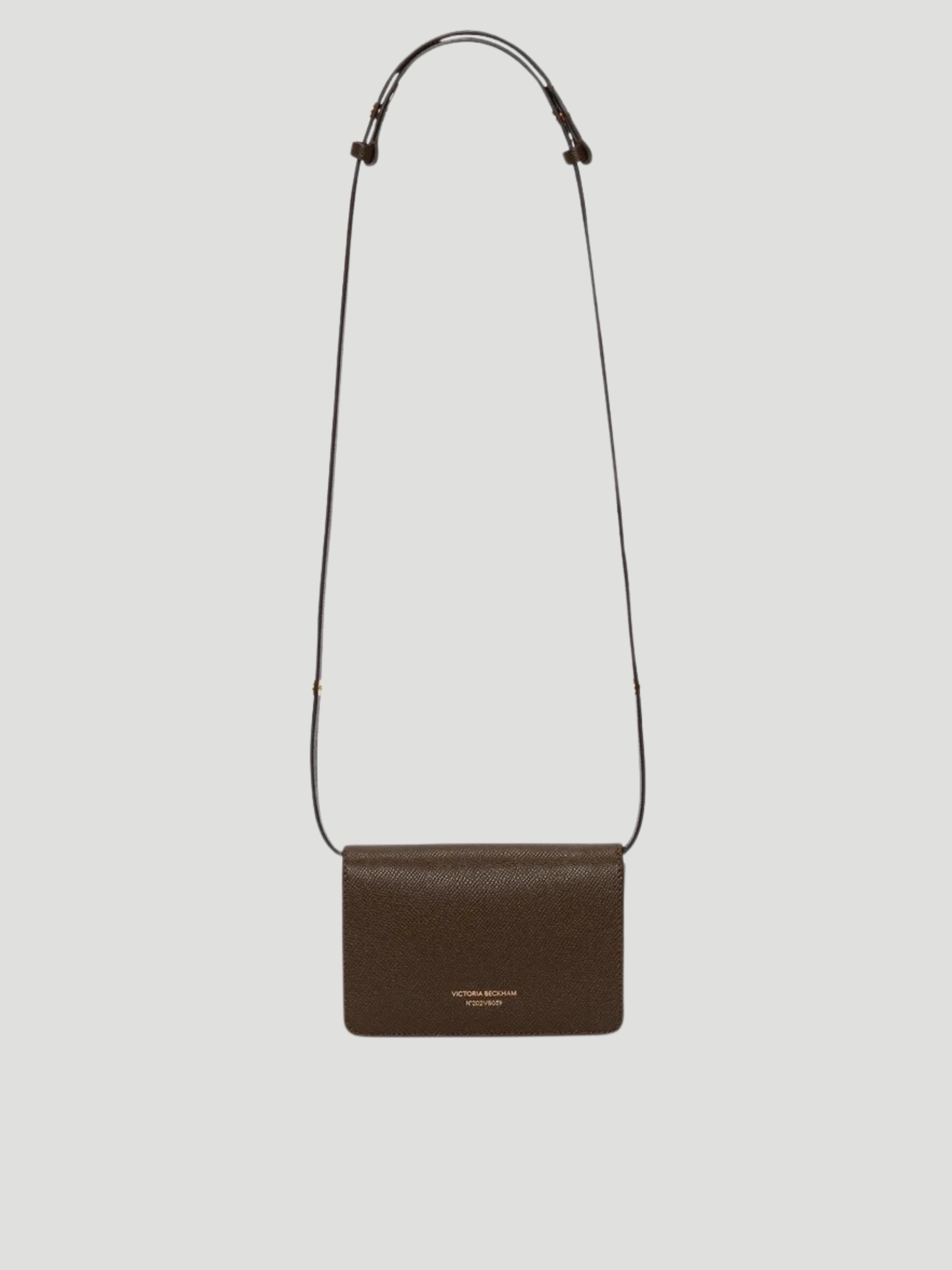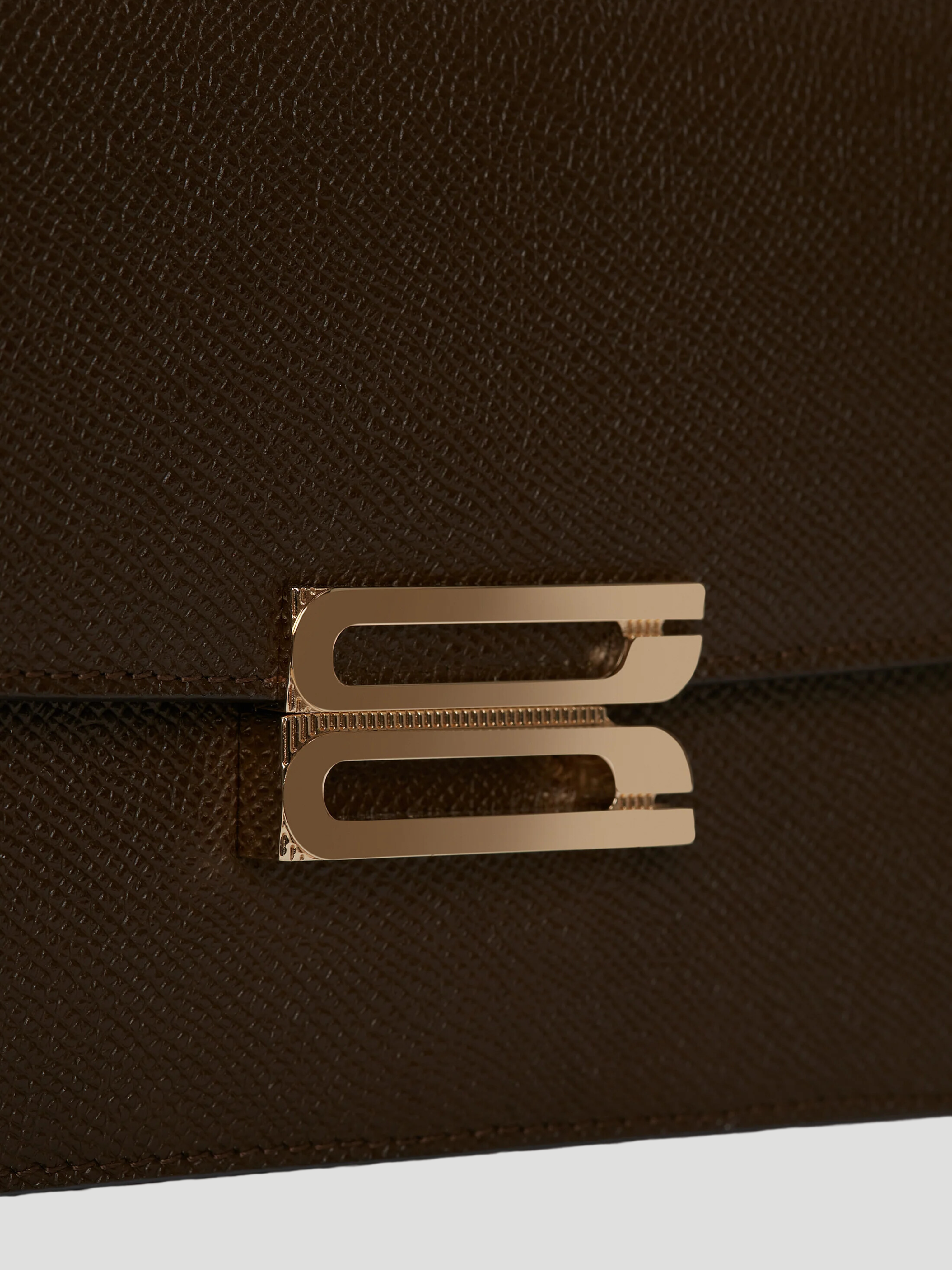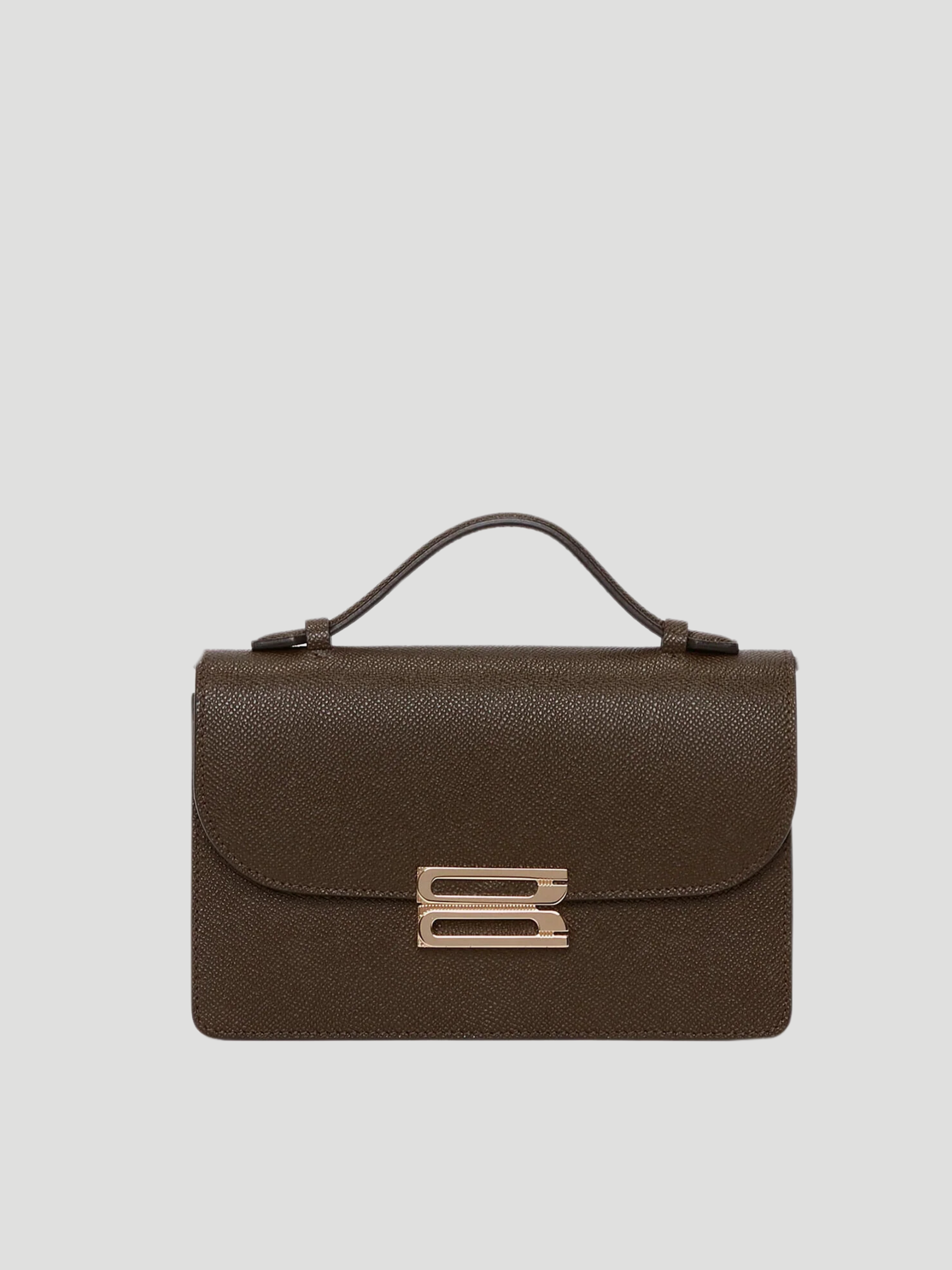 B Buckle Mini Khaki Textured-Leather Shoulder Bag