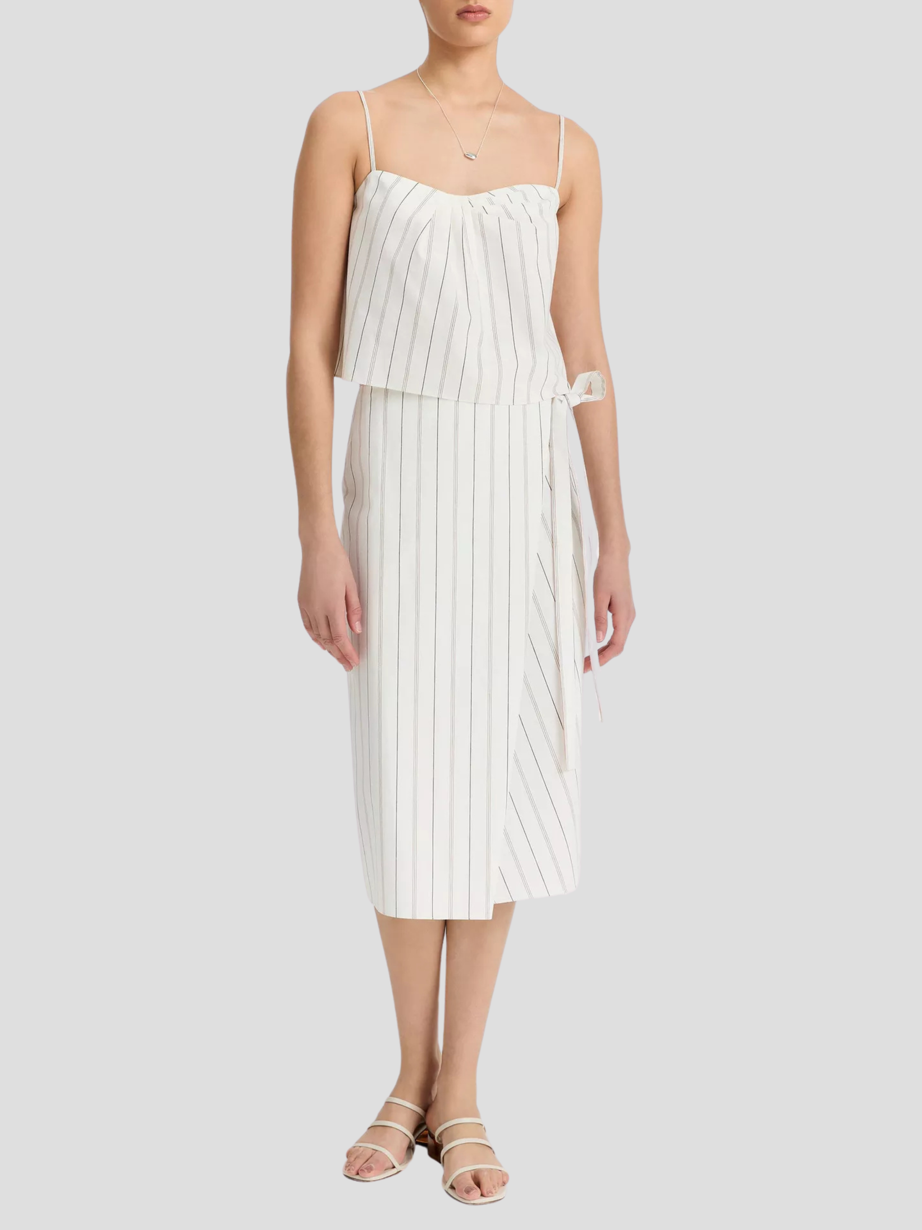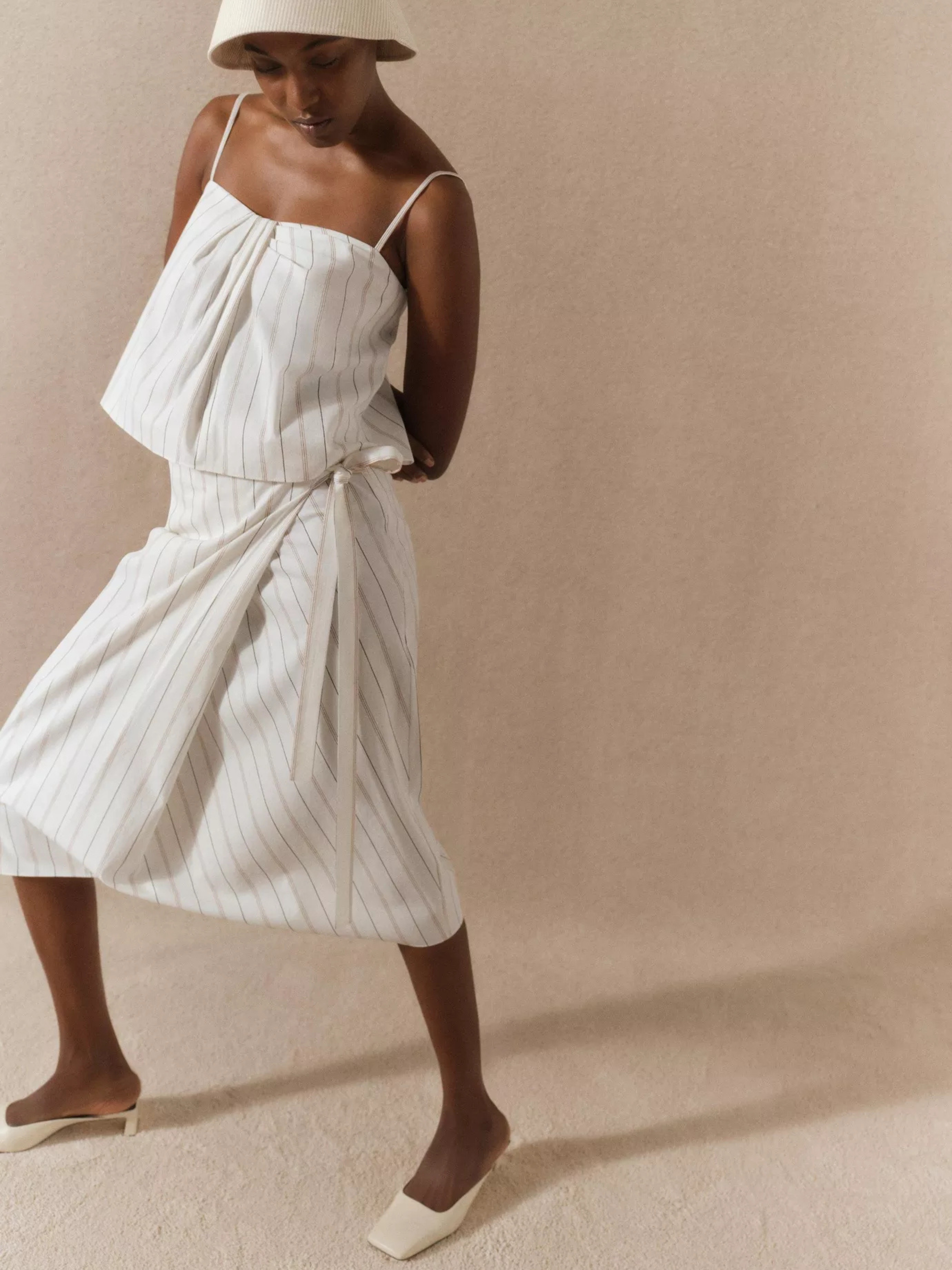 Gardening and utility planted the seeds for this season's collection. The Seedling Stripe tank is crafted from lightweight cotton twill ideal for rising temperatures and distinguished by gentle draping at the top. It pairs back to our Seedling Skirt for a matching set.