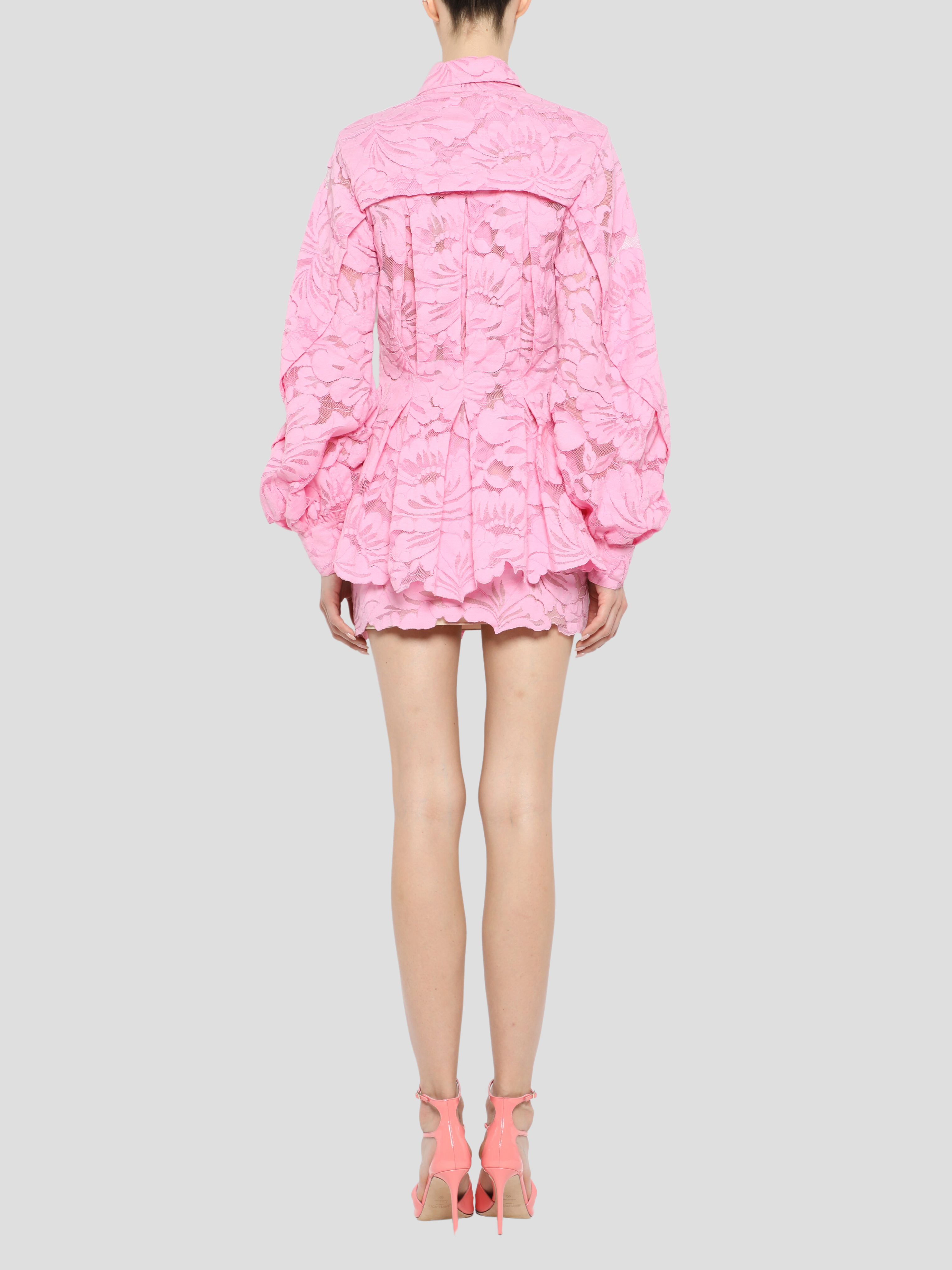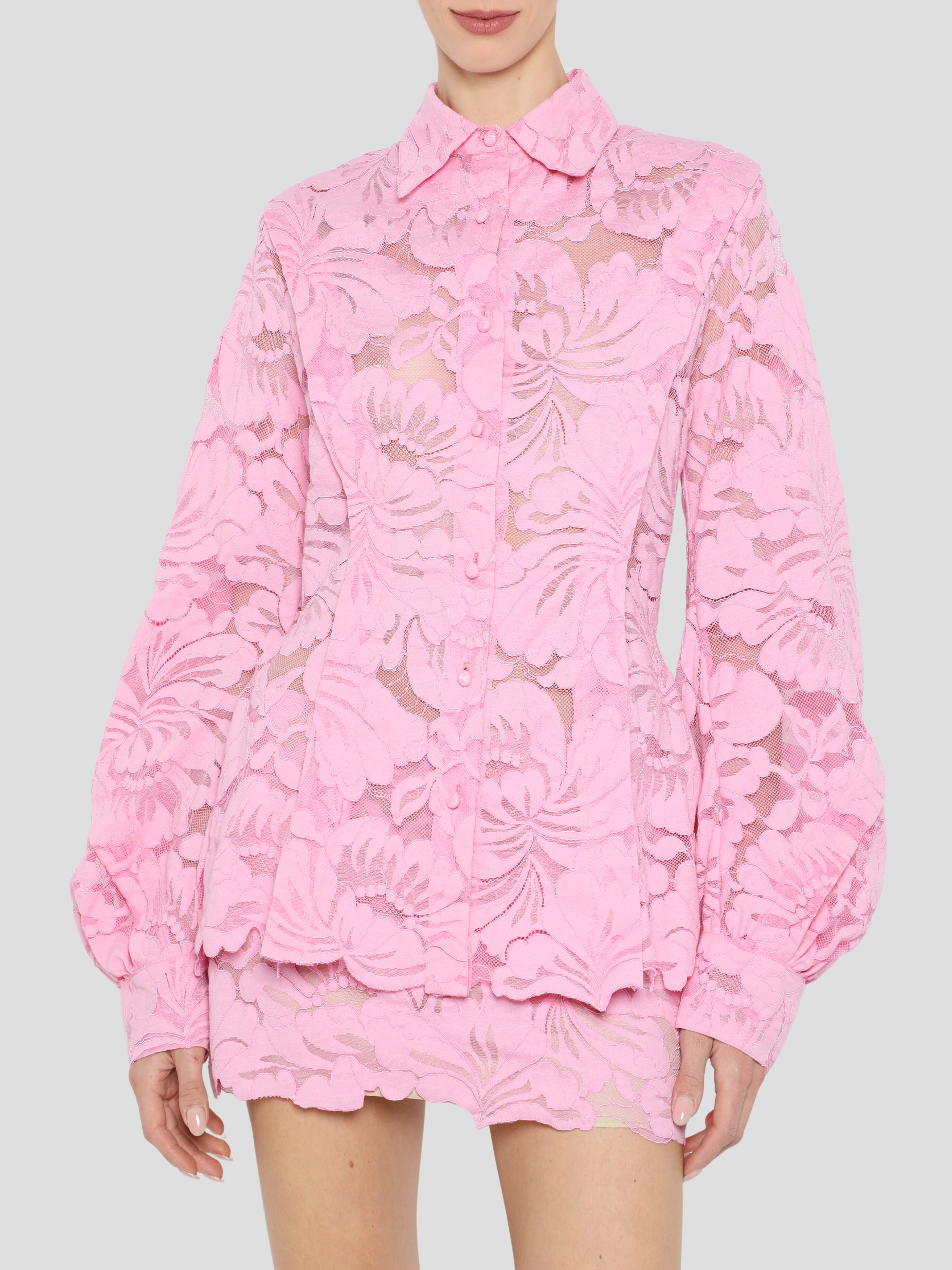 Poet Sleeve Button Down Peplum Shirt in Aurora Pink