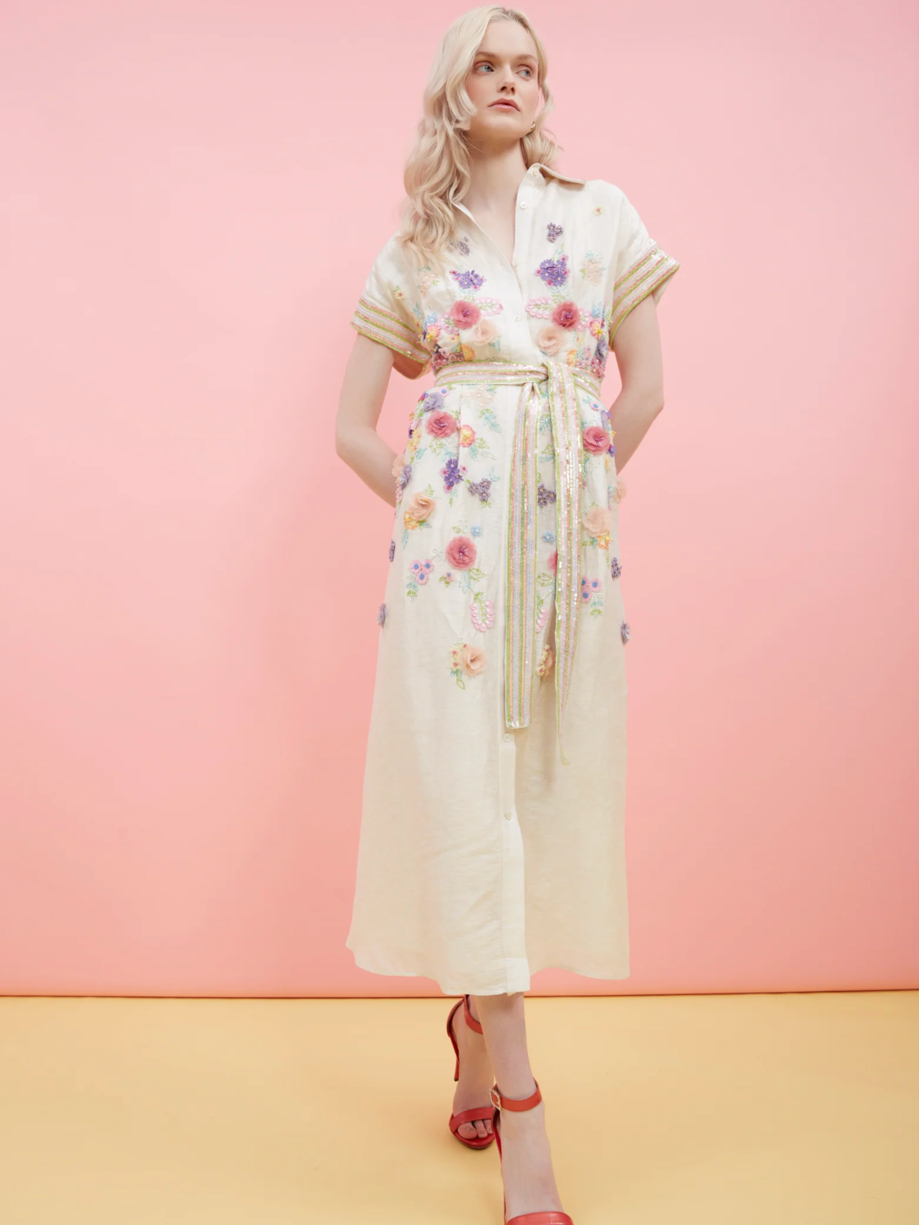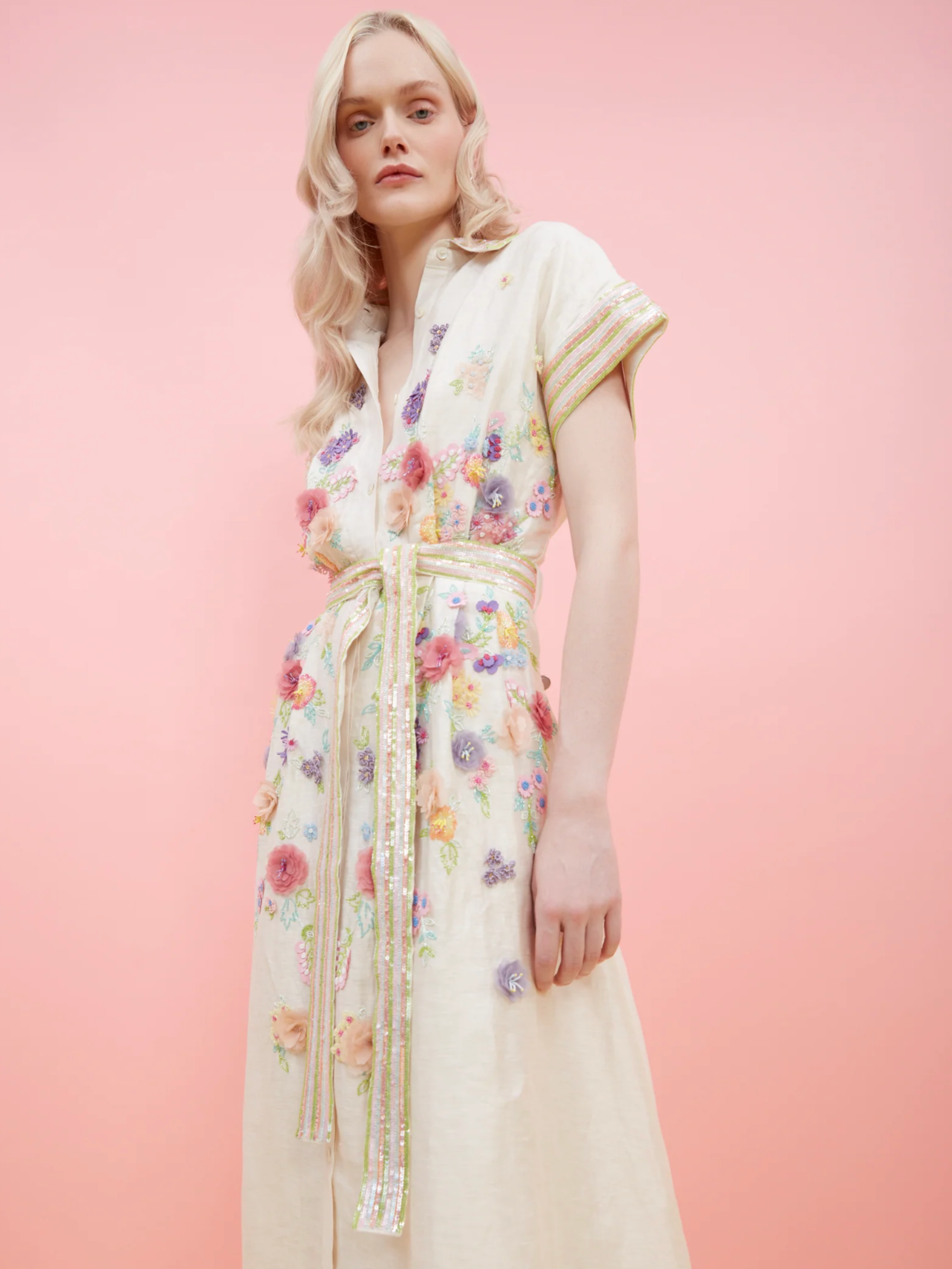 High Garden Maxi Dress in Rainbow Stripe Twill