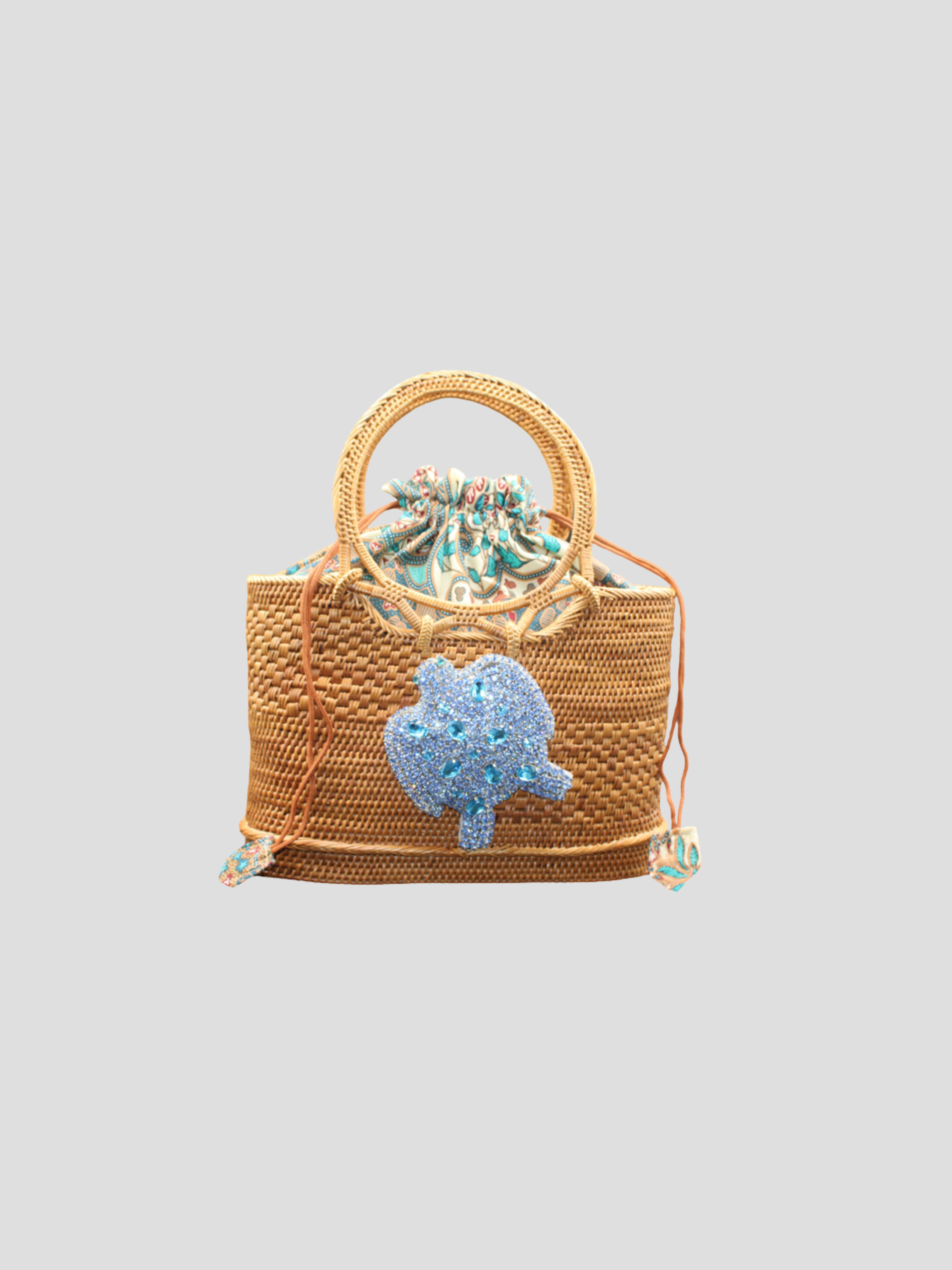 Raffia Tote with Ocean Sea Turtle