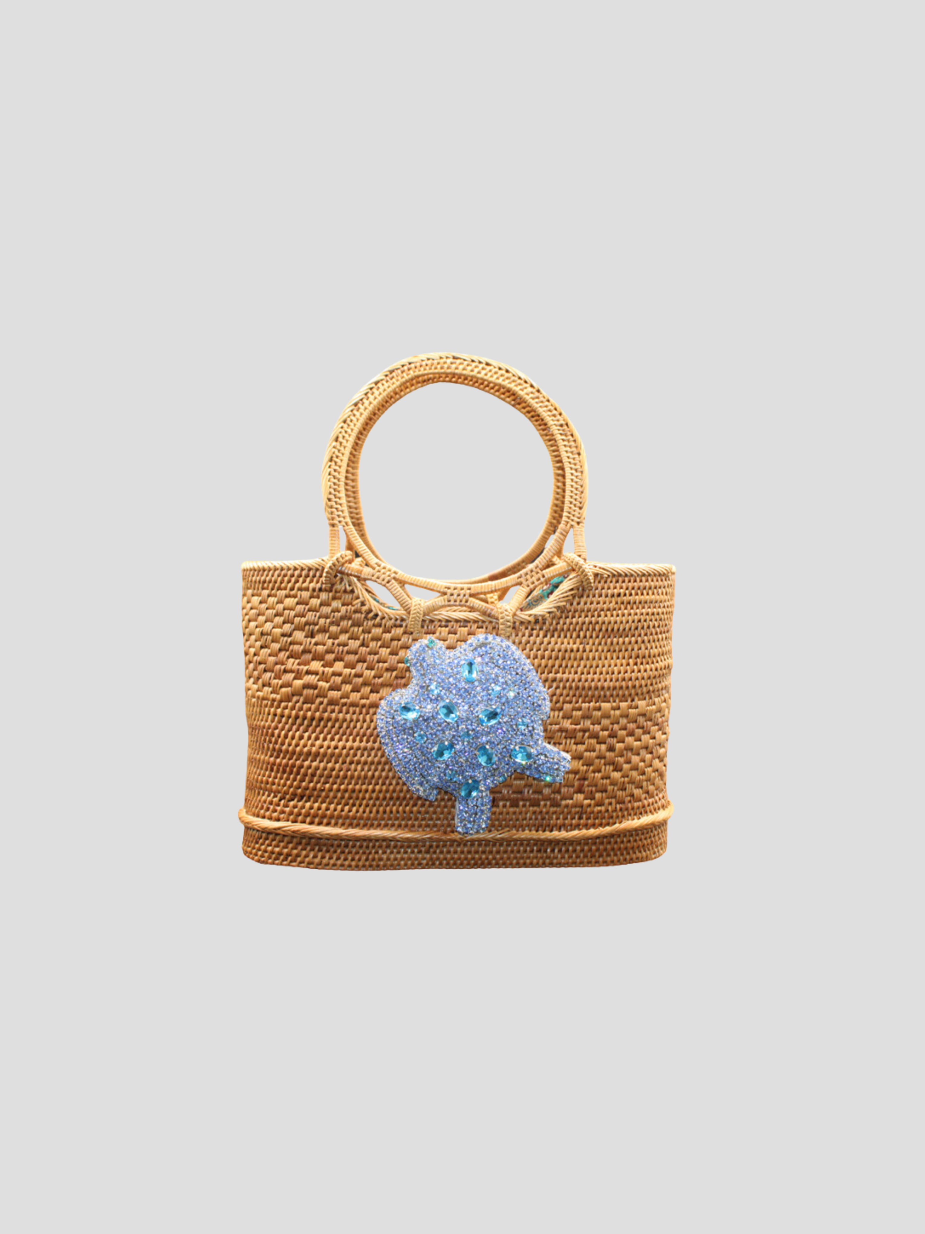 Palm Tree Swarovski Handbag with Green Aventurine Handles and Straps