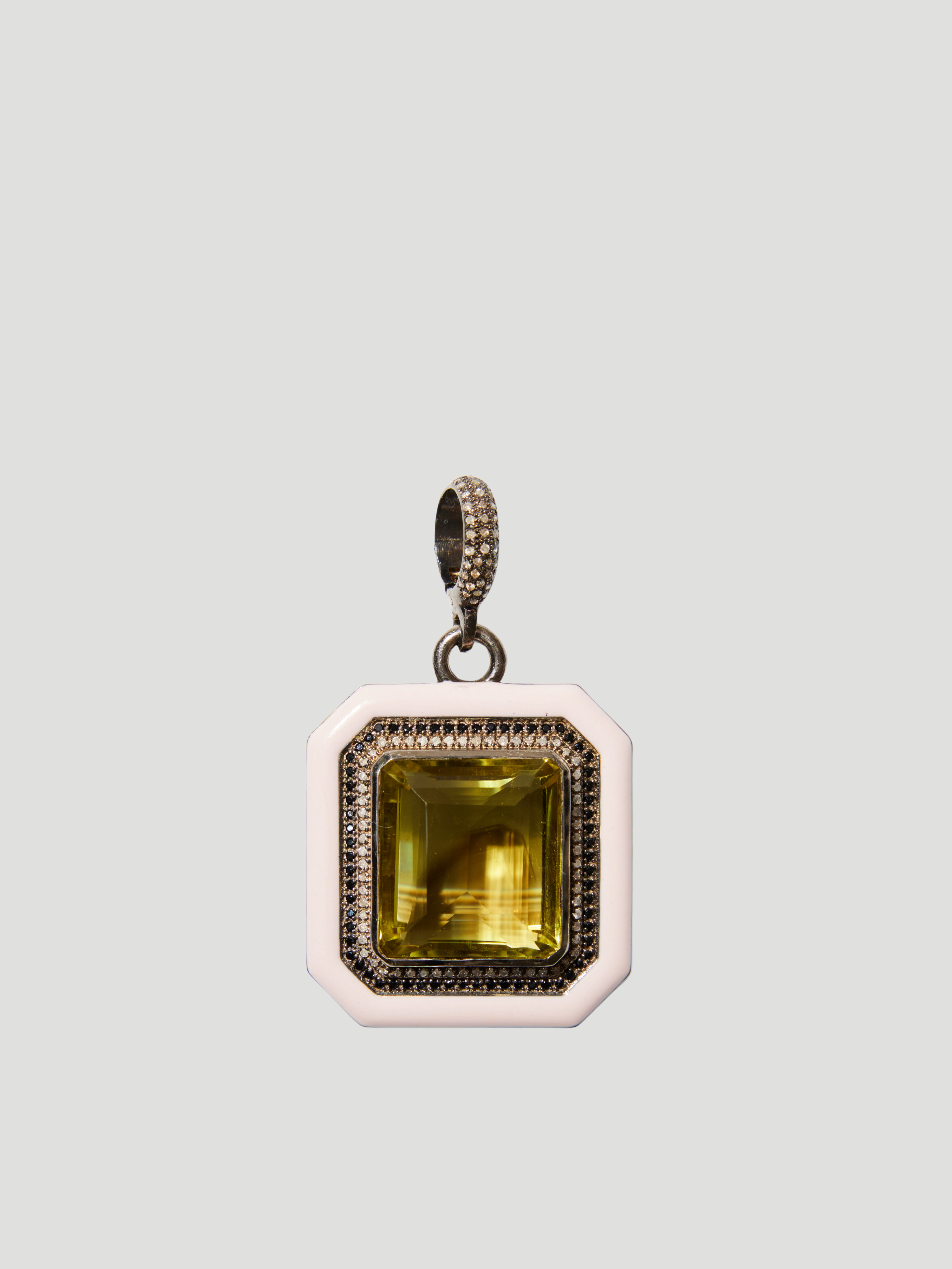 The Feminine Mystique Pendant by Heili Rocks combines citrine with dark sapphire and diamond, set in nude enamel for a touch of mystery.