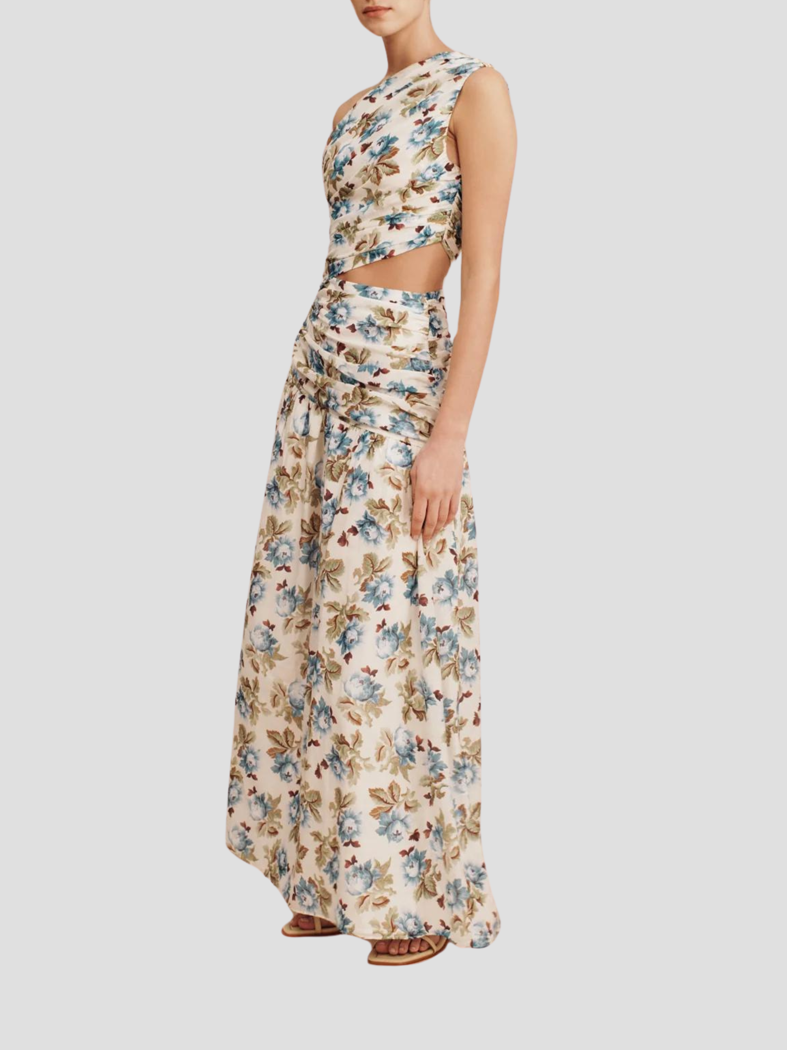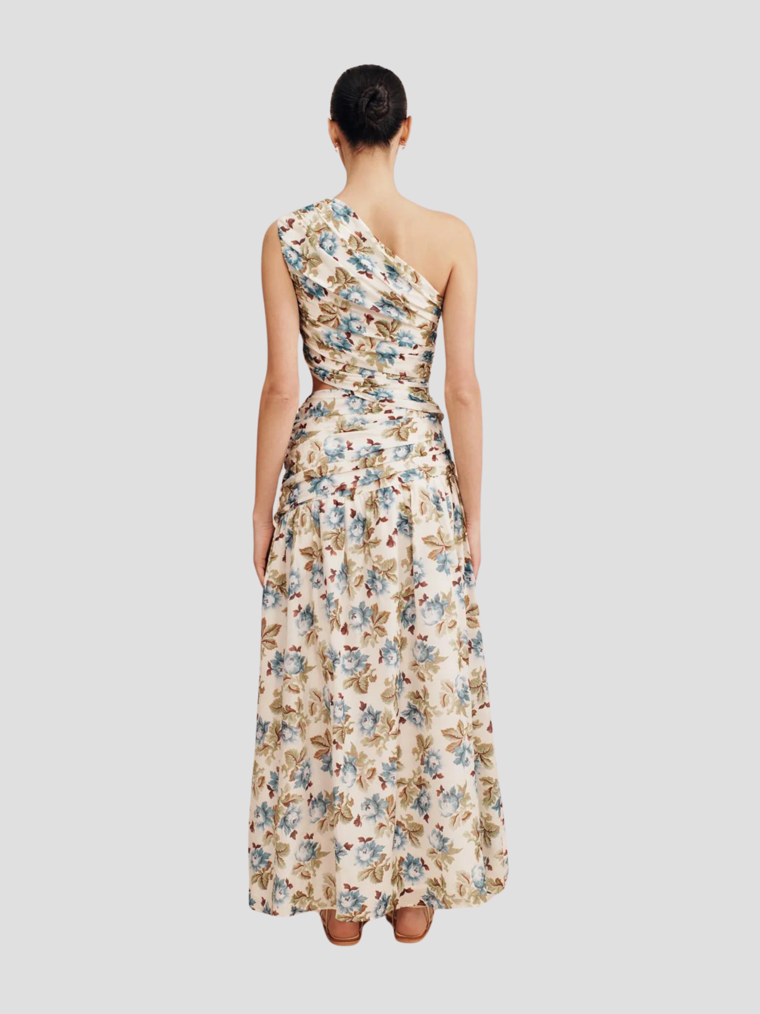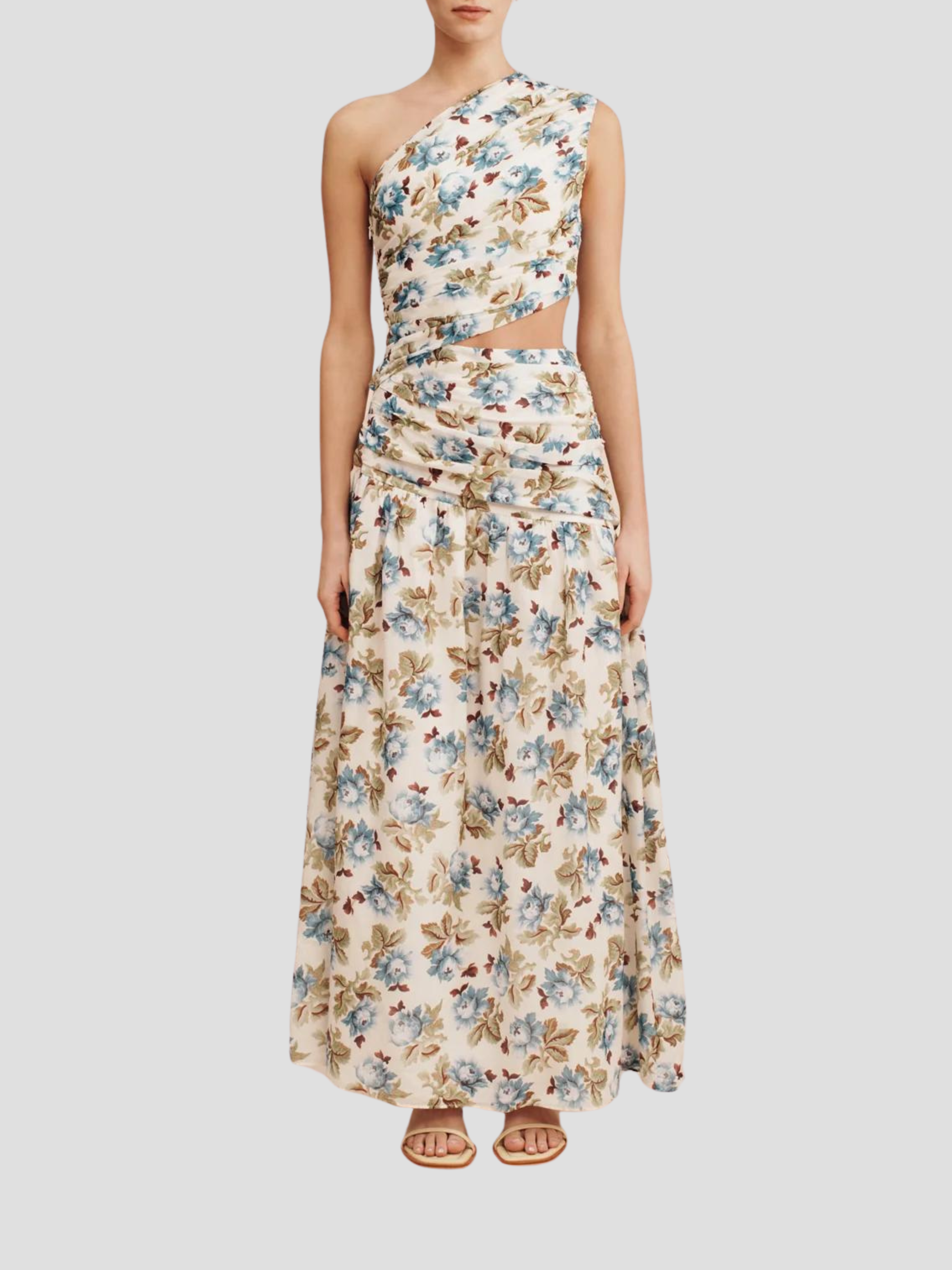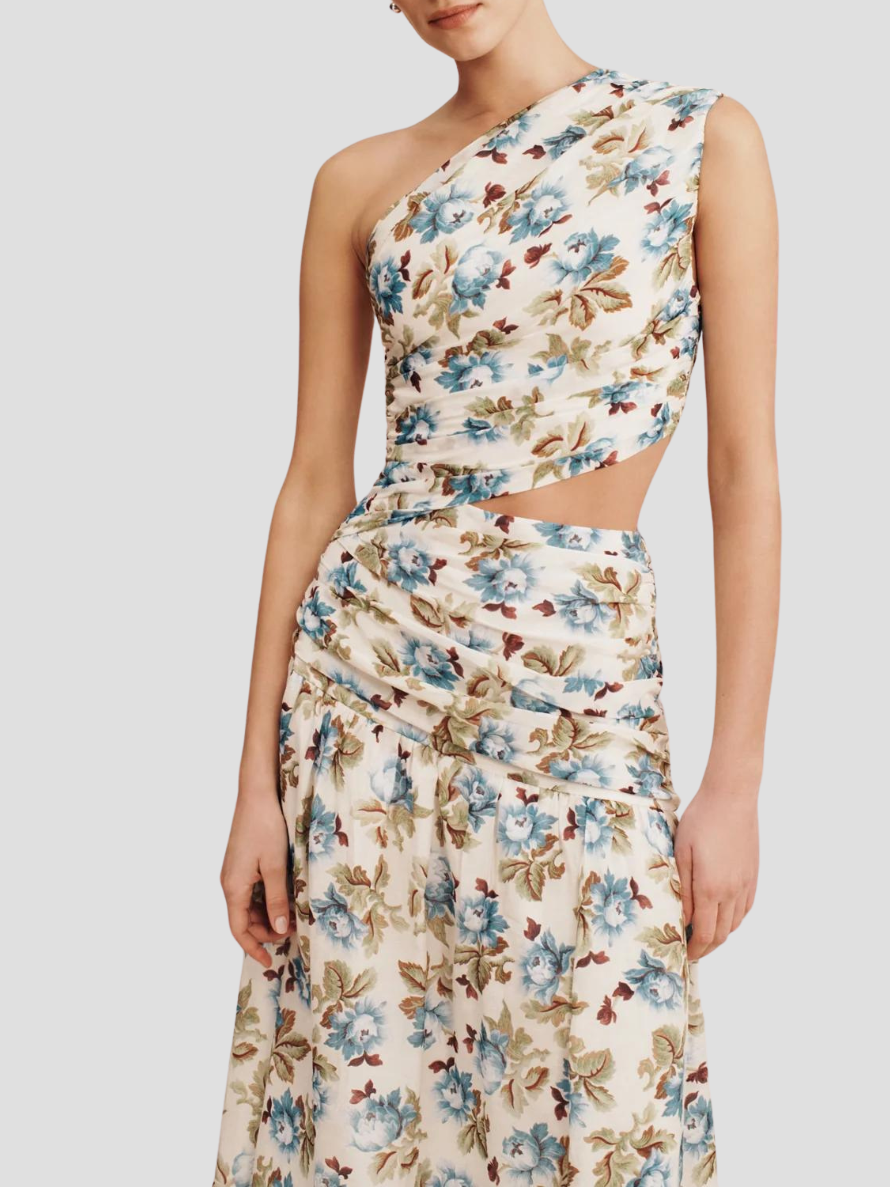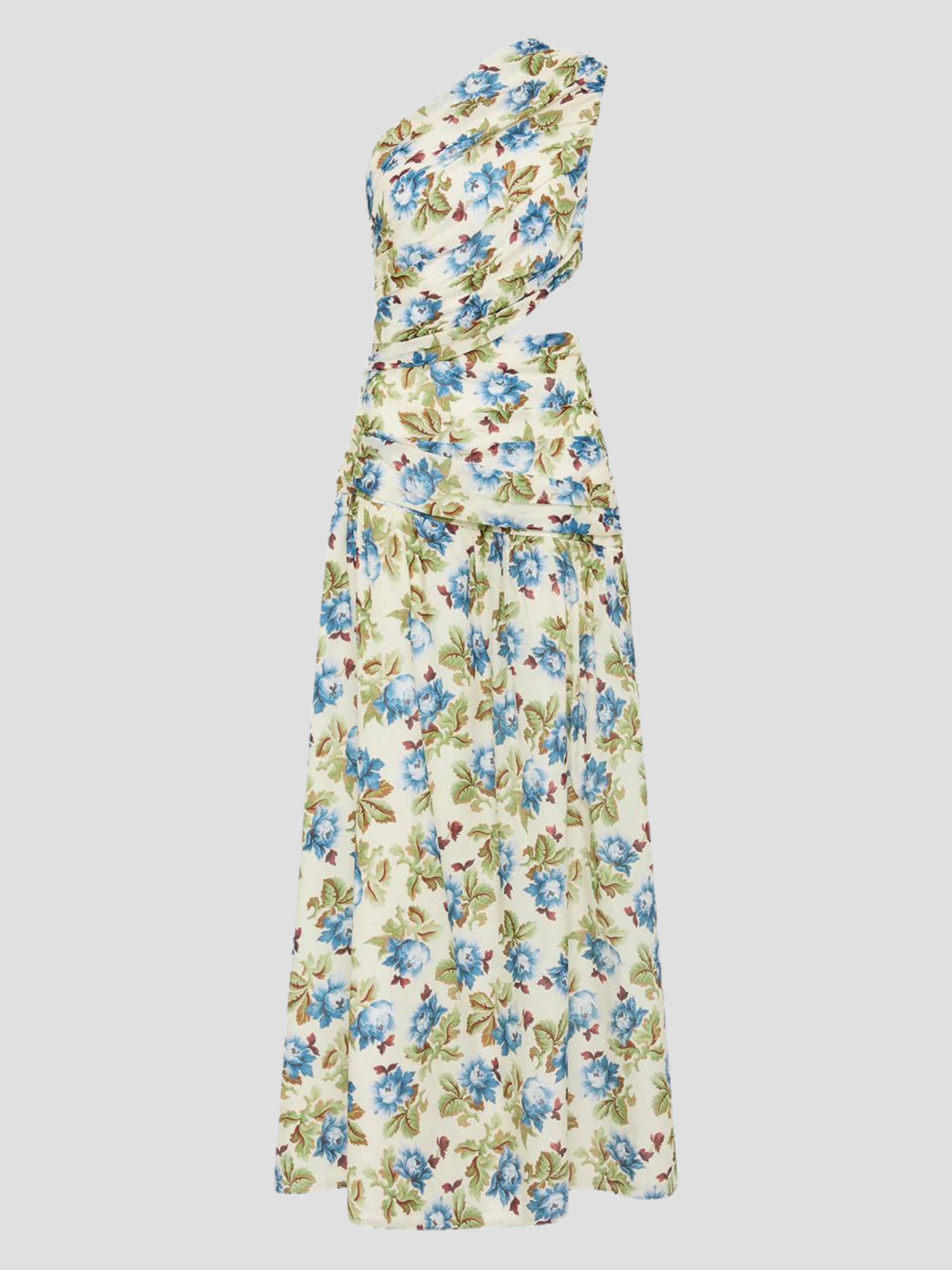 The Joslin One Shoulder Dress is crafted from a luxurious silk-cotton blend, making it perfect for both day and evening wear. Adorned with vintage-inspired florals, it's softly ruched throughout the bodice and features a subtle cut-out at the waist.