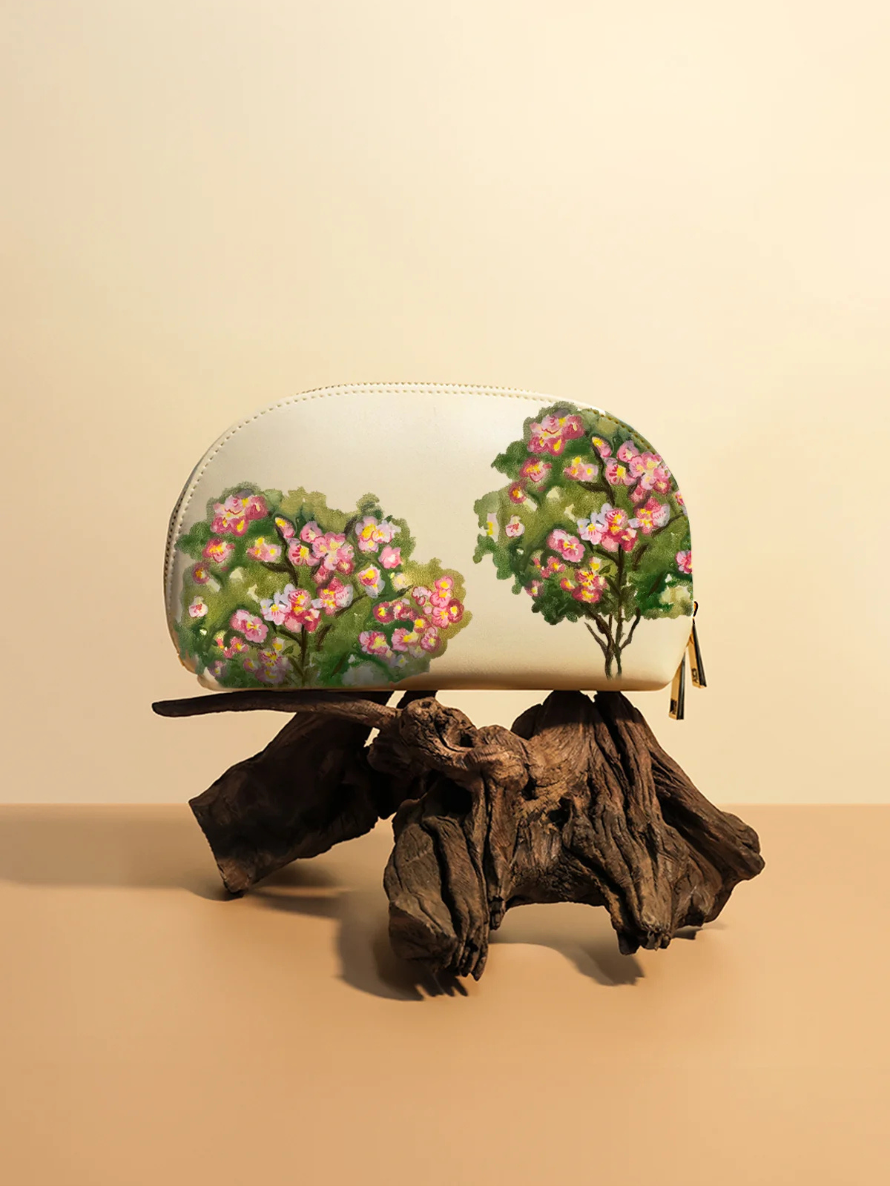 - Makeup bag with an interior pocket and a gold hardware zipper closure.