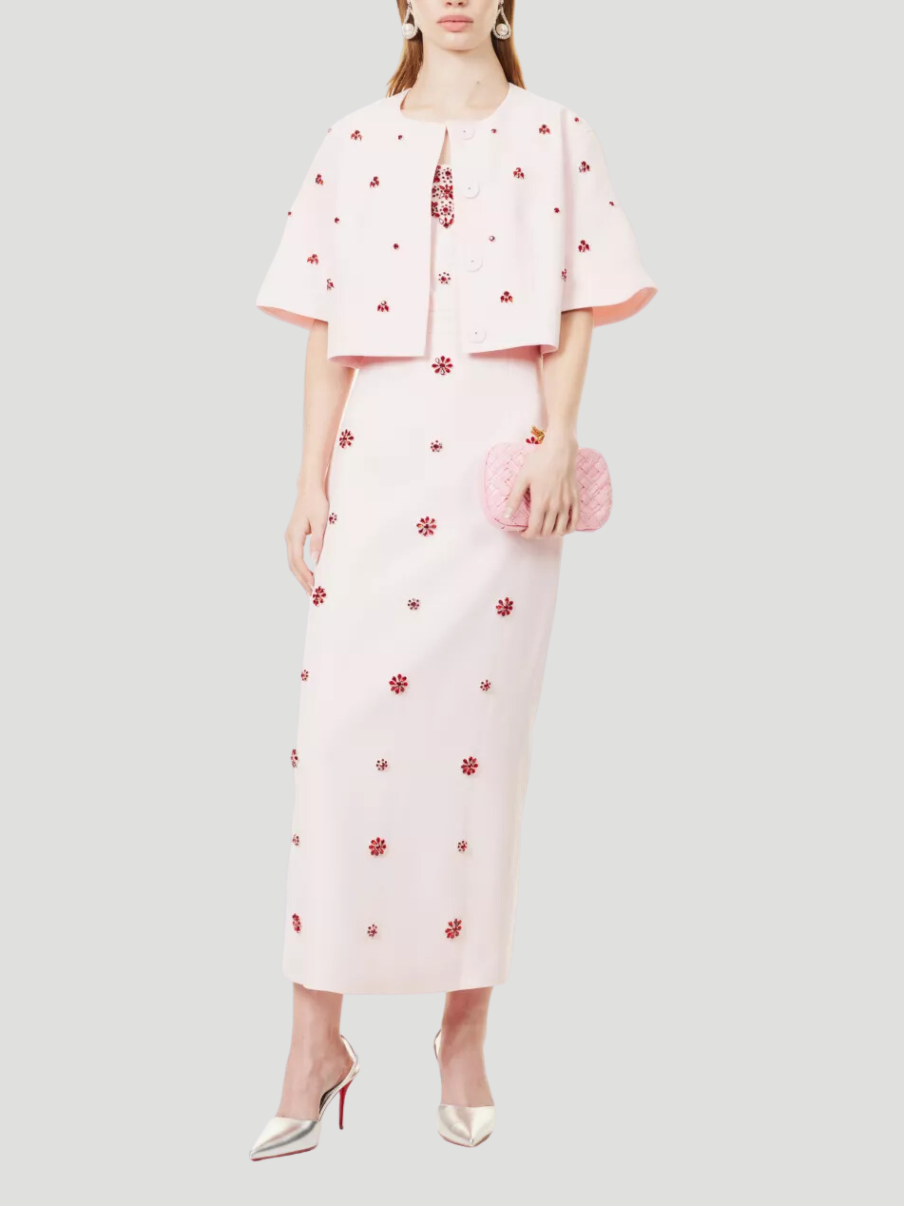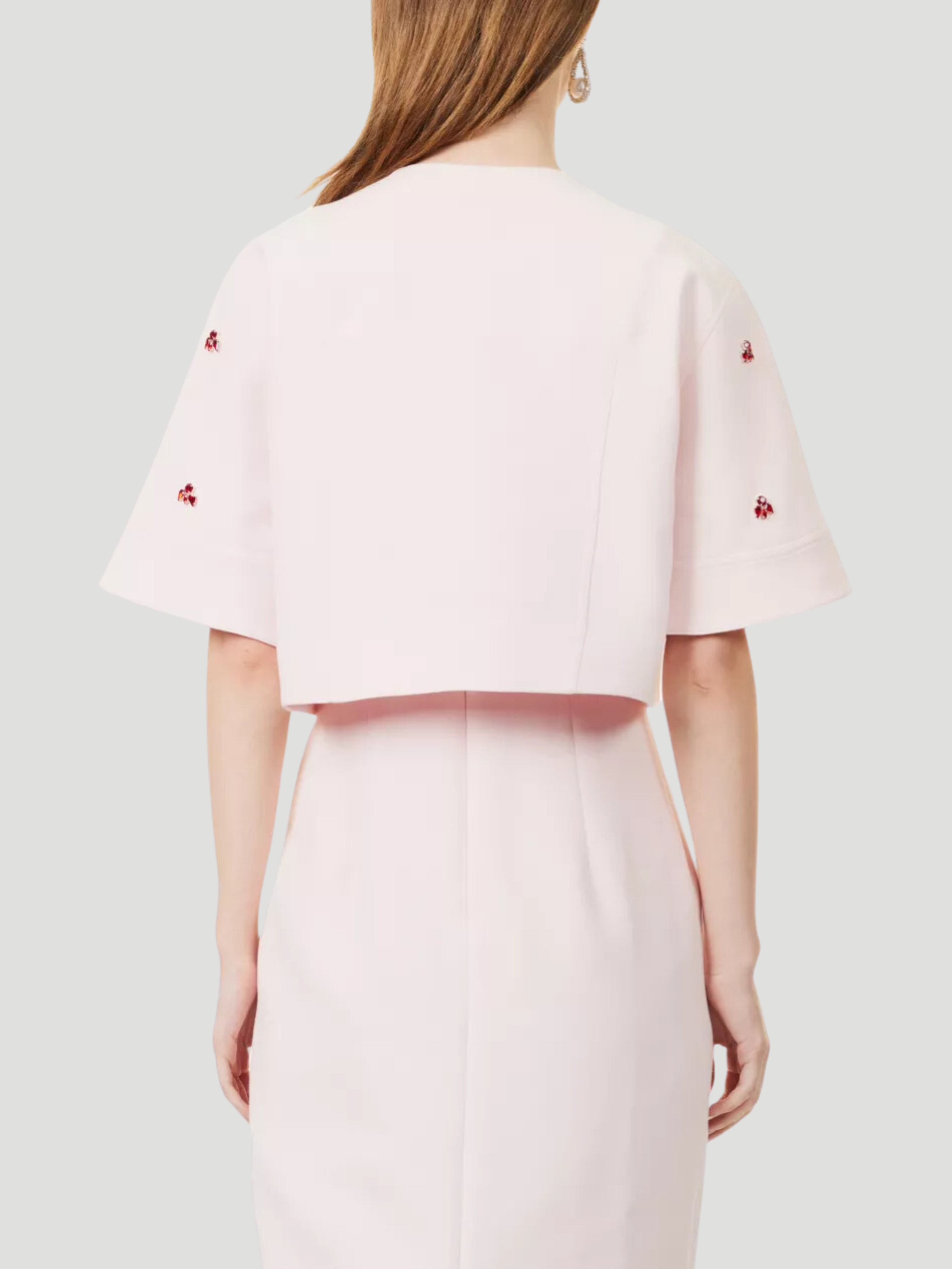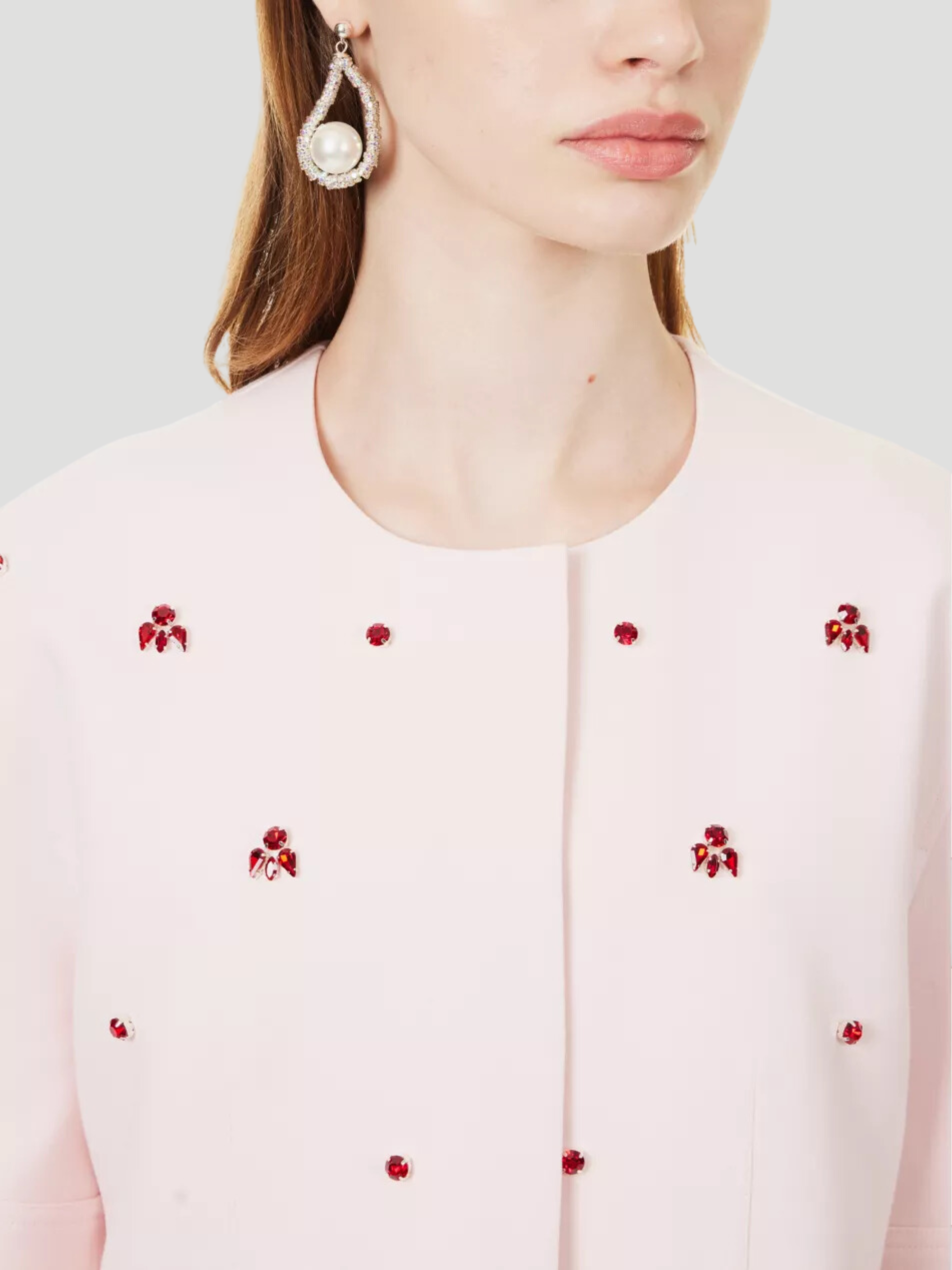 Upgrade your wardrobe with the River Gem-Embellished Jacket. Made from Huishan Zhang's eco-friendly recycled polyester-blend, this jacket boasts concealed popper fastenings, a round neckline, and short sleeves for a boxy fit. The elegant embellishments at the front add a touch of glamour to this lined, cropped jacket. Sustainable fashion never looked this stylish.