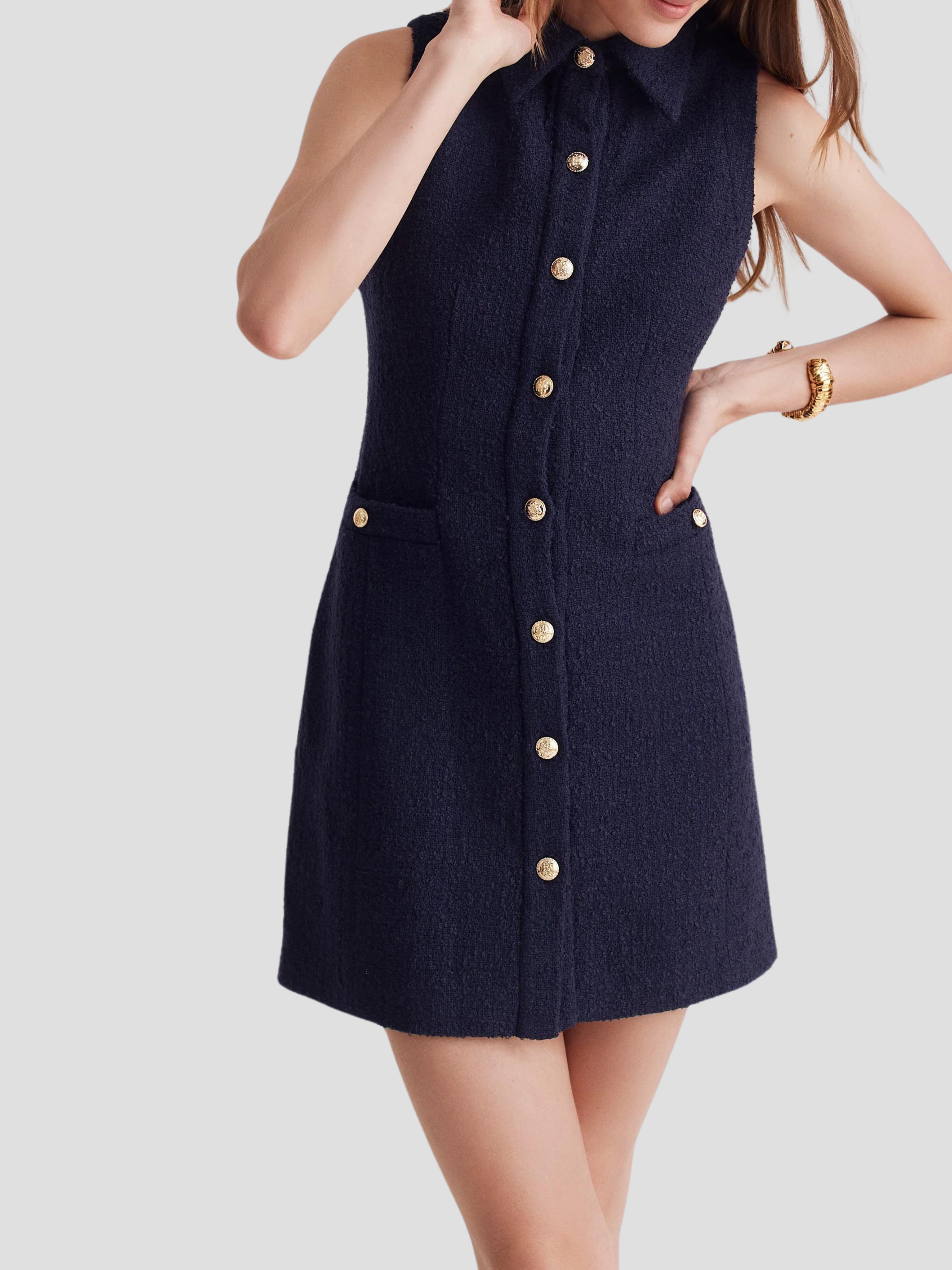 The Sophia tailored mini dress in bloucle is the perfect addition to your day to night wardrobe. Effortlessly chic, comfortable and stylish.