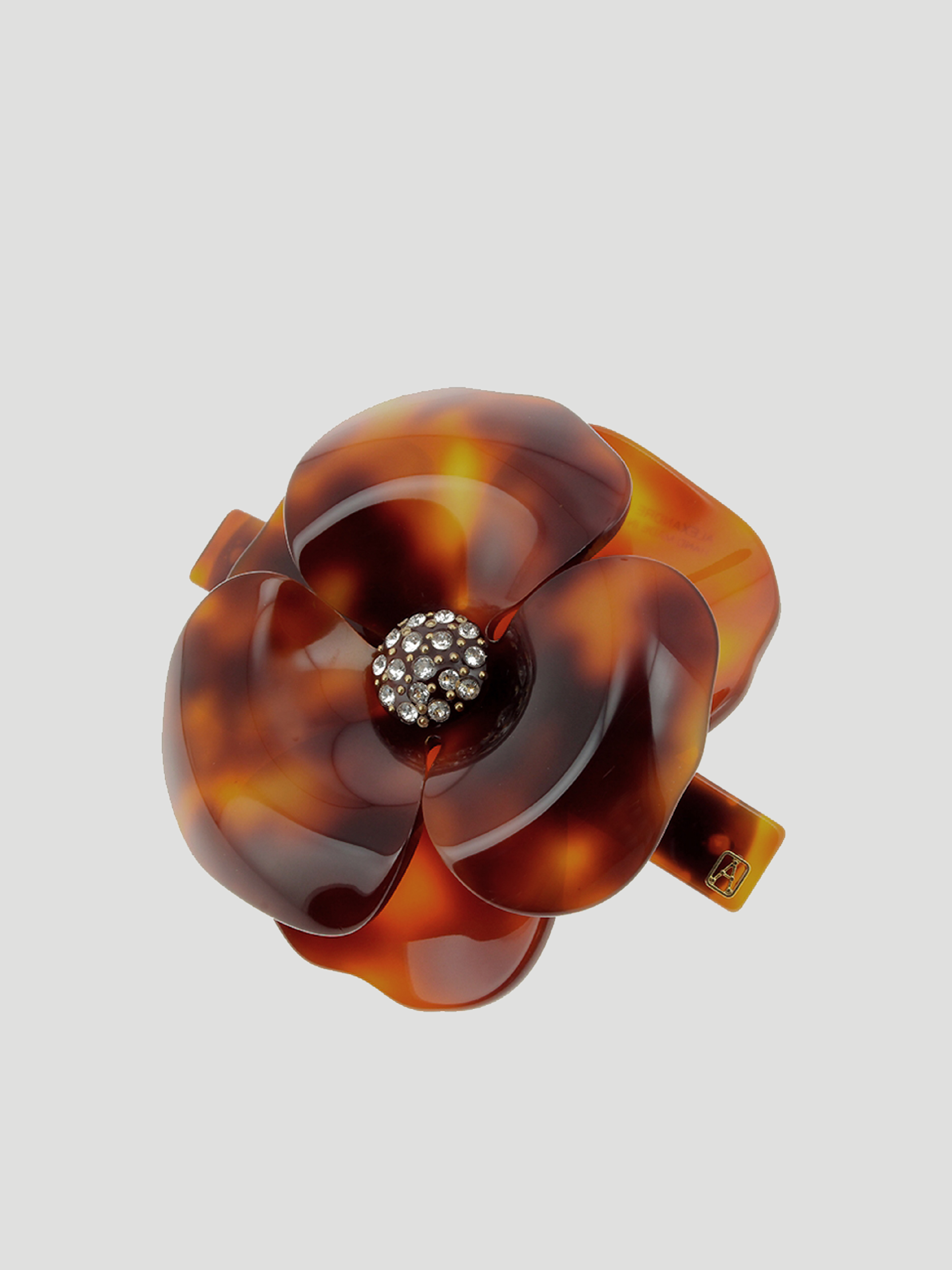 Camélia Flower Crystal-Embellished Tortoise Barrette