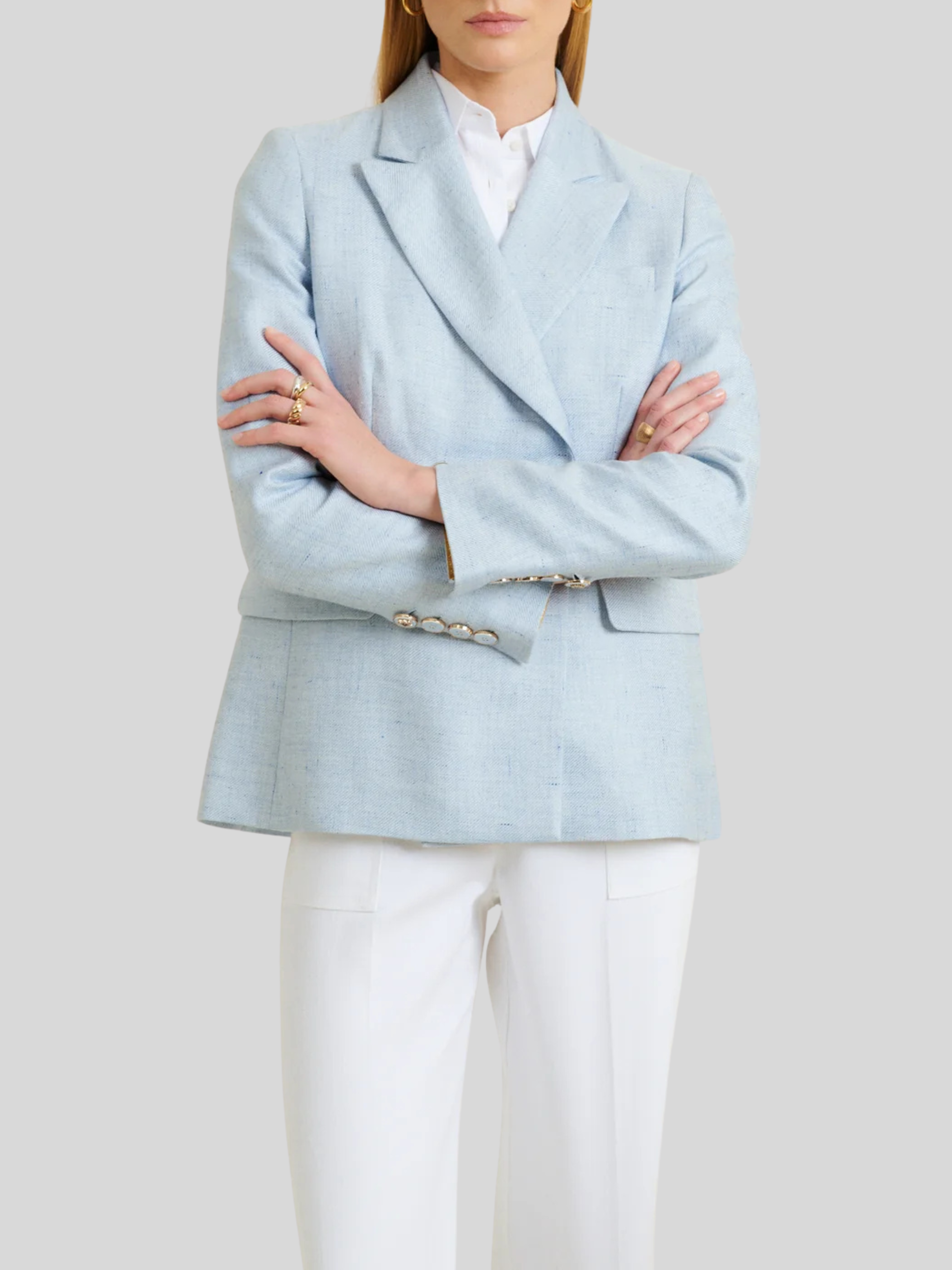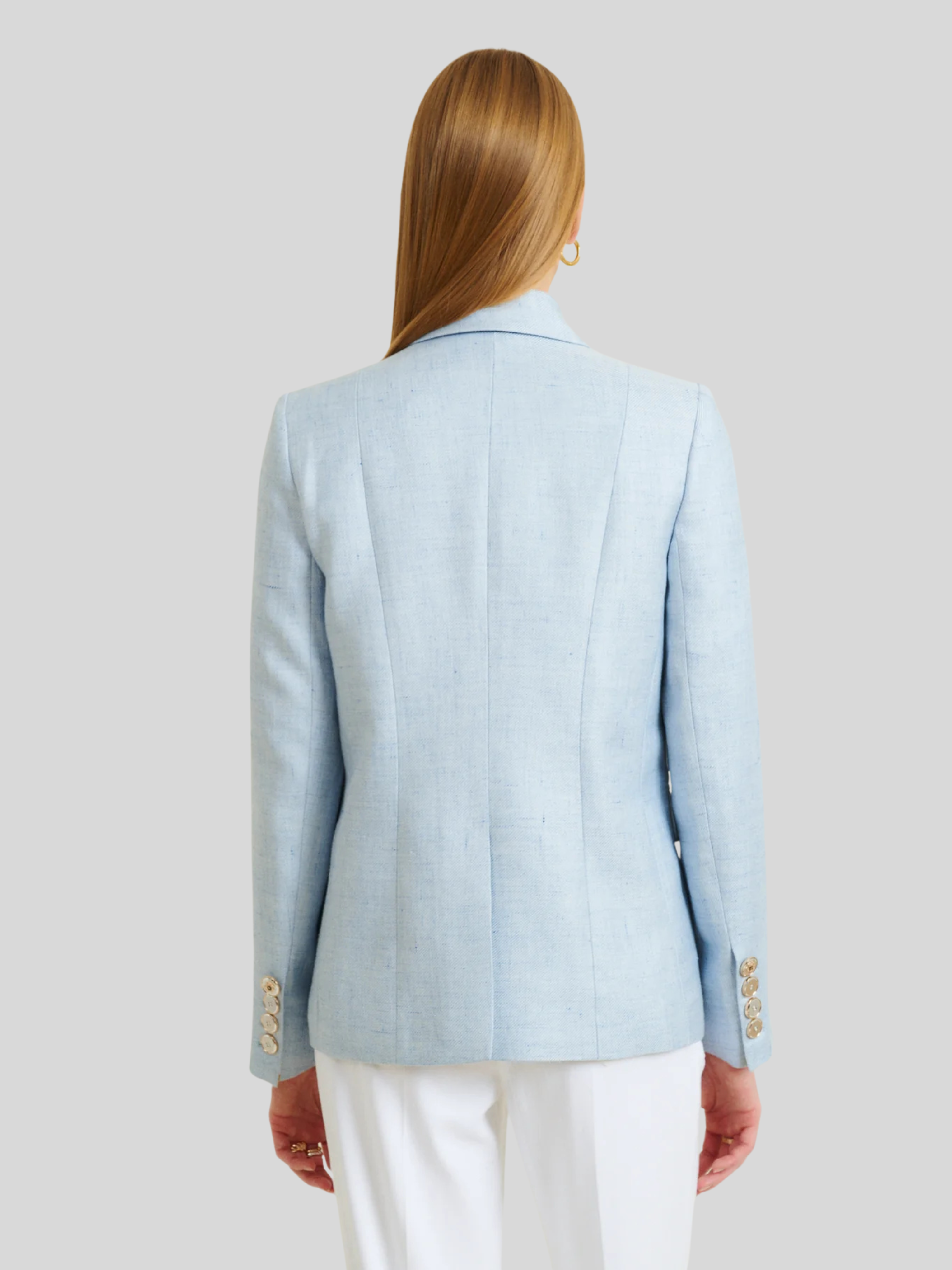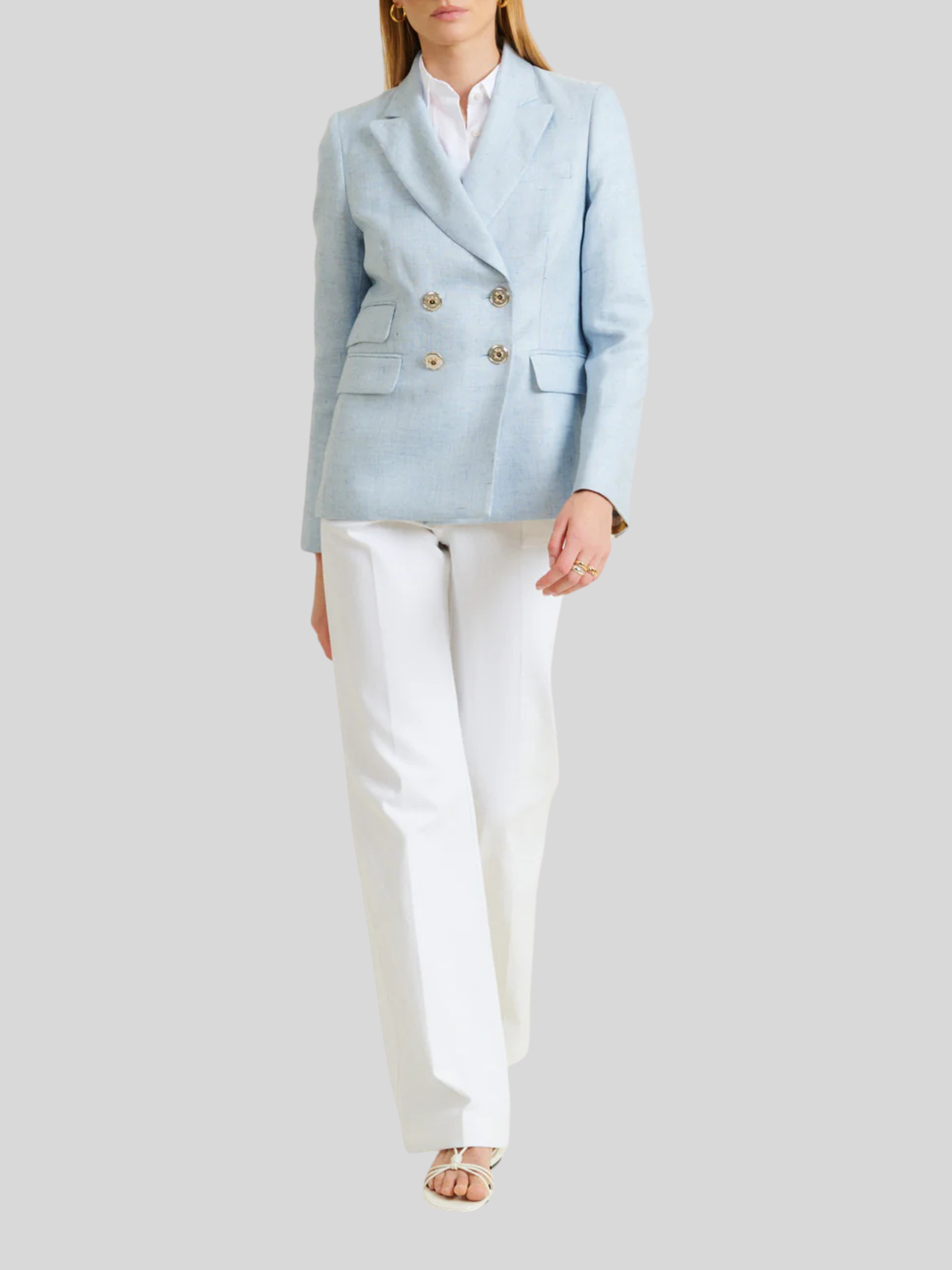Tailored elegance meets effortless sophistication in the Valenciane Blazer. Crafted in a serene ciel blue, this structured piece features clean lines and a refined silhouette that transitions seamlessly from office to evening. The precise tailoring ensures a polished fit, while the timeless color makes it an essential layer for any wardrobe. Perfect for elevating everyday looks or anchoring a complete ensemble.
