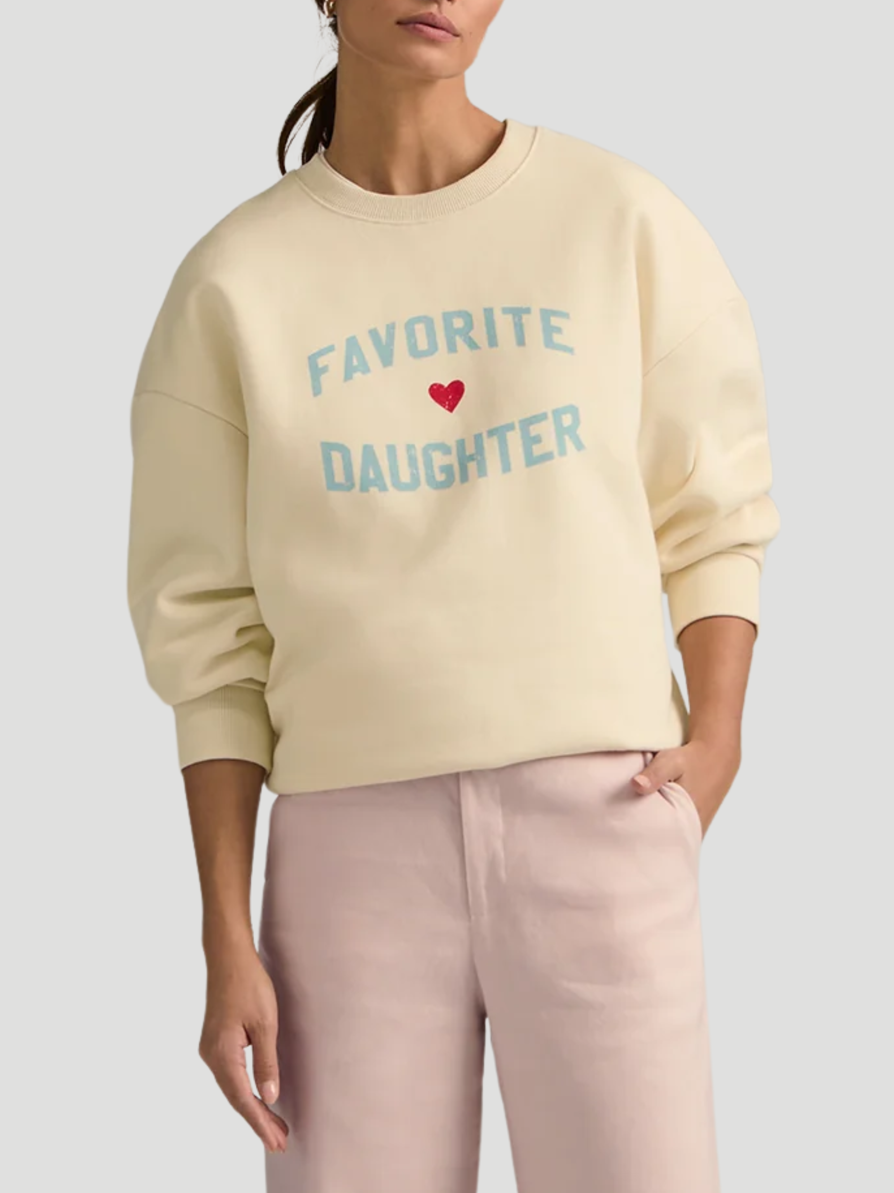 Introducing our Favorite Daughter Heart Logo Sweatshirt in Baby Blue! Made from a comfortable cotton blend, this oversized sweatshirt will shrink to the perfect fit. The drop shoulder and relaxed design make it the perfect cozy weekend staple. Show off our original heart logo design and stay comfortable all day long.