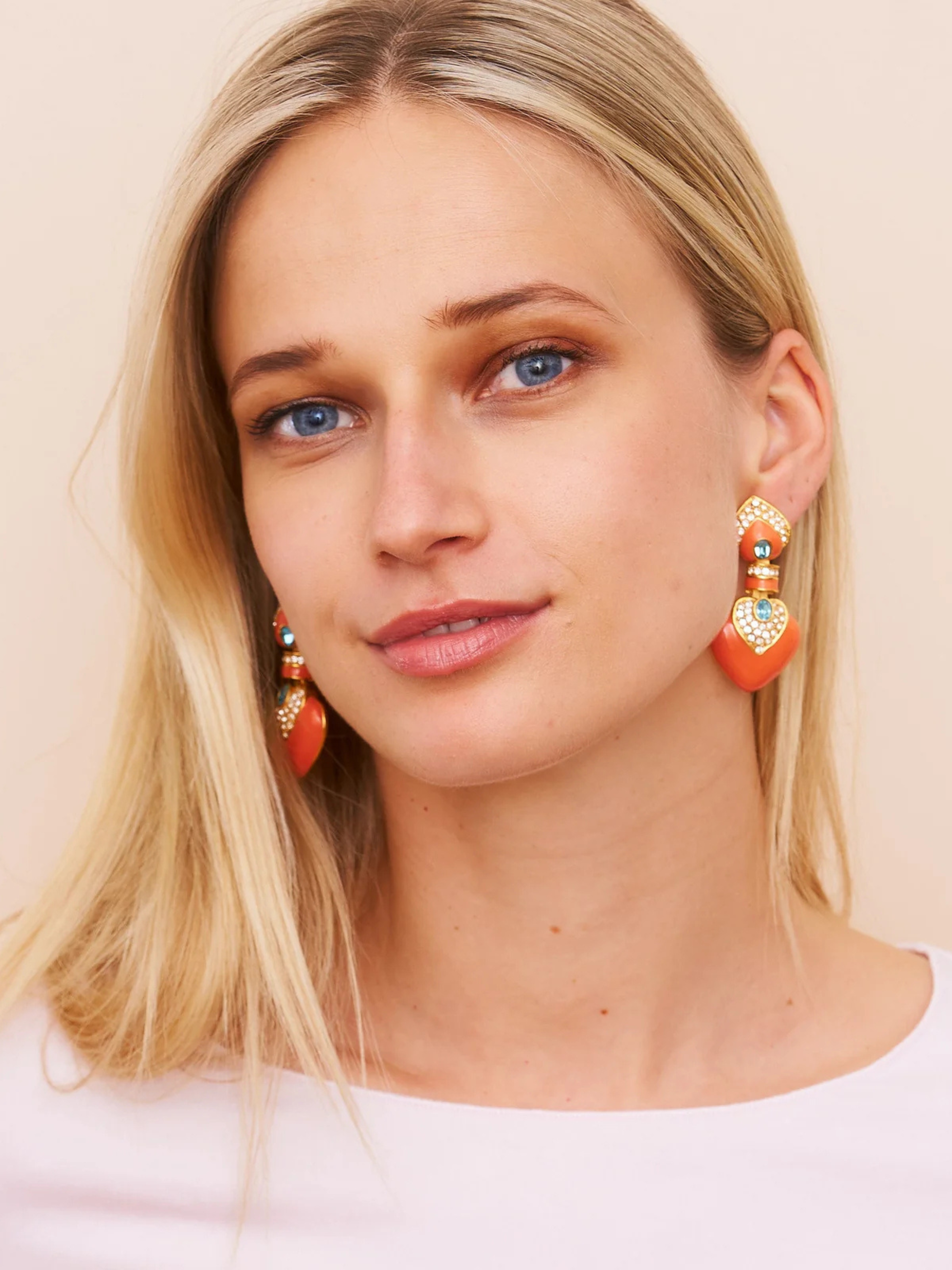 Featuring a delicate heart-shaped design, adorned with vibrant coral and aquamarine accents. The coral gemstone adds warmth and passion, while the aquamarine stones evoke the tranquil beauty of the ocean, creating a harmonious blend of colors that symbolize love and serenity.