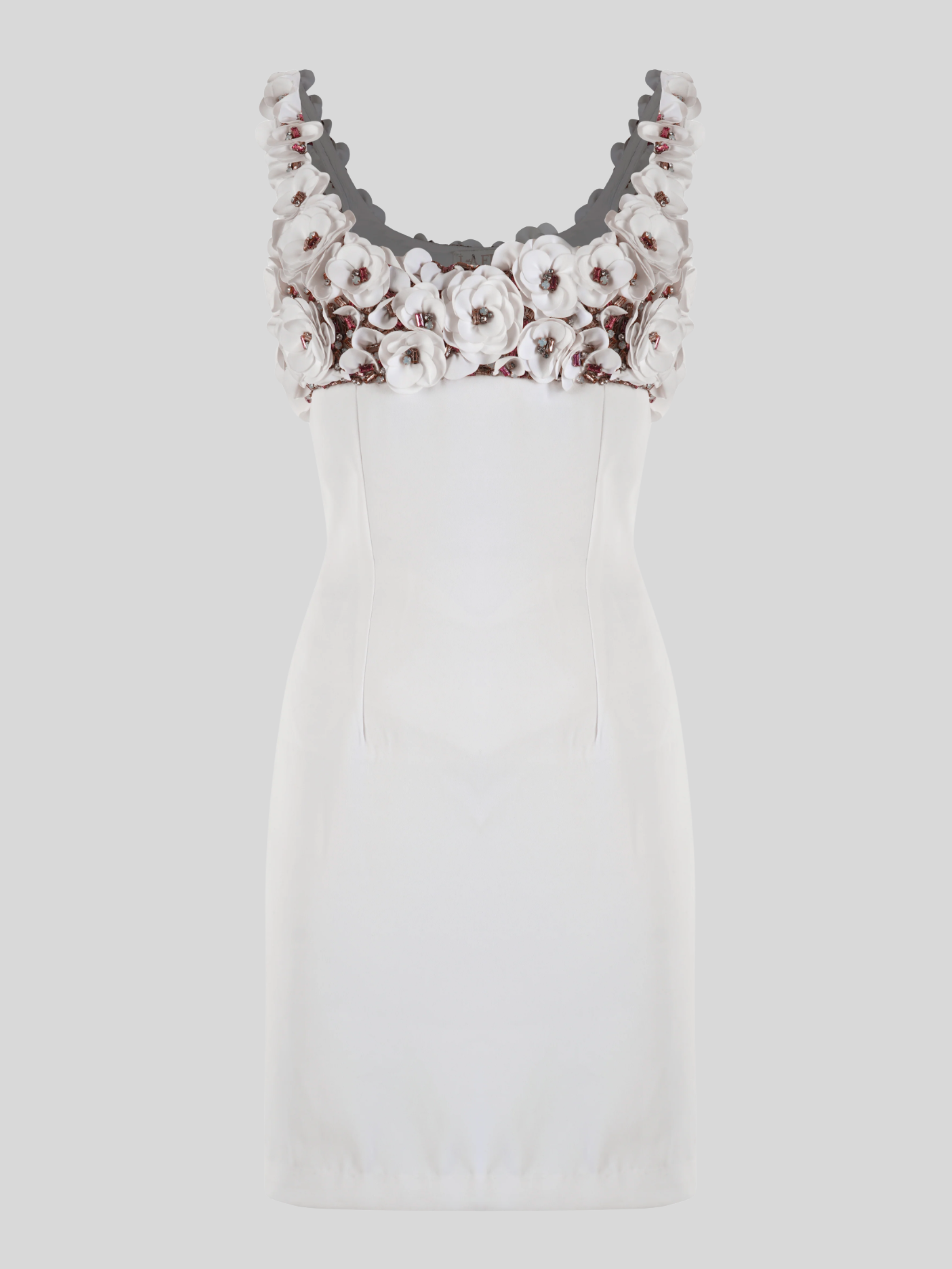 The Frosted Chloe Mini Dress is a stunning piece adorned with intricate 3D suiting flowers and sparkling crystals, creating a dazzling effect. Its playful silhouette and exquisite detailing make it a perfect choice for parties and special occasions, ensuring you shine bright wherever you go.