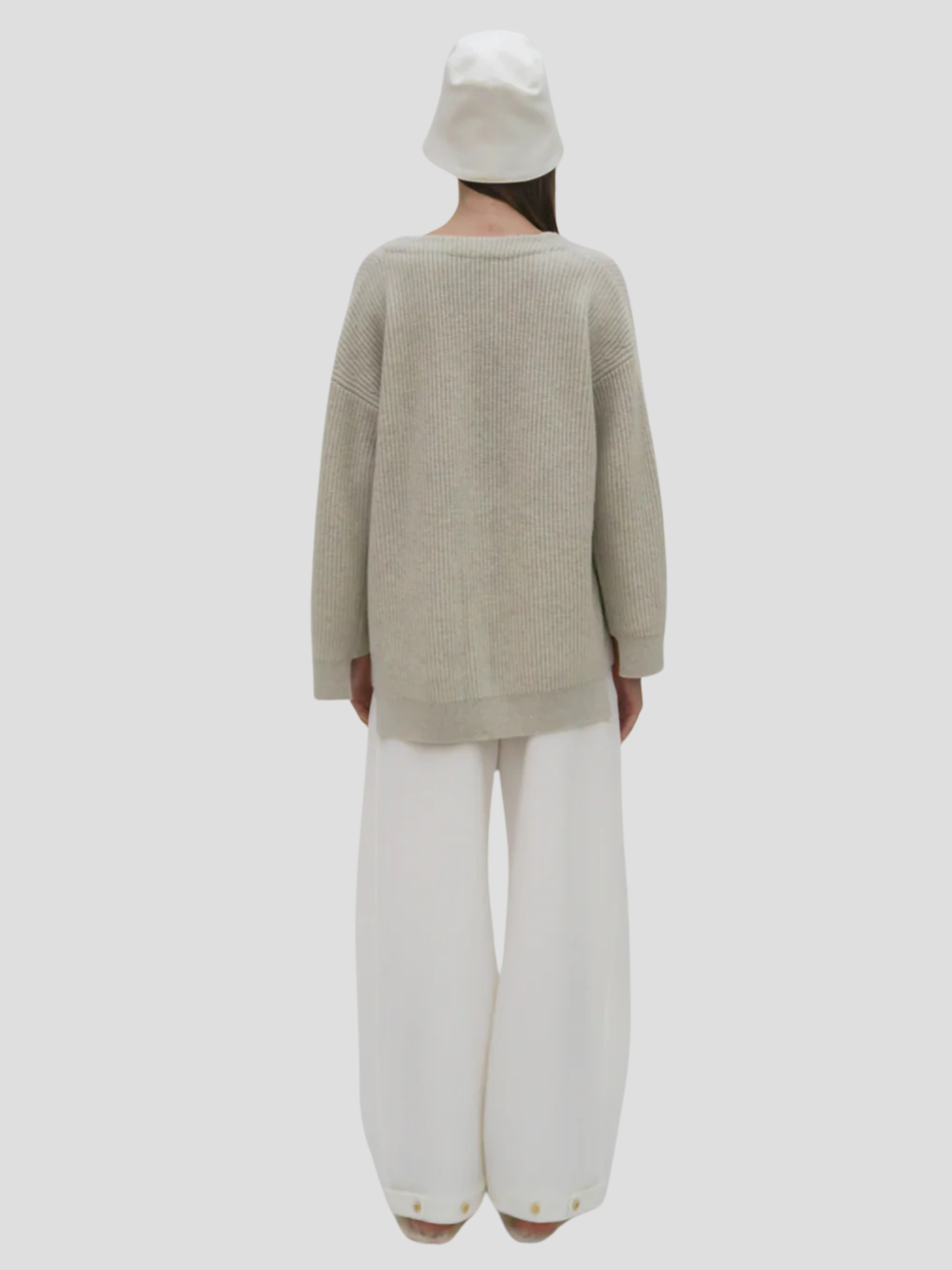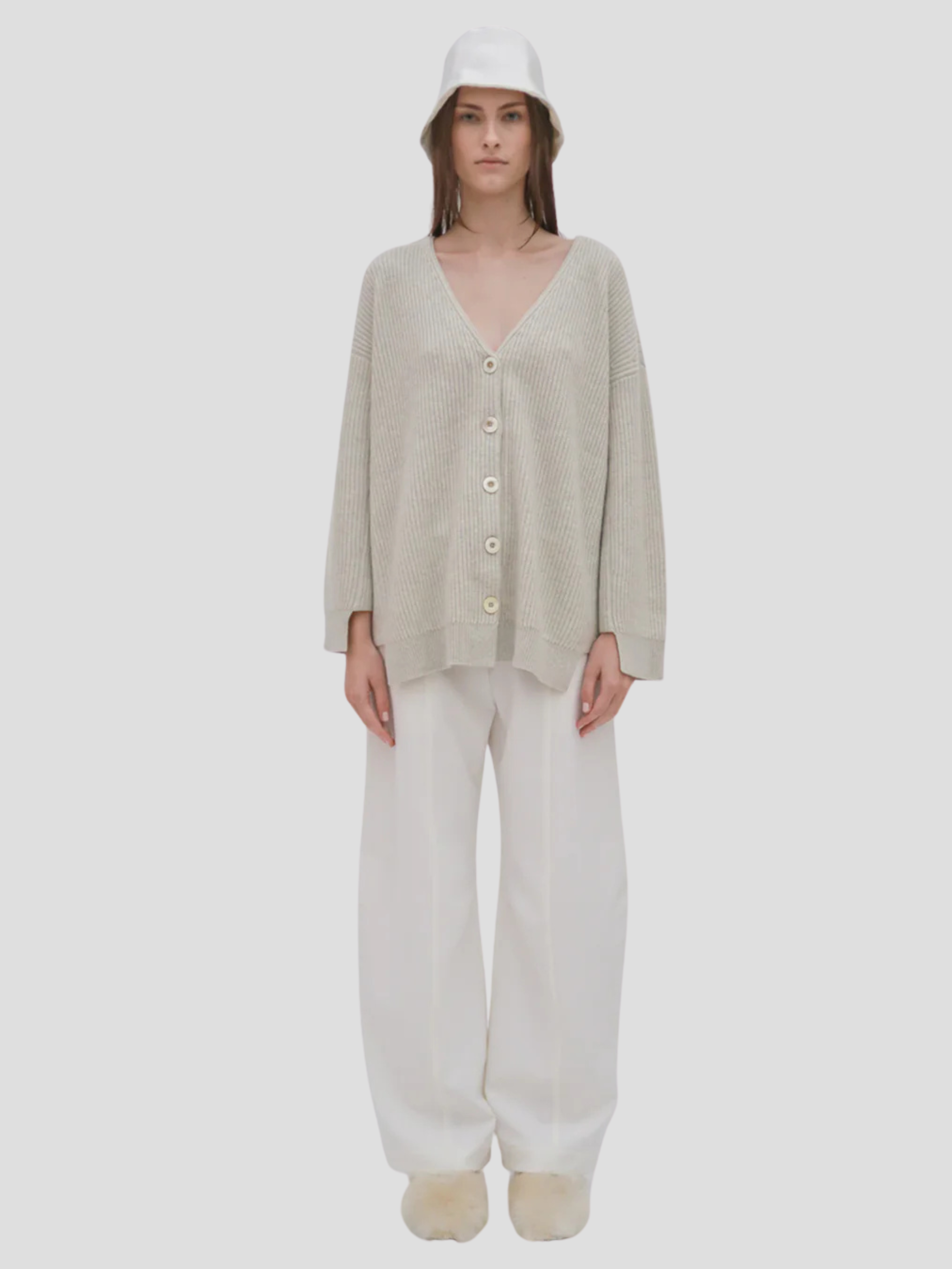 Indulge in luxury with the Rib Panel Cardigan in Fog. Expertly crafted from high-quality materials, this cardigan features a rib panel design that adds texture and dimension to your outfit. Perfect for cool weather, it will keep you warm and stylish. Elevate your wardrobe with this sophisticated piece.