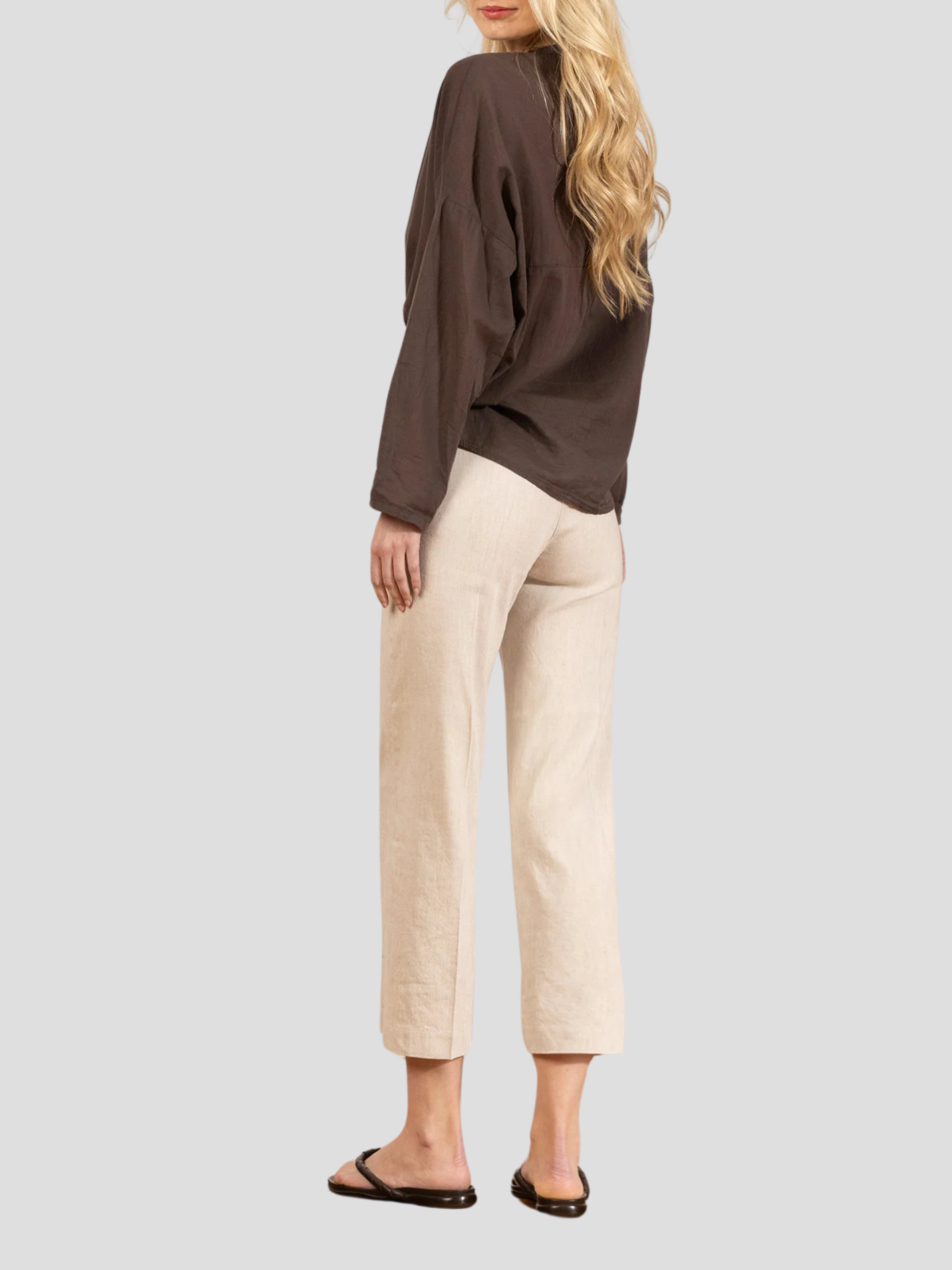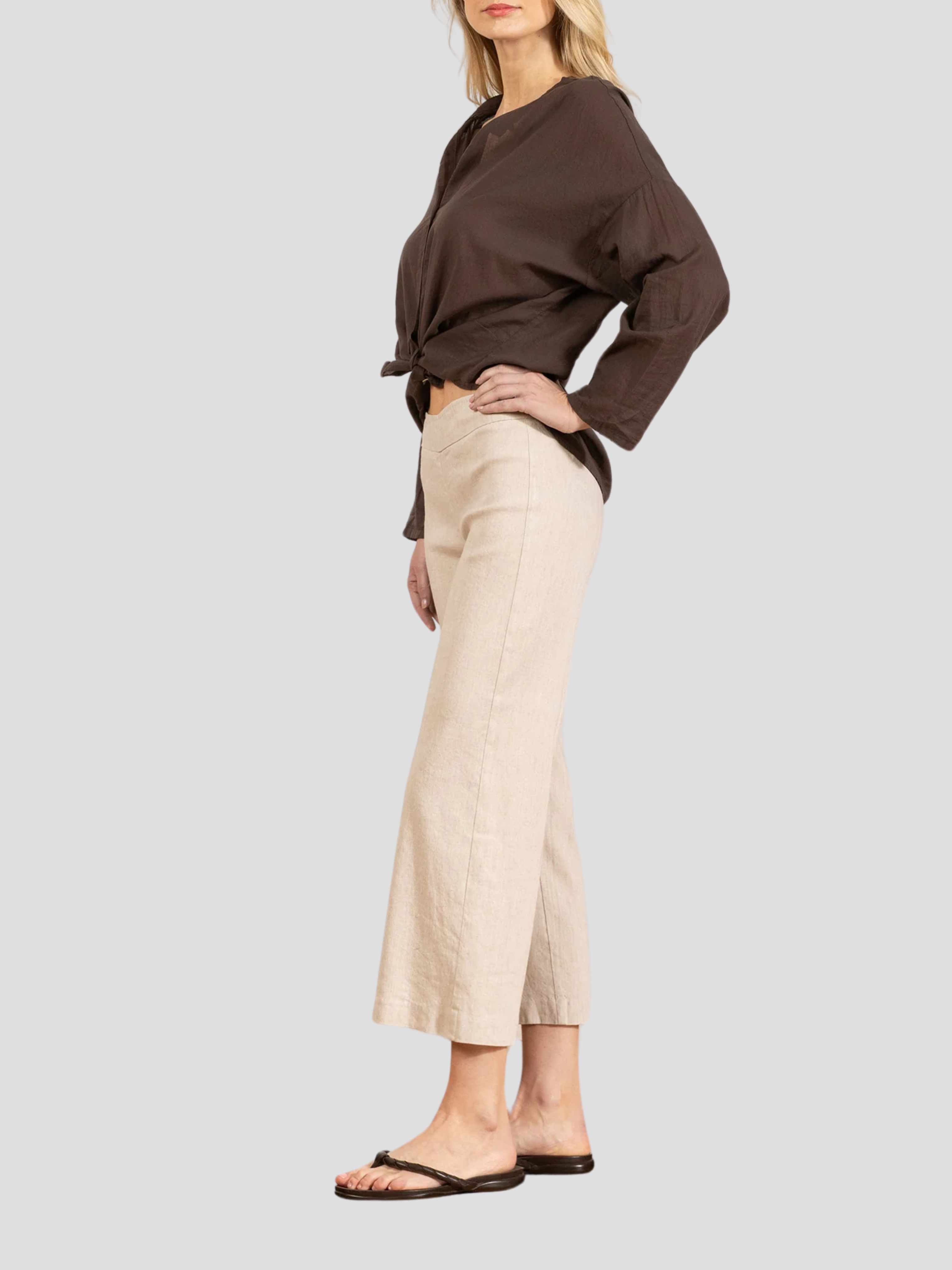 Alex Crop Wide Leg Pant in Oatmeal Linen