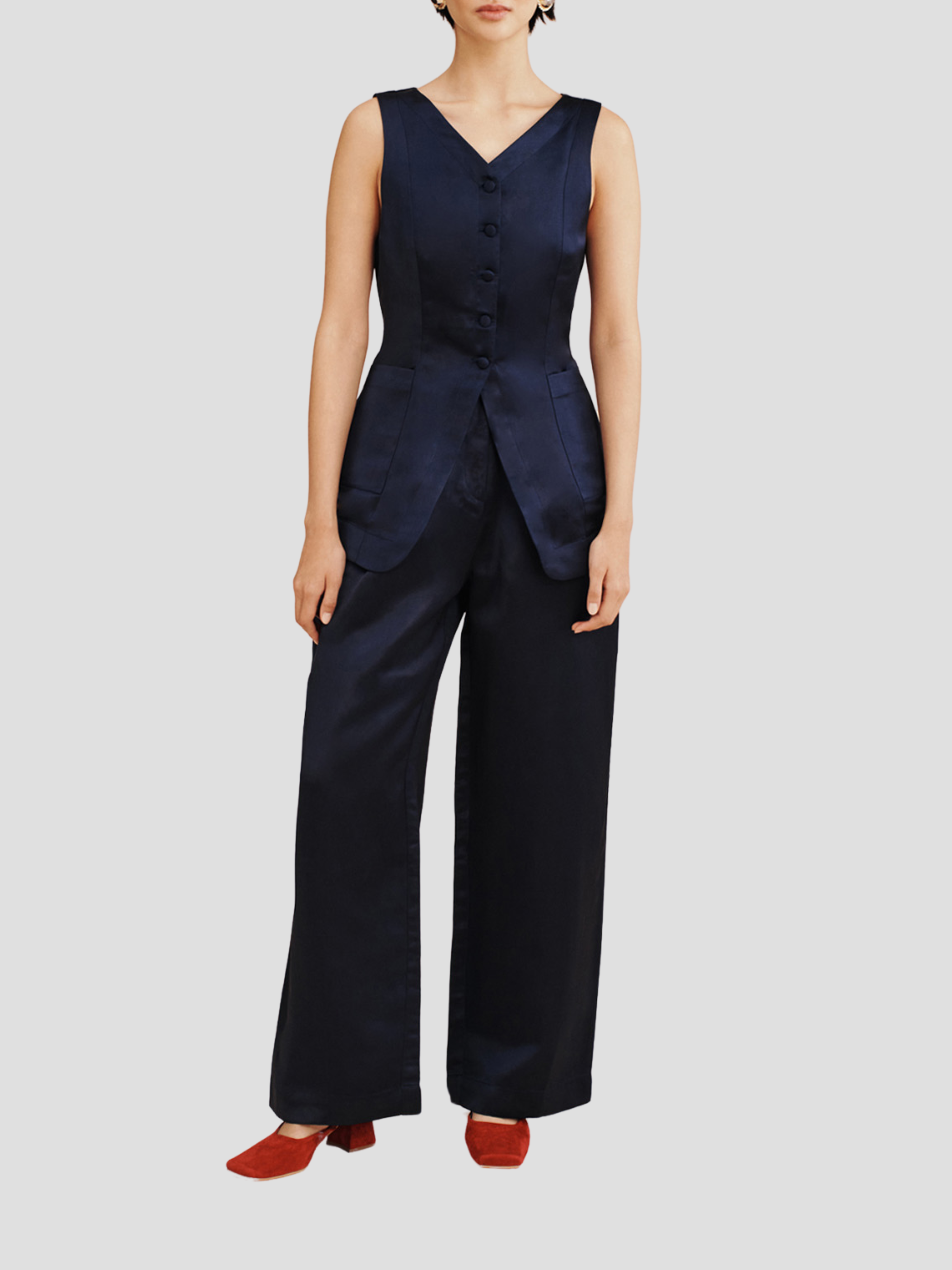 Introducing the Lorenzo Satin Tailored Vest, a versatile and sophisticated addition to your wardrobe. Made from high-quality satin, this vest offers a sleek and tailored fit that effortlessly elevates any outfit. With its timeless design and superior fabric, you'll look and feel confident and stylish in any setting.