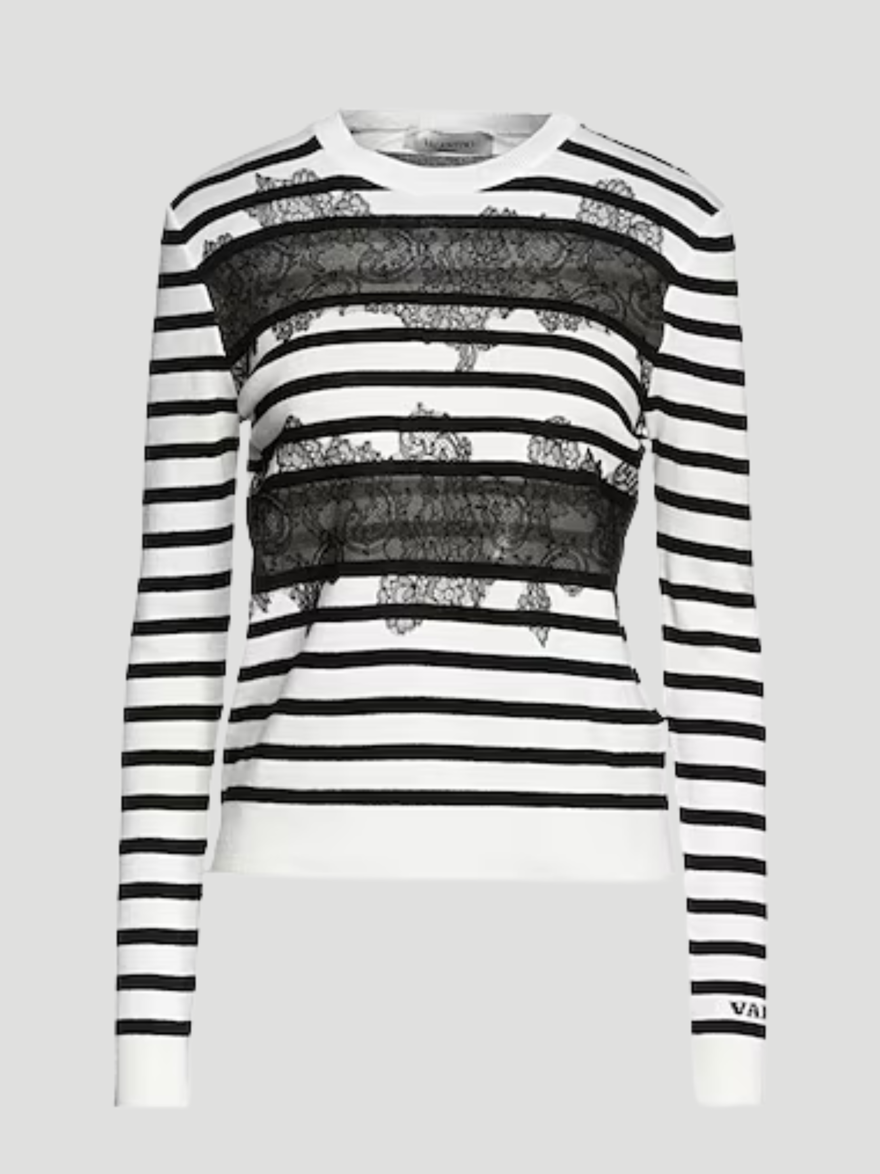Valentino Lace-Inset Striped Silk Knit Sweater