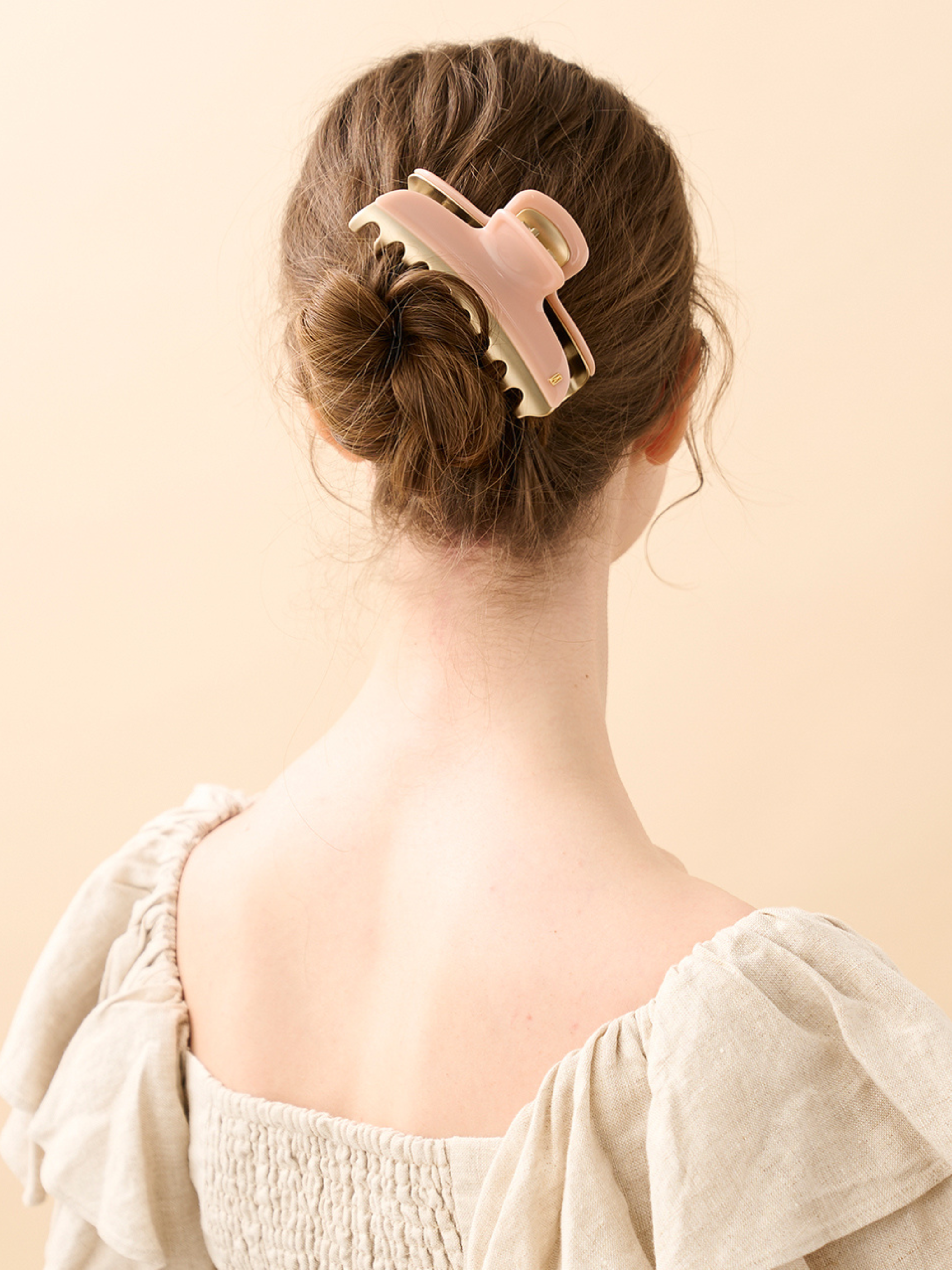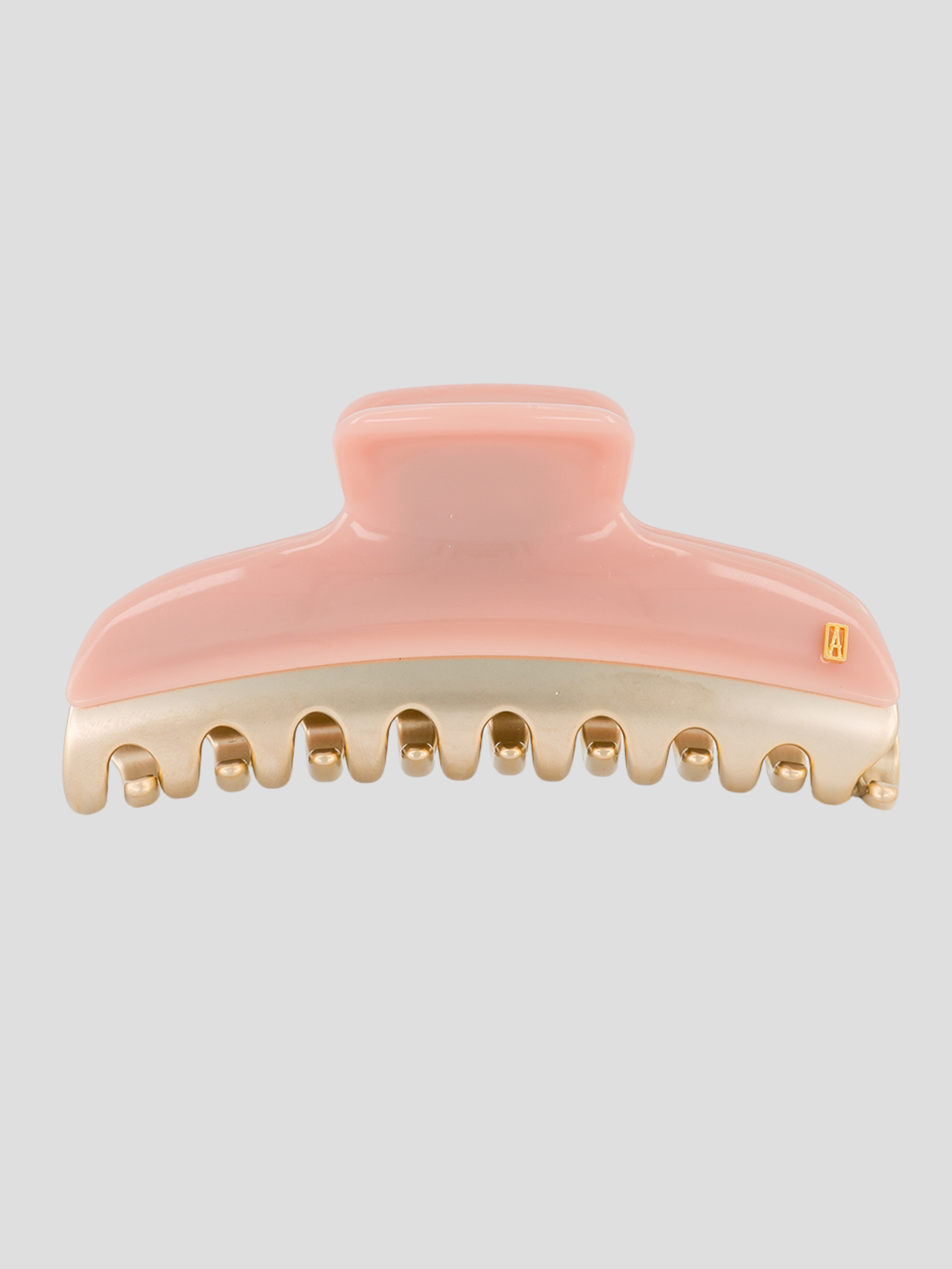 Add a touch of sophistication to your look with our Bicolor Hair Clip in Opal and Salmon. The opalescent and salmon hues blend seamlessly together, creating a luxurious accessory that will elevate any hairstyle. Perfect for adding a touch of elegance to any outfit.