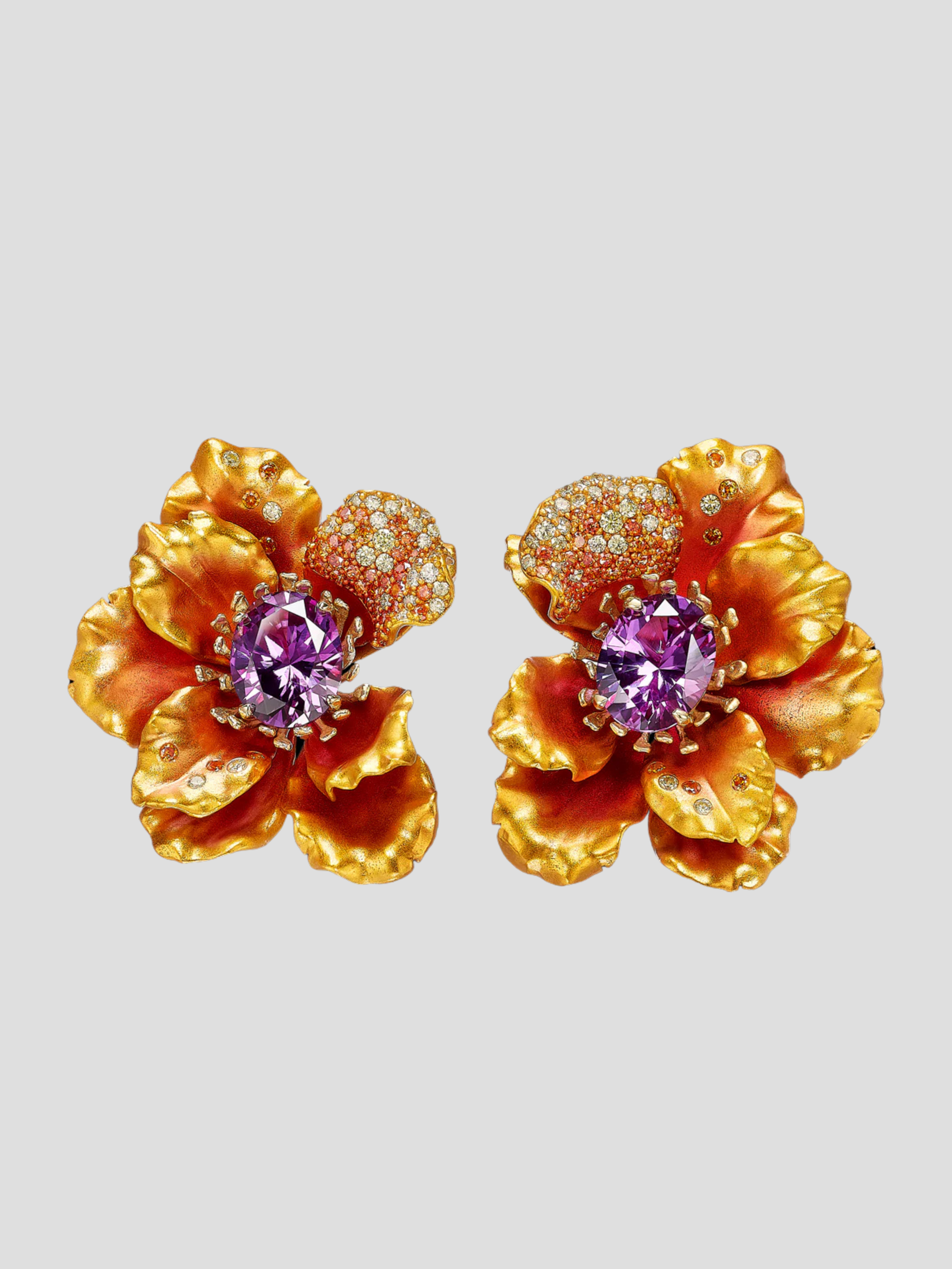 Expertly crafted with the fiery beauty of molten magma, these Magma Poppy Earrings are a unique and striking accessory. Handmade with care, these earrings showcase the natural allure of the earth's raw power.