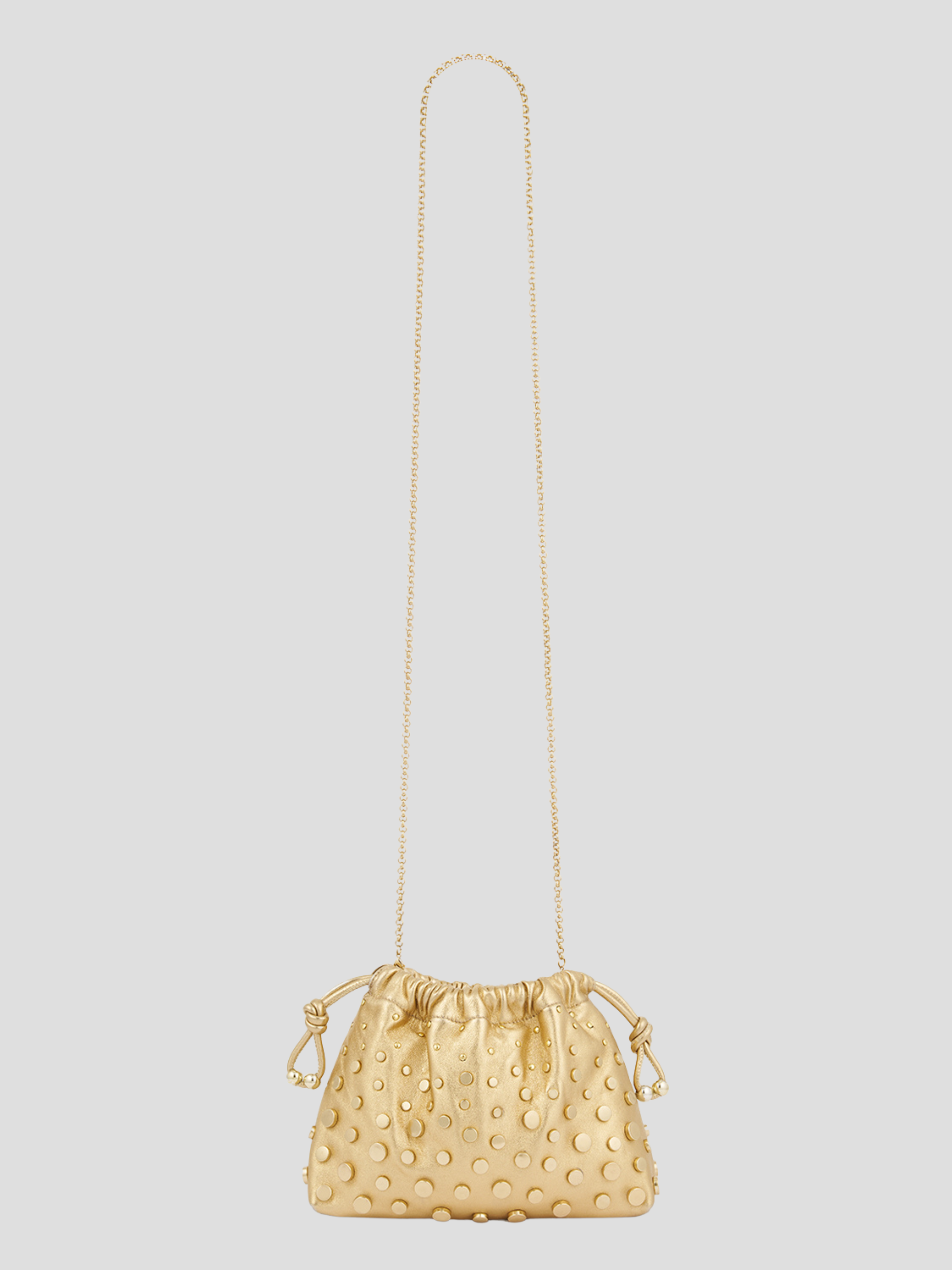 Drawstring Pouch Gold Studs in Light Gold Metallic Nappa