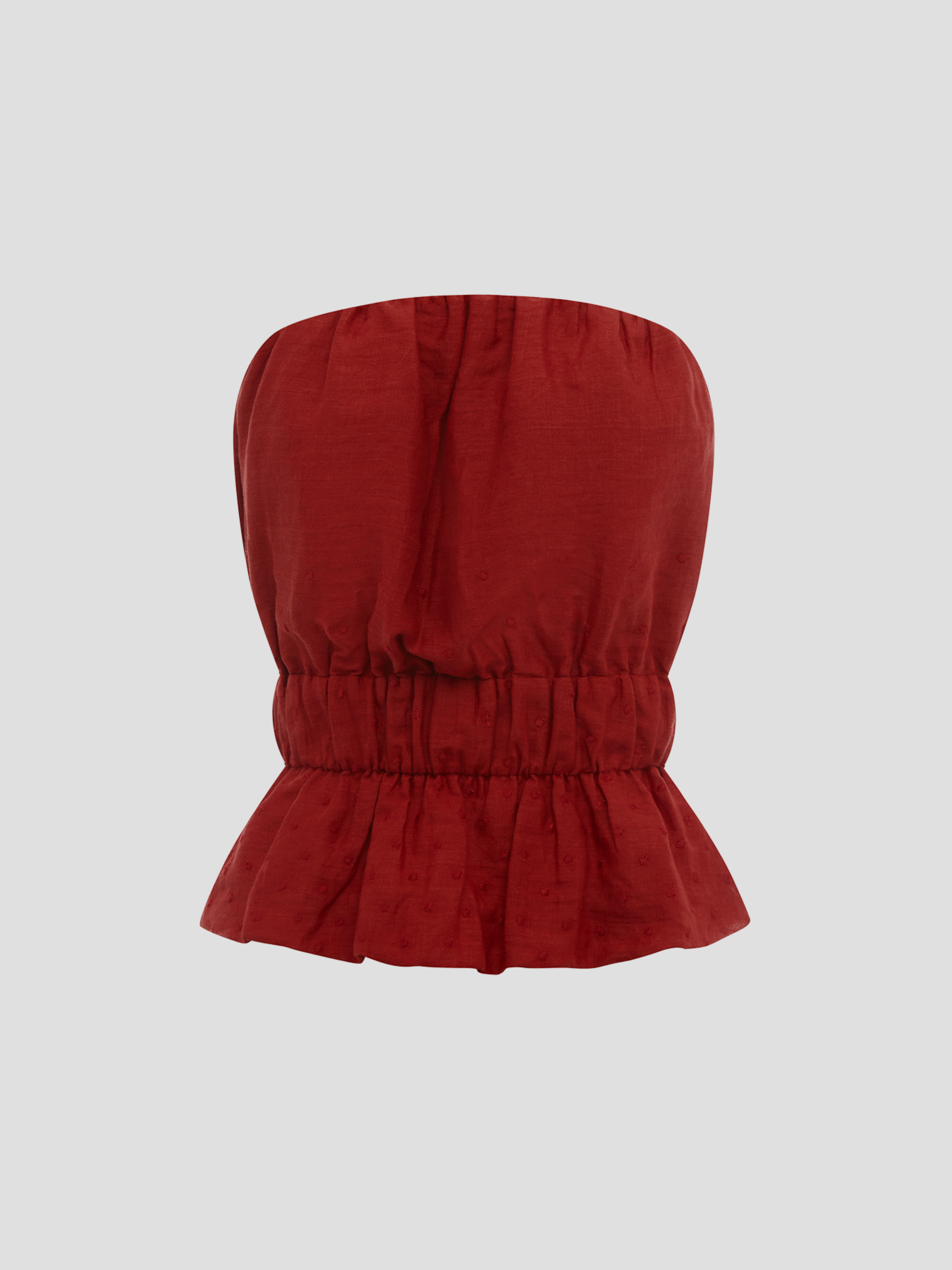 Featuring a ruched strapless top design, the Aurelia top provides a flattering and secure fit. Made with high-quality materials, this top is both stylish and comfortable, perfect for any occasion. Upgrade your wardrobe with the Aurelia Ruched Strapless Top.