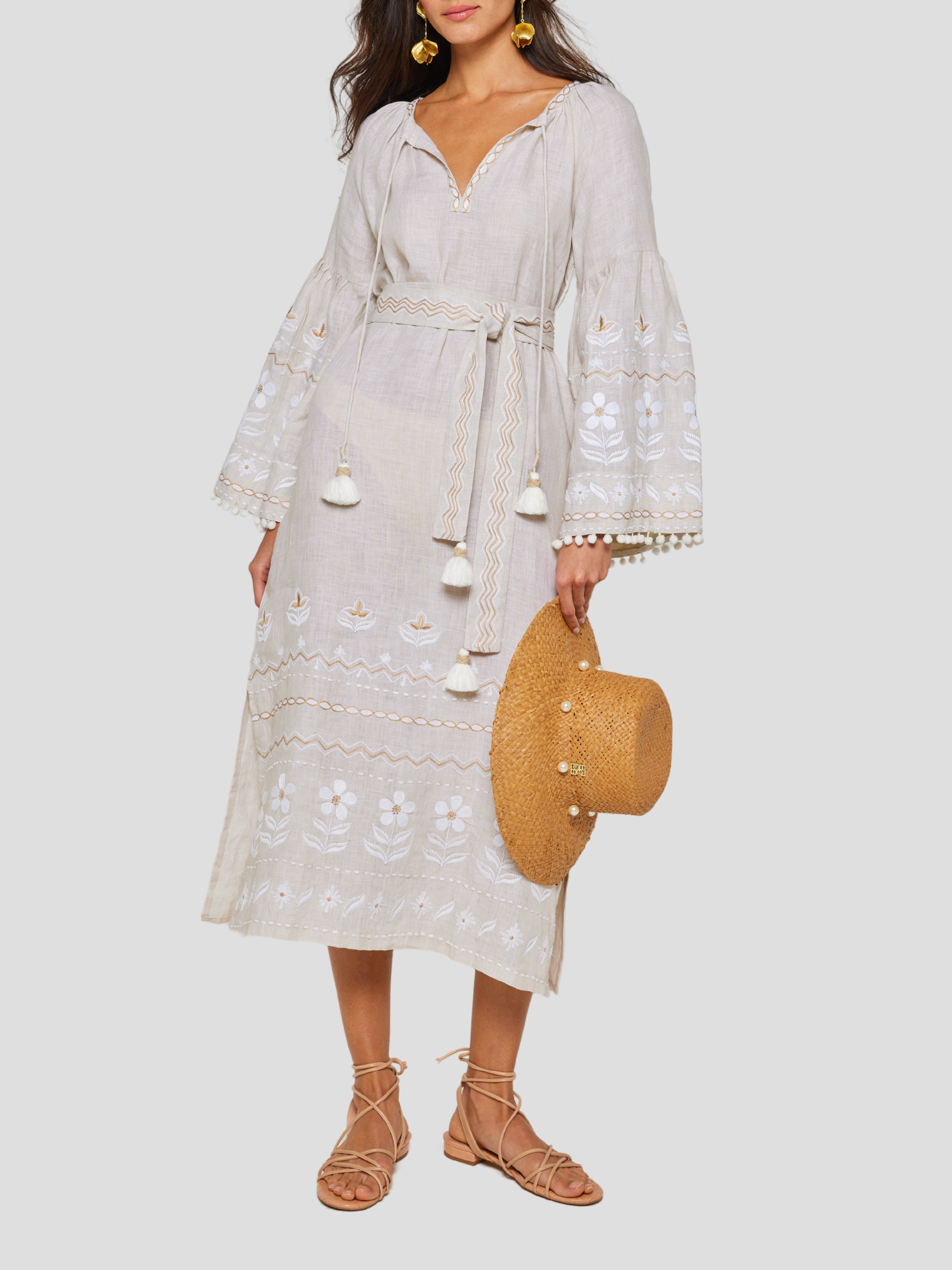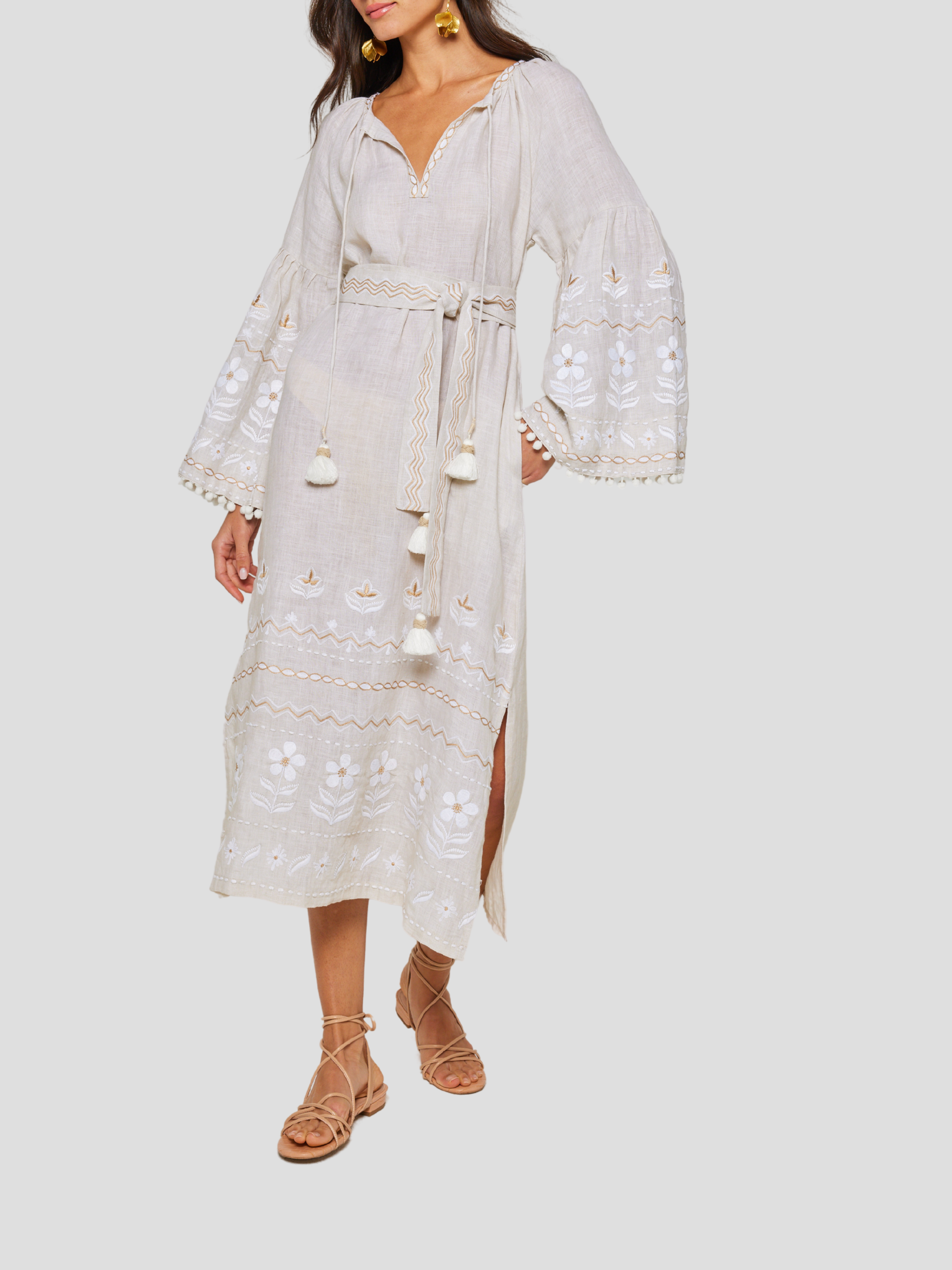 Indulge in the luxurious elegance of our Adele Linen Dress in Almond. Crafted from high-quality linen, this dress exudes sophistication and exclusivity. With its almond hue, it is the perfect addition to your wardrobe for any occasion. Elevate your style and enhance your natural beauty with this exquisite piece.