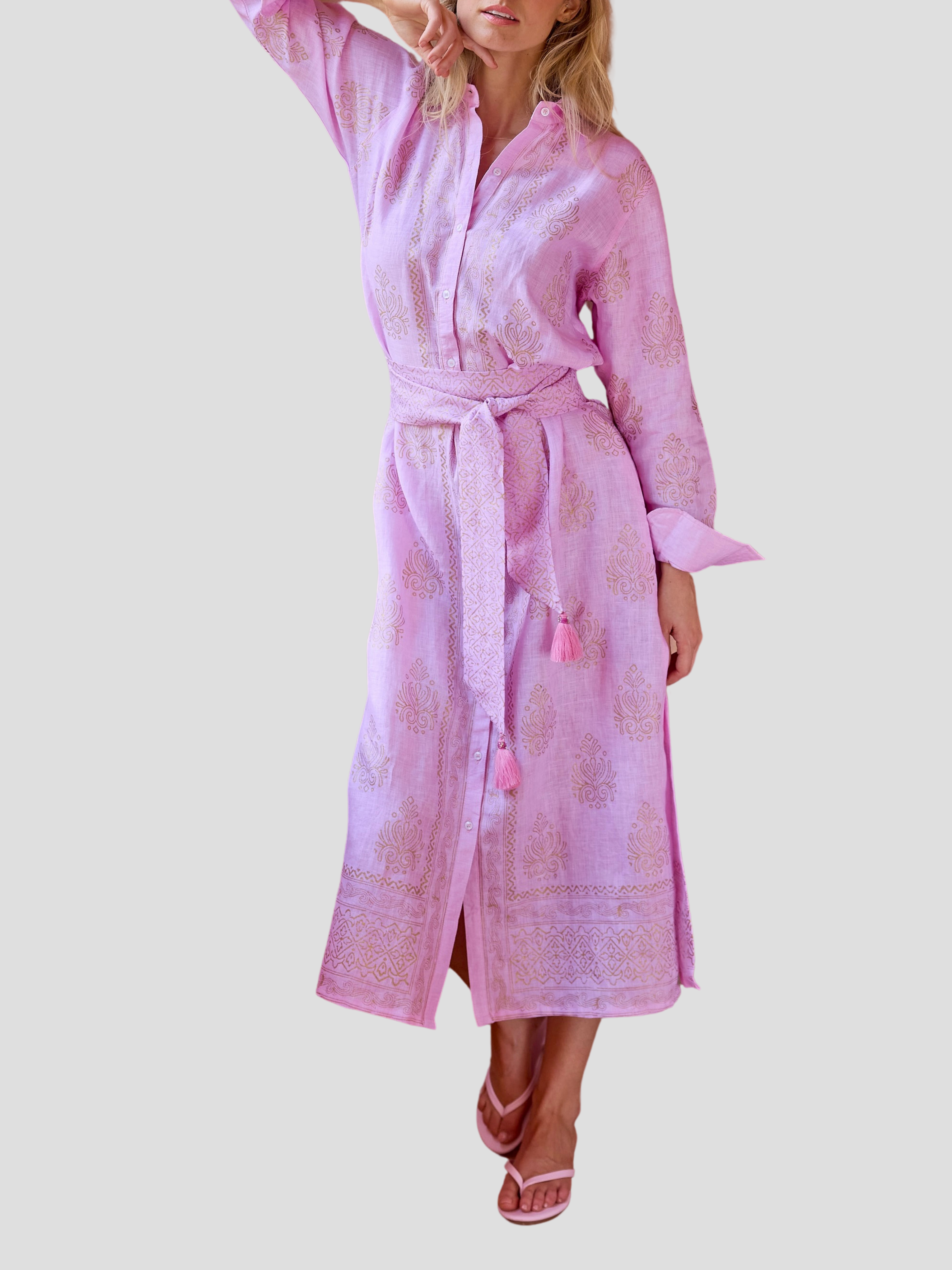 Indulge in luxury with our Rani 52" Shirtdress in Pink. Crafted with exquisite attention to detail, this stunning piece boasts a flattering silhouette and a bold, eye-catching color. Perfect for any occasion, this dress will elevate your style and make you stand out in a crowd. Be unique, be elegant, be Rani.