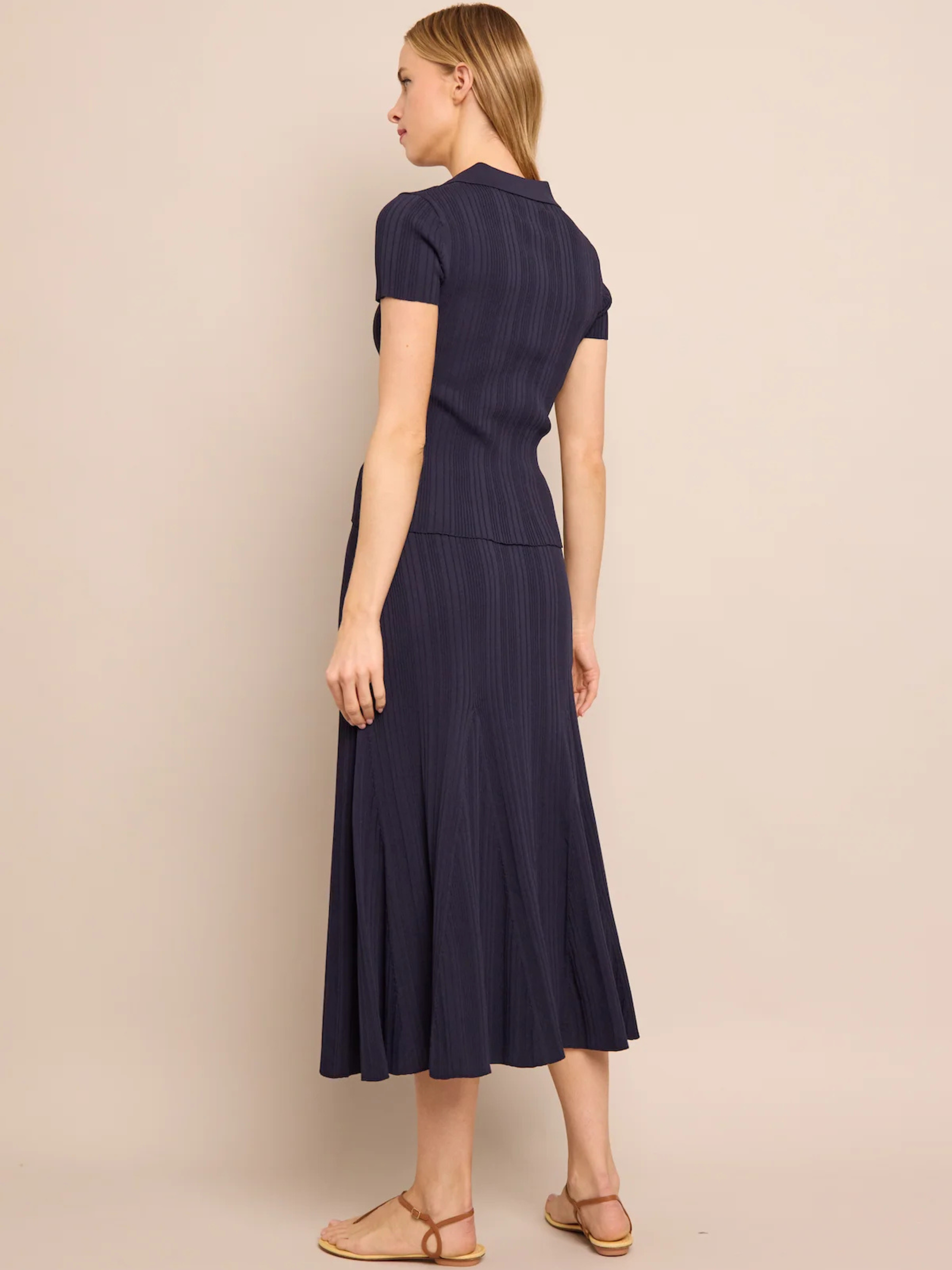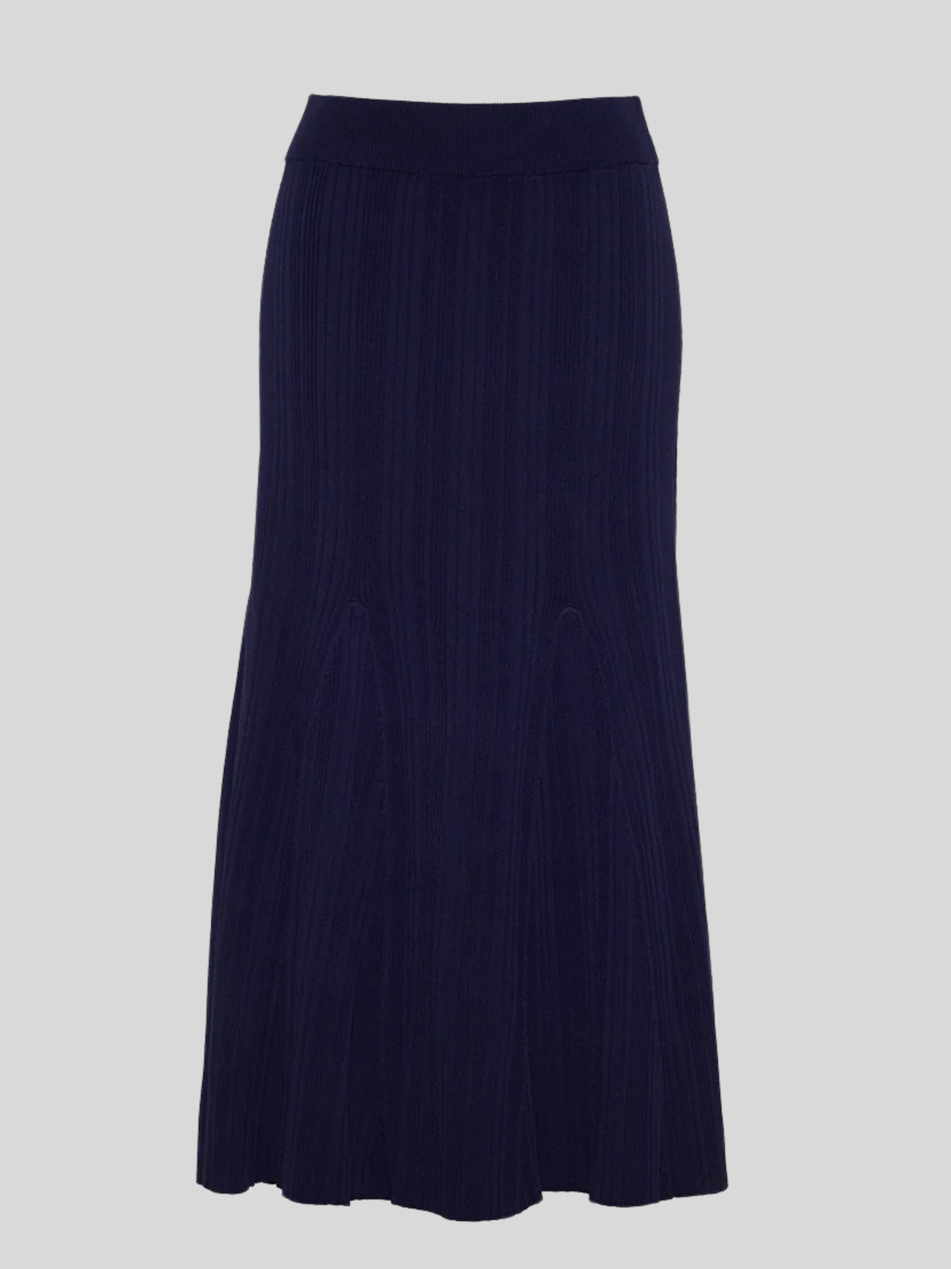• Elastic waist midi length variegated rib knit trumpet skirt