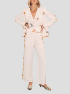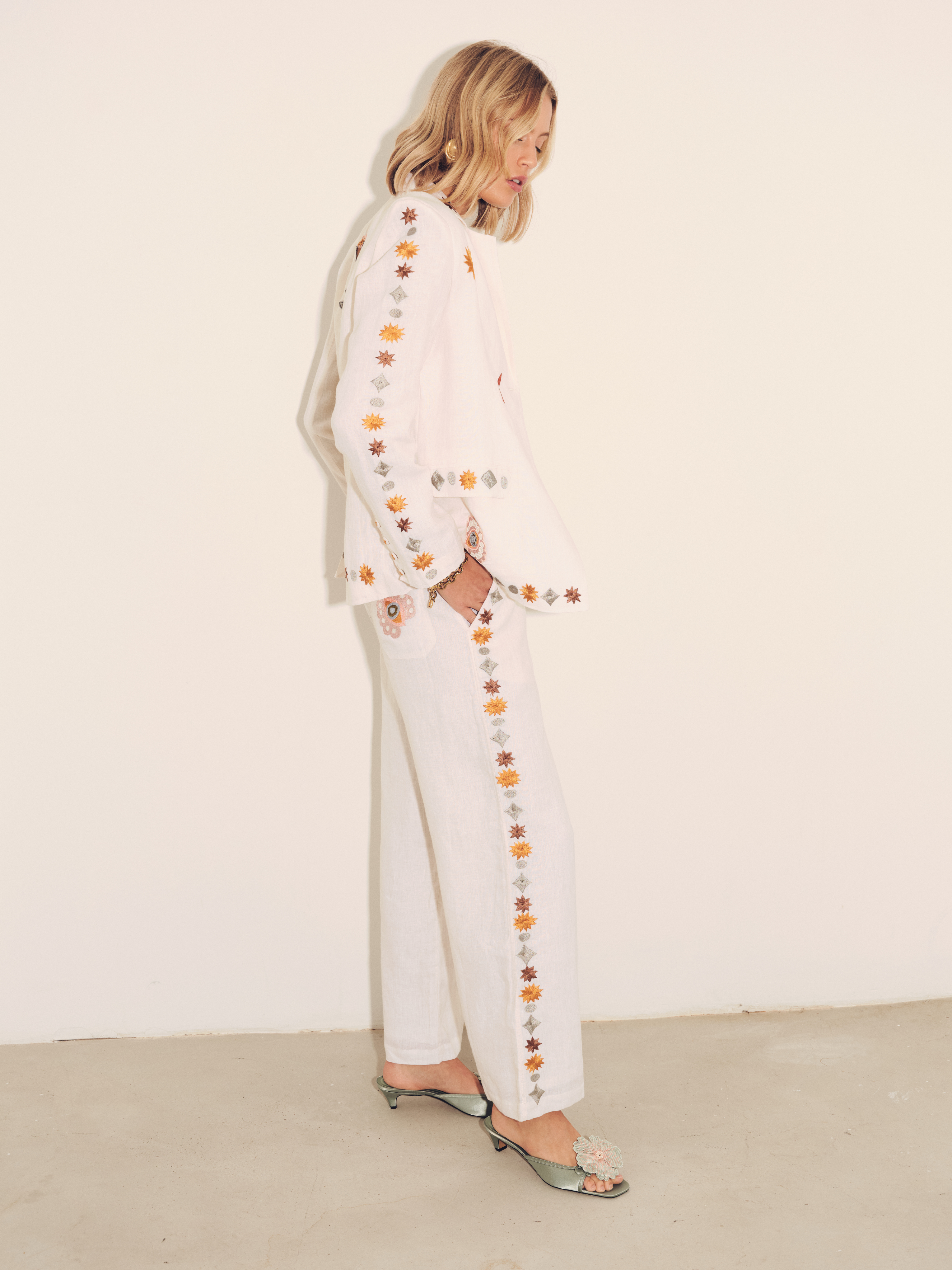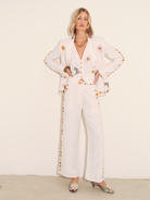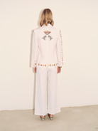 Vera Embroidered Linen Blazer in Ivory