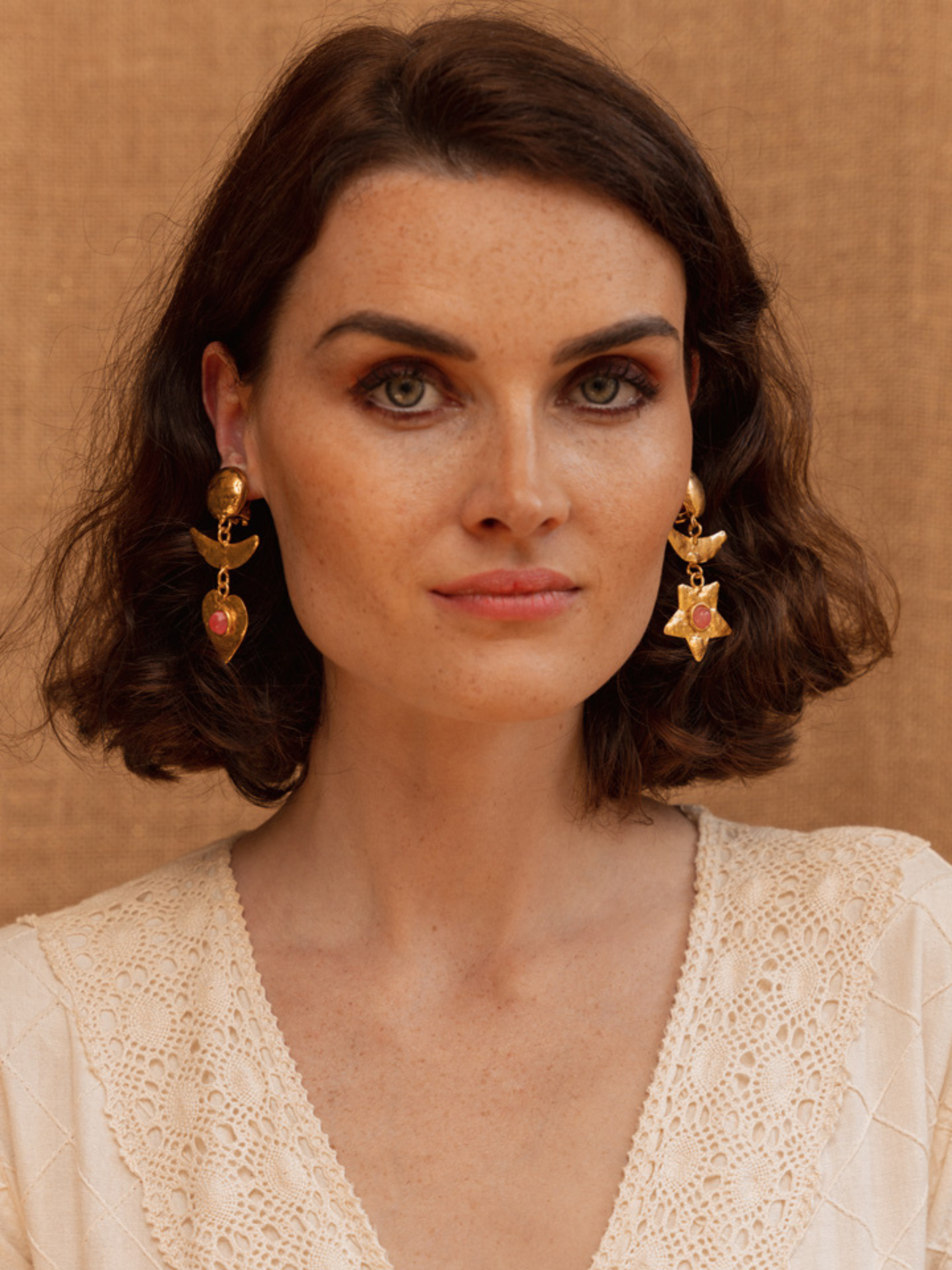 Boucles d’oreille/ Earrings: Sol y Luna – Pierre/Stone: Pink