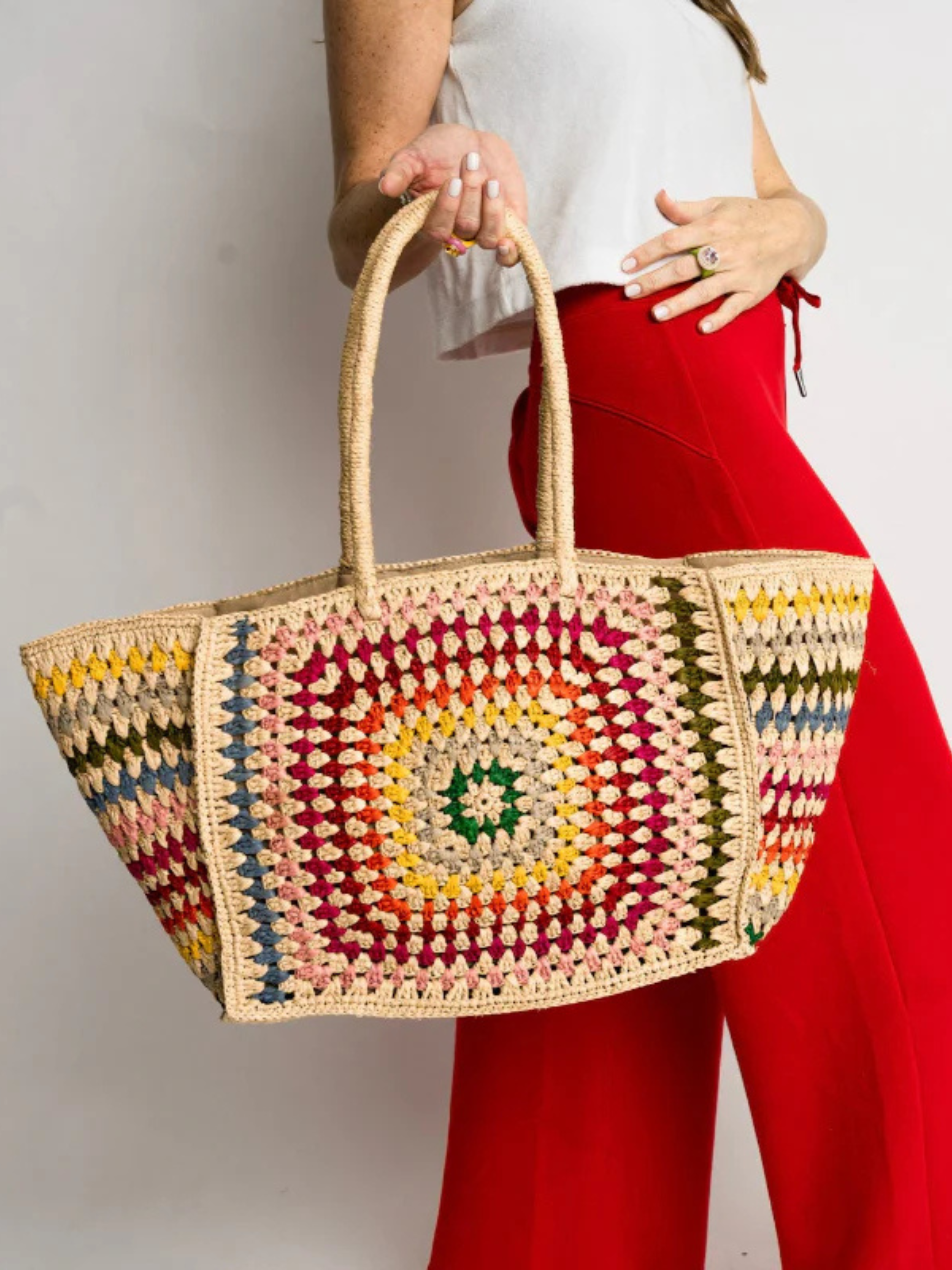 This handmade raffia handbag features a lined interior and a convenient interior pocket for effortless organization. Whether you're running errands, heading to the beach, or dressing up for a casual outing, this boho-chic tote bag is the ideal accessory to complement your look.