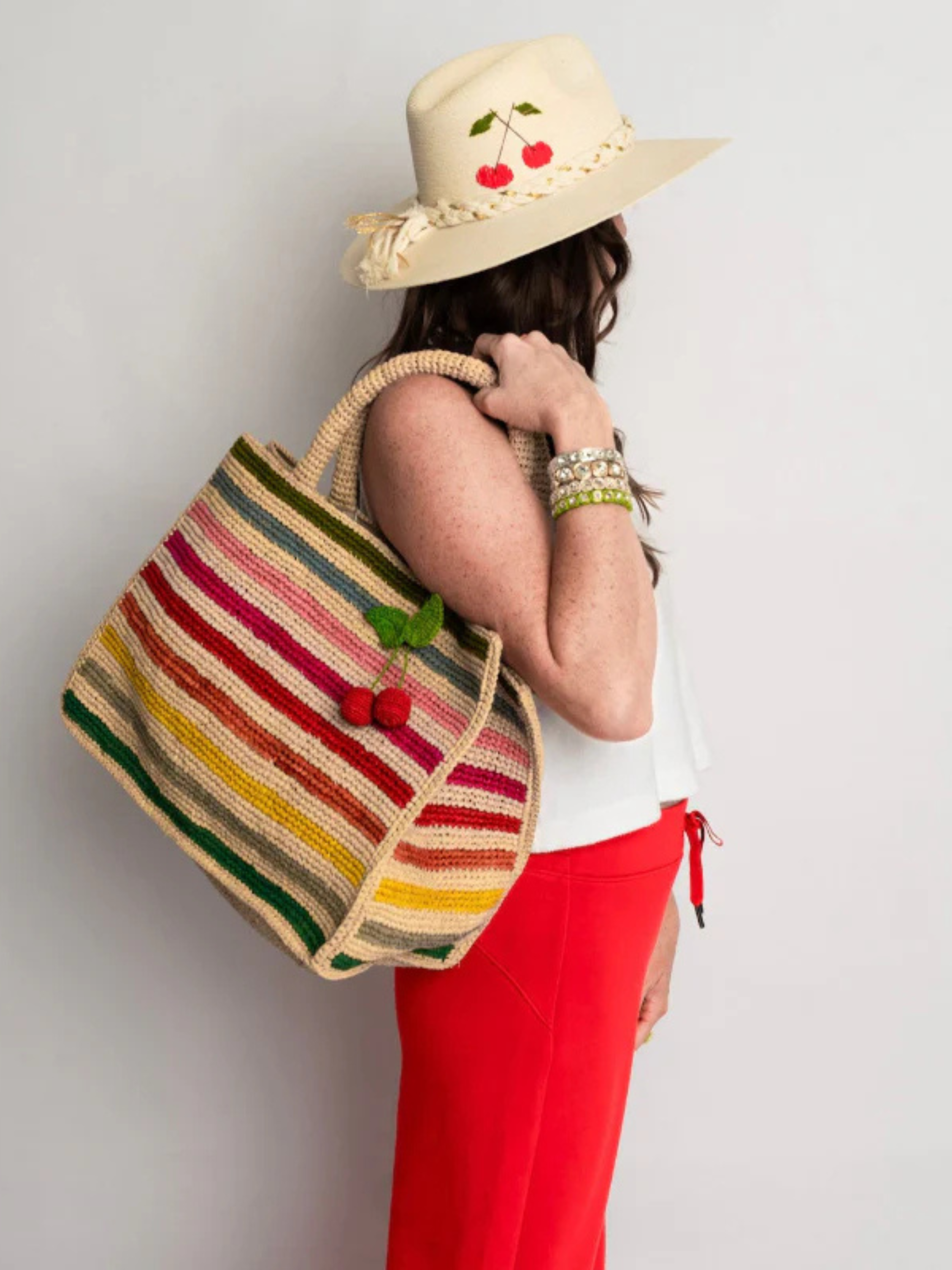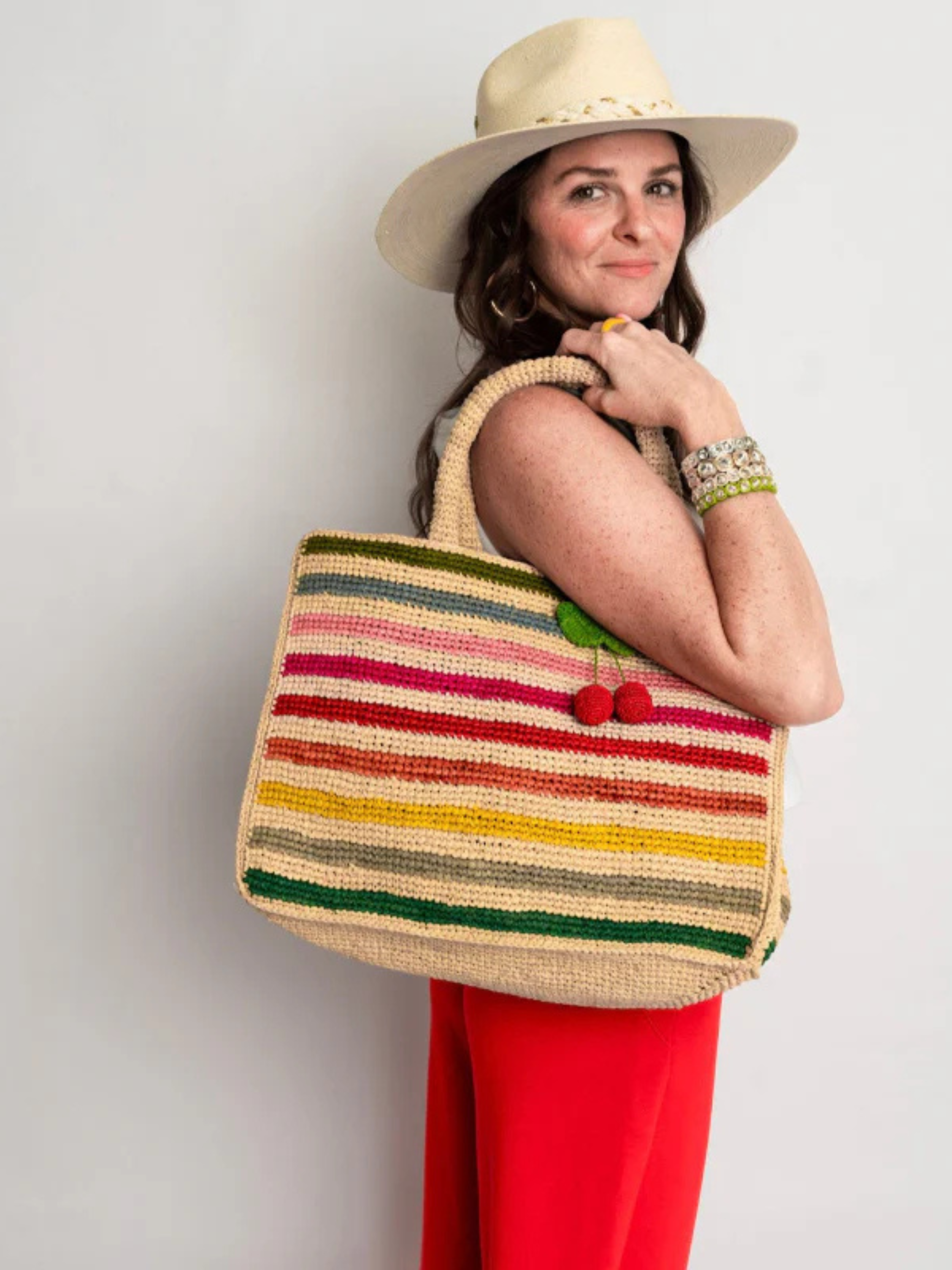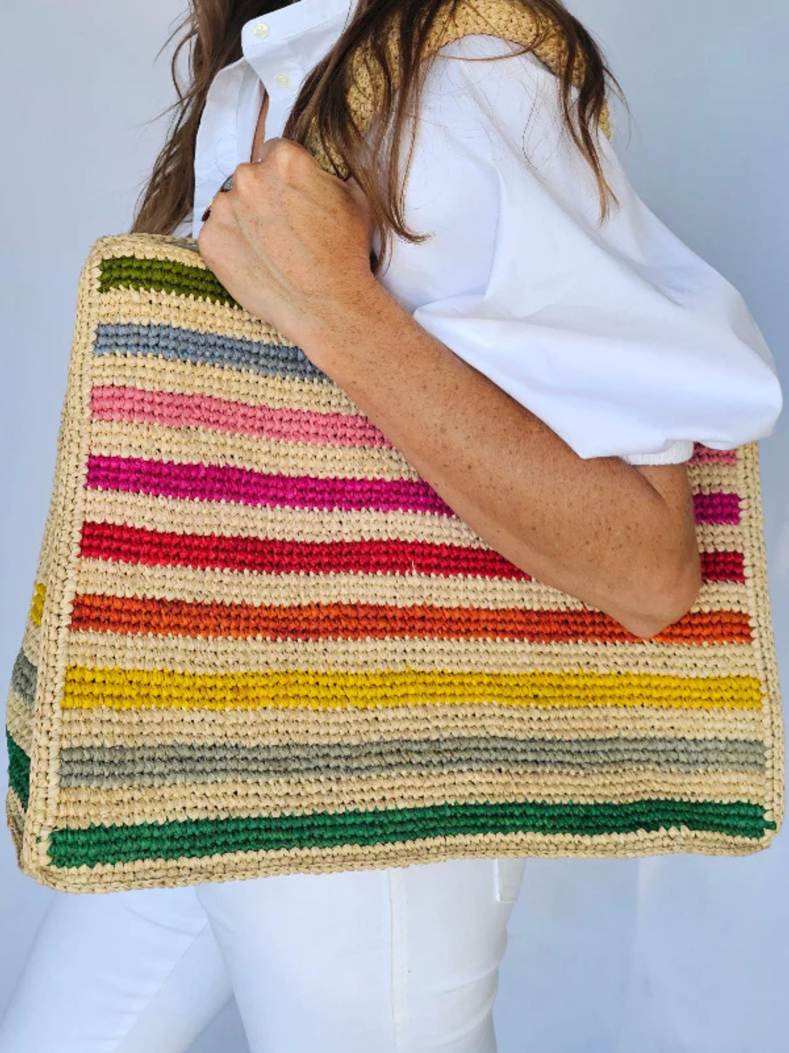 Add a touch of brightness to your everyday style with this handmade rainbow raffia tote. This classic tote bag is perfect for the beach, a weekend trip, or as a stylish everyday accessory. Featuring a fun and colorful rainbow design, it is both spacious and durable, ensuring you can carry all your essentials while making a bold fashion statement.
