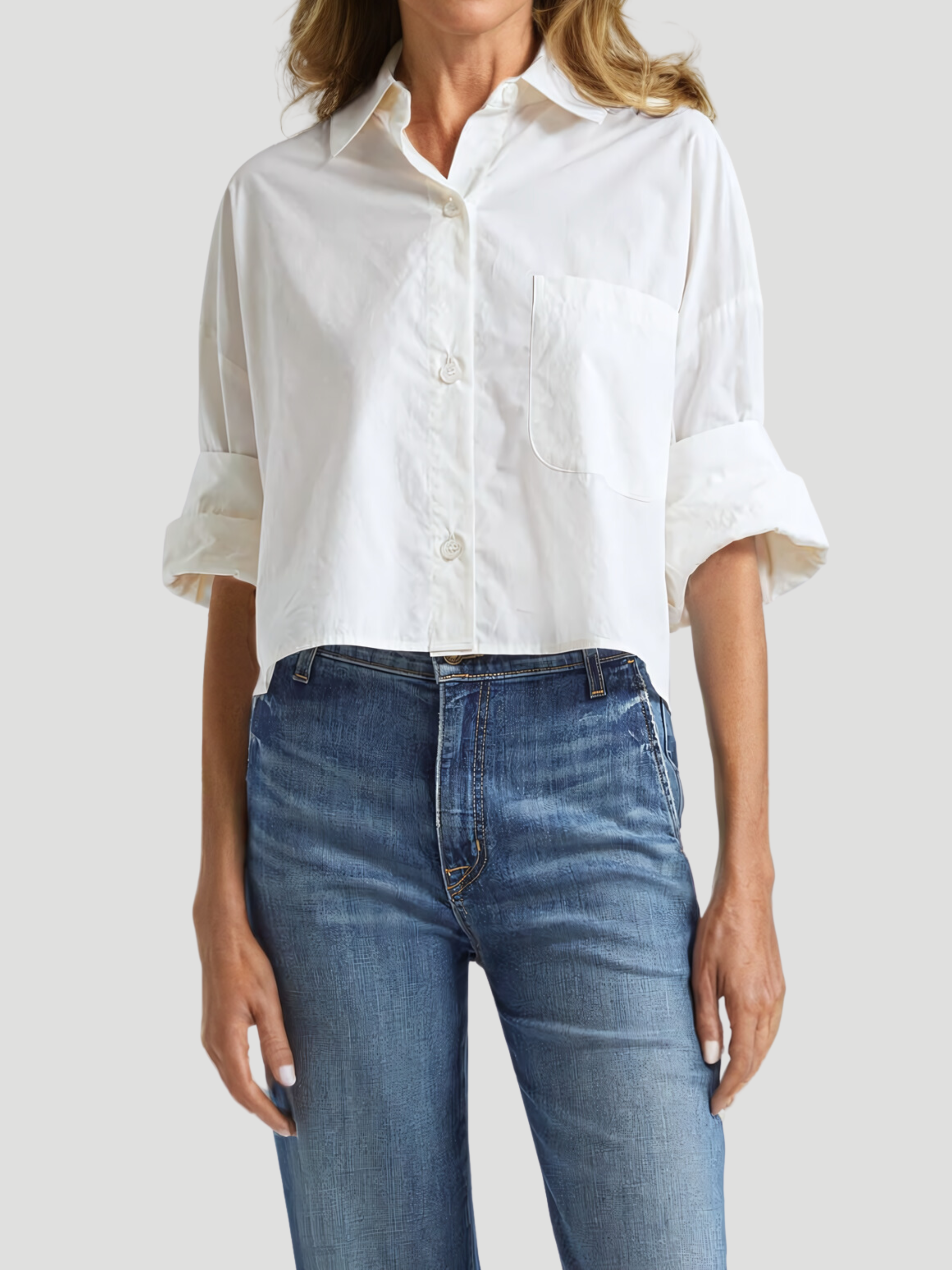 Upgrade your wardrobe with TWP's Next Ex Crop Shirt in Oat. Featuring a boxy, over-sized silhouette, spread collar, drop shoulders, and chest patch pocket, this shirt is perfect for a modern twist on menswear. With short sleeves and a button-front closure, it's the perfect balance of comfort and style.