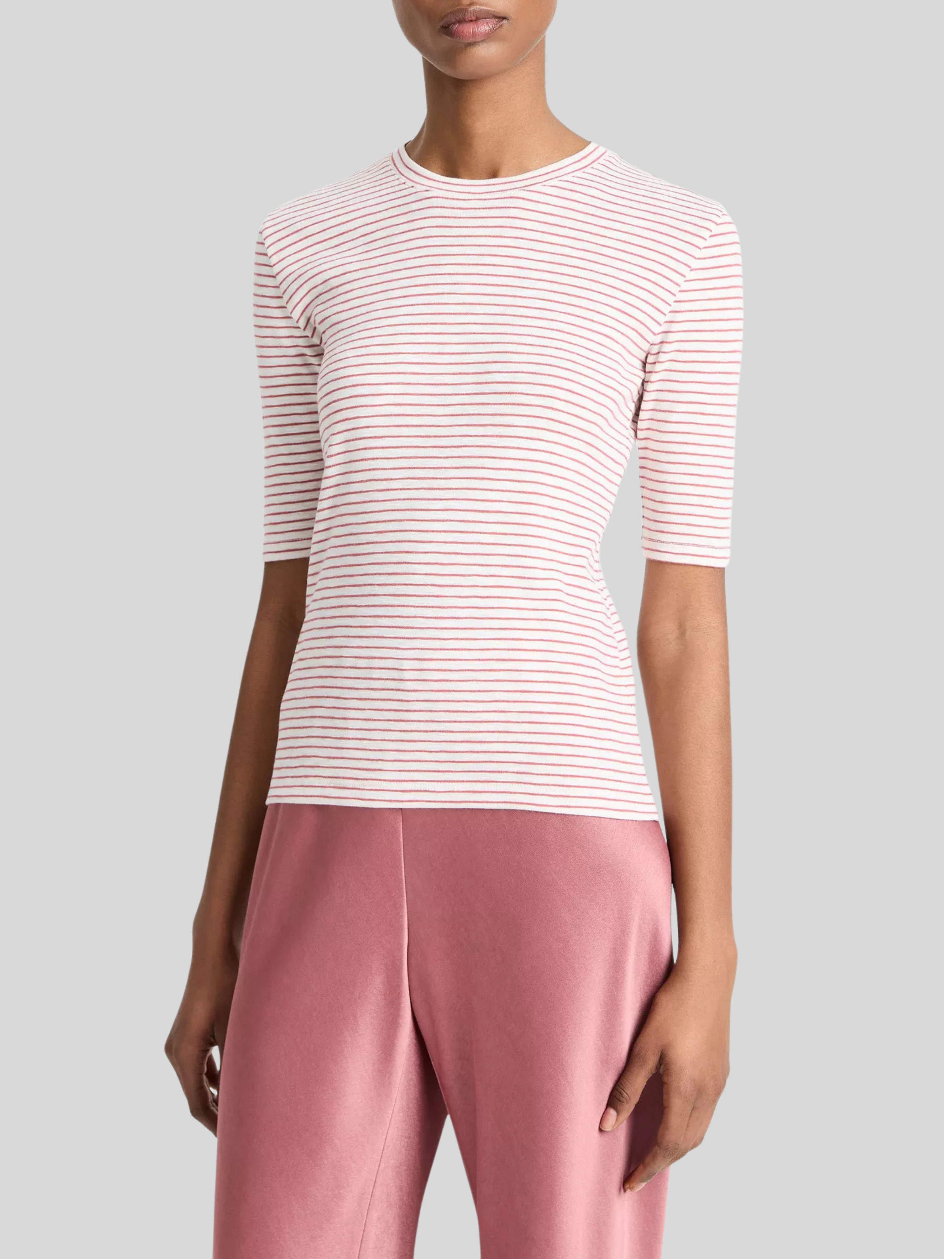 The endlessly wearable, striped elbow-sleeve T-shirt is cut to be slim throughout from soft, refined slub-knit cotton-modal that feels like butter on the skin.